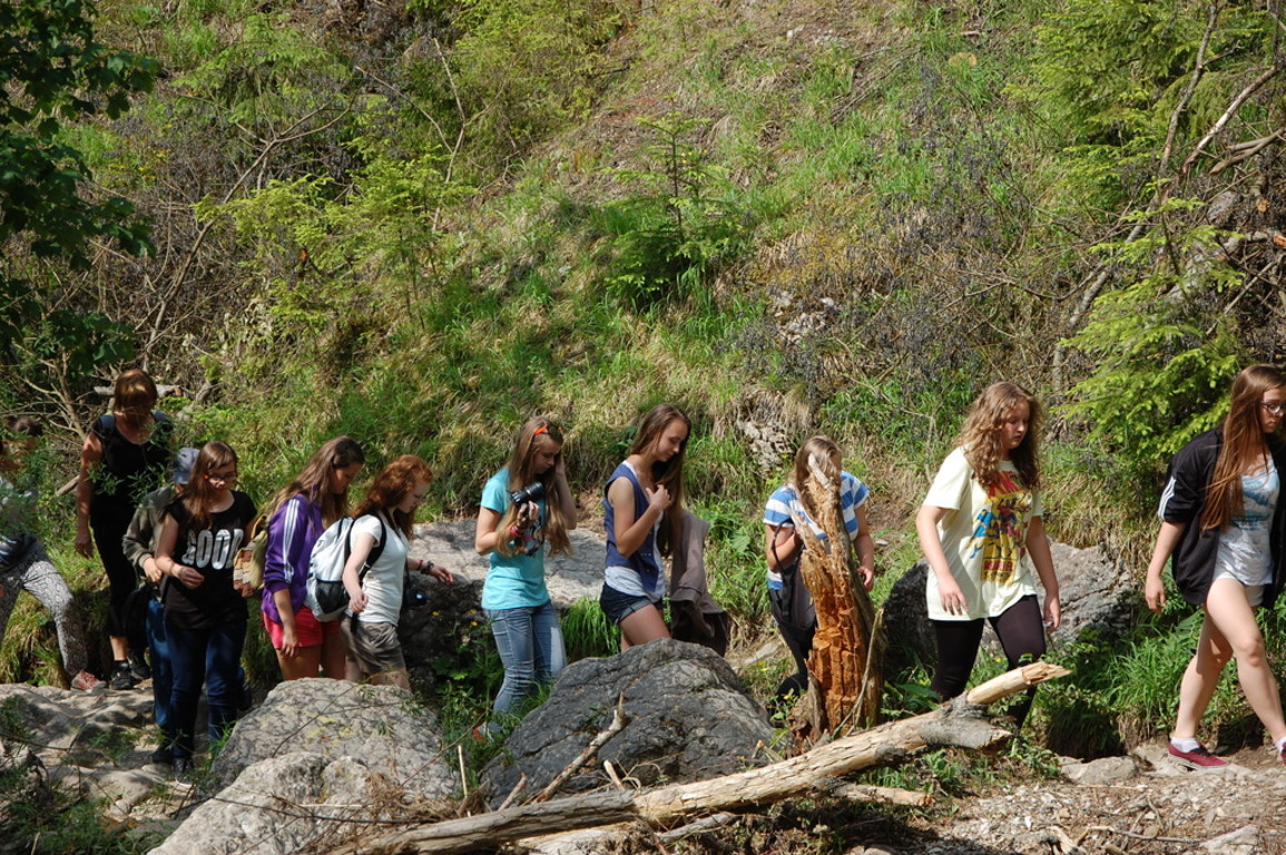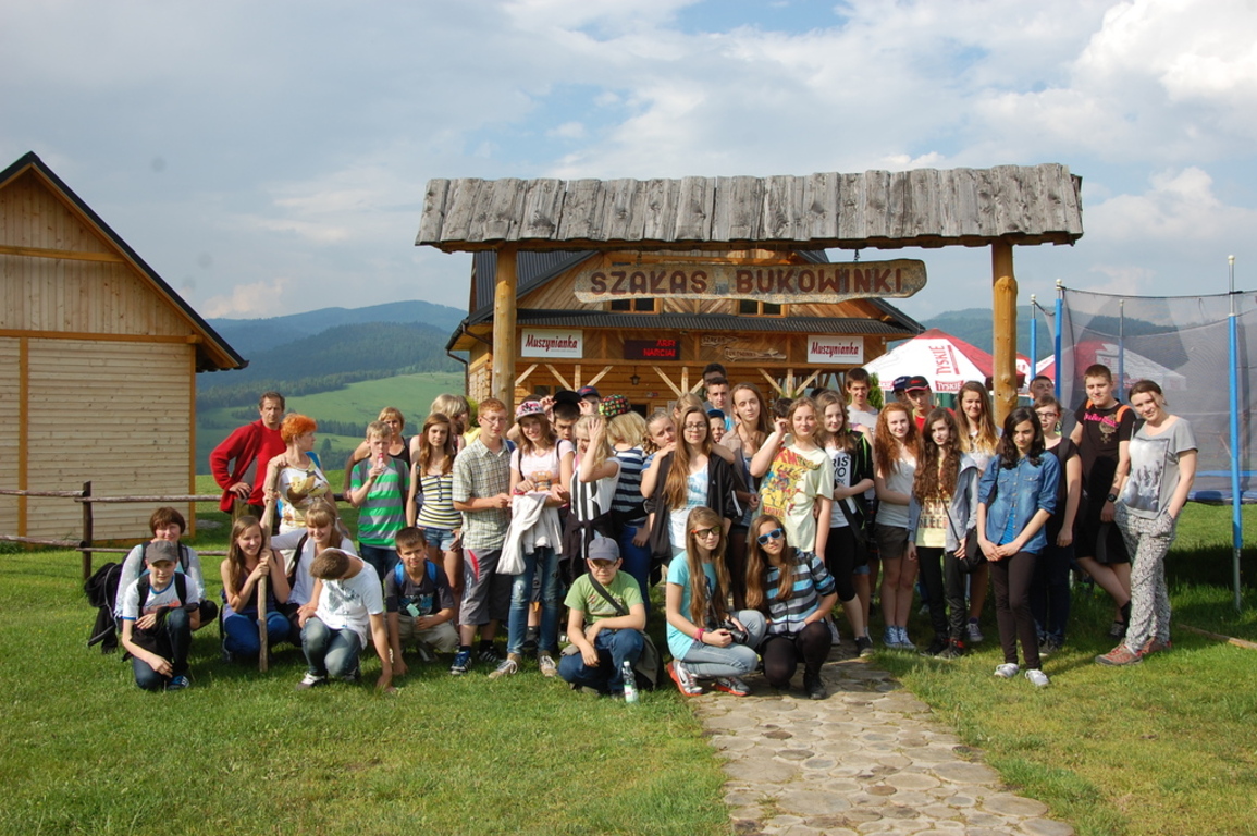 W dniach 26- 27 maja br. grupa 47 gimnazjalistów (klasy I i II) wraz z opiekunami była na wycieczce szkolnej w Pieninach. Na początku uczniowie zwiedzili drewniany XIV w. Kościół w Dębnie zaliczany do dziedzictwa kultury światowej UNESCO, po czym w Krościenku uczestniczyli w lekcji edukacyjnej na terenie pawilonu wystawowego Dyrekcji Pienińskiego Parku Narodowego. Tutaj mieli okazję poznać ukształtowanie Pienin, kulturę, architekturę i przyrodę. Później pieszo przeszli Wąwóz Homole. Wieczorem pobyt w Szczawnicy u państwa Majerczaków (gdzie nocowali) umilała im góralska kapela, której członkowie nie tylko zabawiali młodzież podczas wspólnego grilla, ale też opowiadali o tutejszych zwyczajach, uczyli tradycyjnych tańców czy śmiałkom objaśniali tajniki gry na liściu i skrzypcach. Dla wszystkich zorganizowane były też tego dnia zajęcia z mapą i kompasem z przodownikiem górskim panem A. Titarenkowem, liczne konkursy z nagrodami oraz dyskoteka.