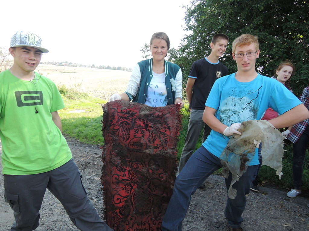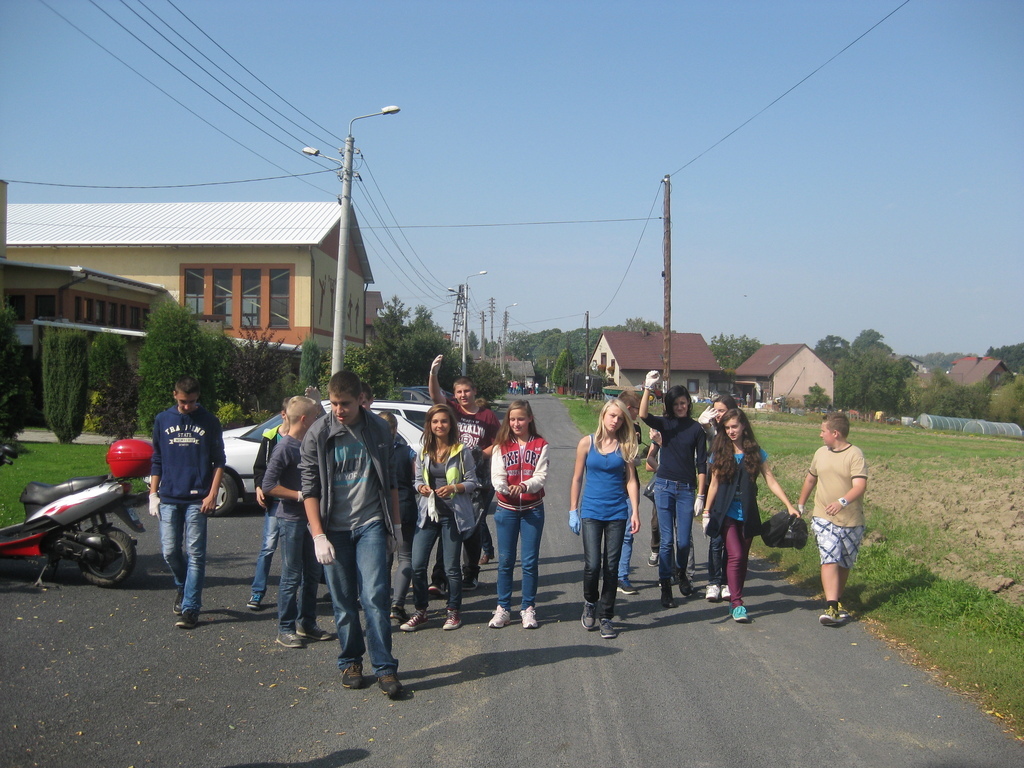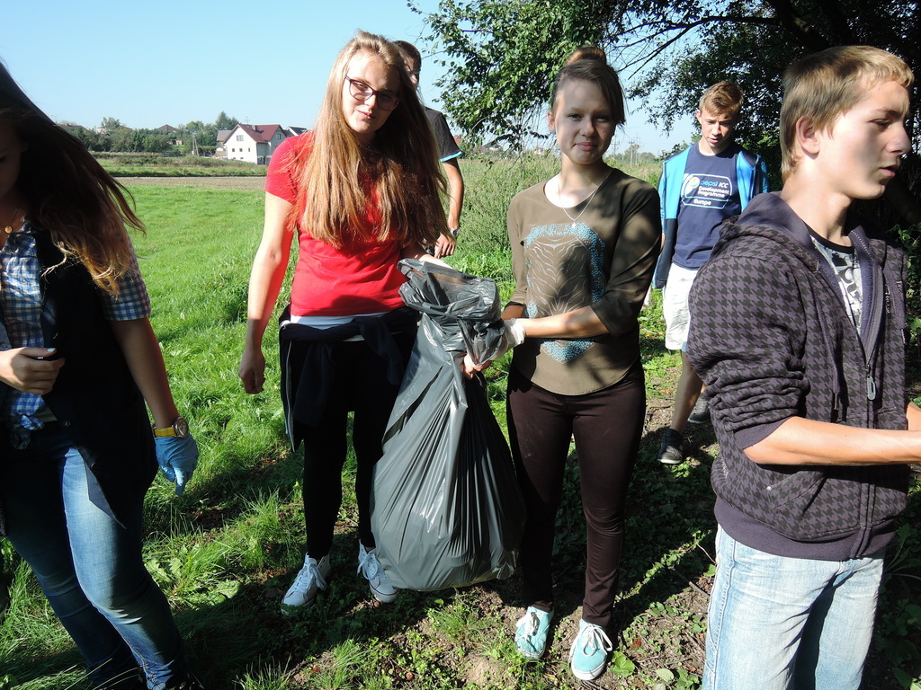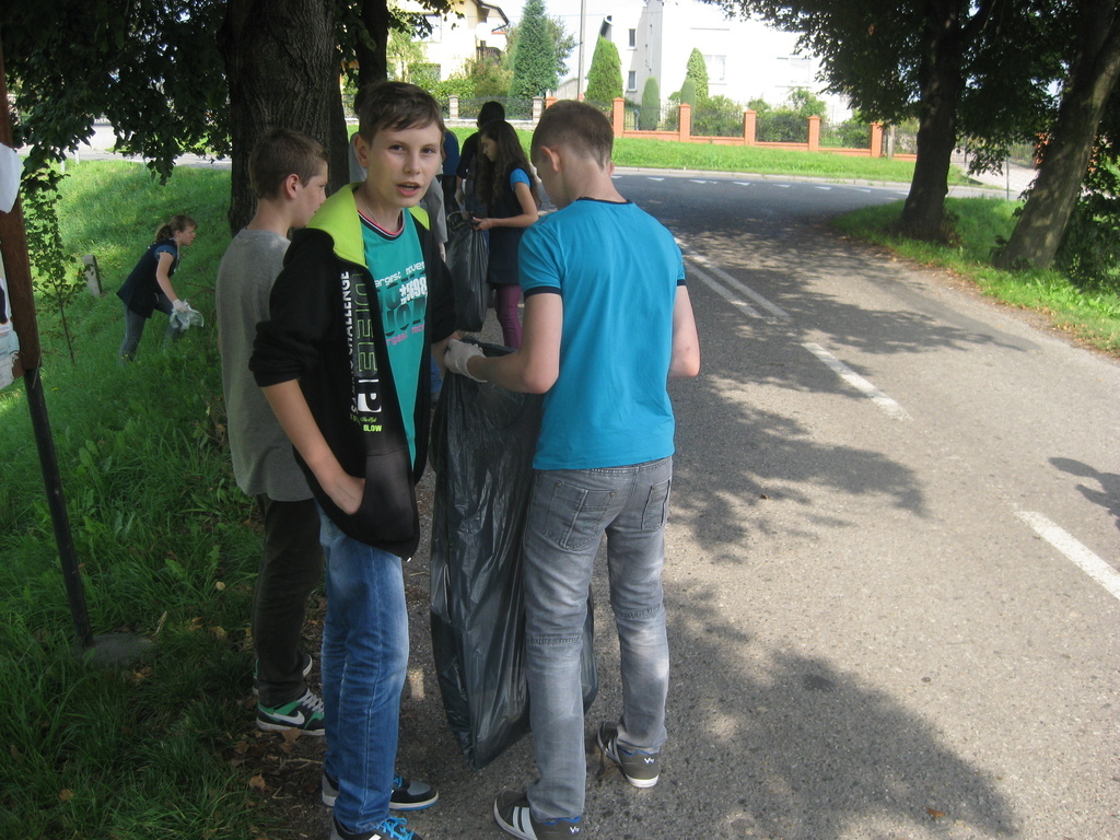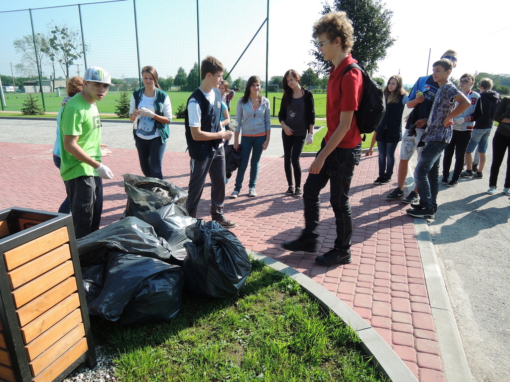 W piątek 19 września uczniowie naszego gimnazjum wraz z opiekunami, zaopatrzeni w rękawice i worki, włączyli się w ogólnopolskie działania i posprzątali wyznaczone im miejsca. Uczniowie kl. Ia – drogę w kierunku Łańc; kl. Ib – obejście szkoły; kl. IIa – drogę w kierunku Lęgowa i obejście kościoła; kl. IIb – drogę do Urzędu Gminy i okolice przystanku; kl. IIIa – ulicę Starowiejską i Spokojną; a kl. IIIb – obejście wokół boiska LKS. Gimnazjaliści bardzo zaangażowali się w akcję i zebrali aż 39 worków śmieci! Jest to a dużo, biorąc pod uwagę fakt, że obecnie każdego mieszkańca w Polsce obowiązuje konieczność segregacji odpadów w domach.