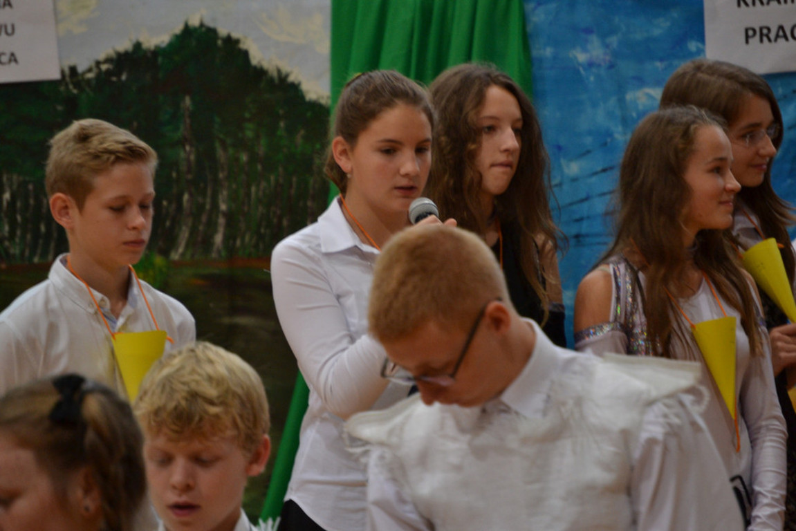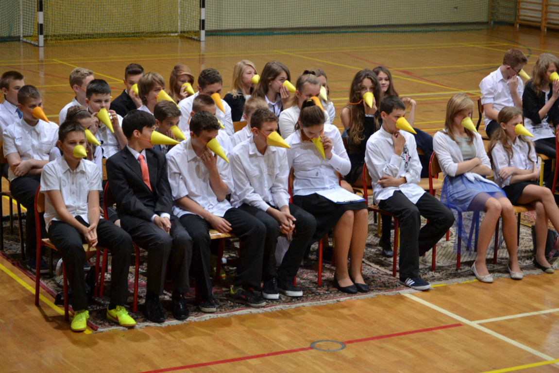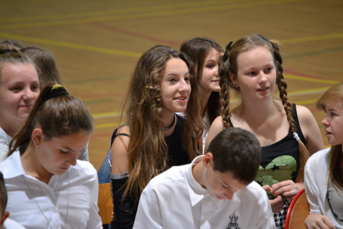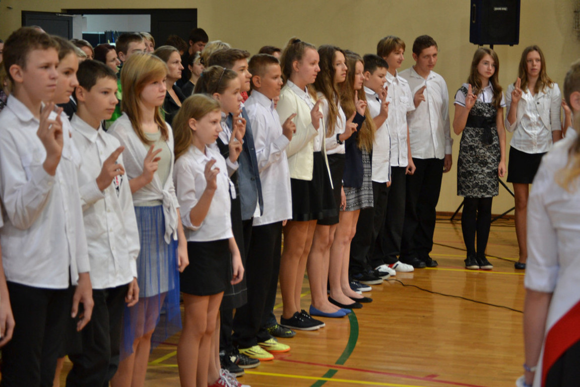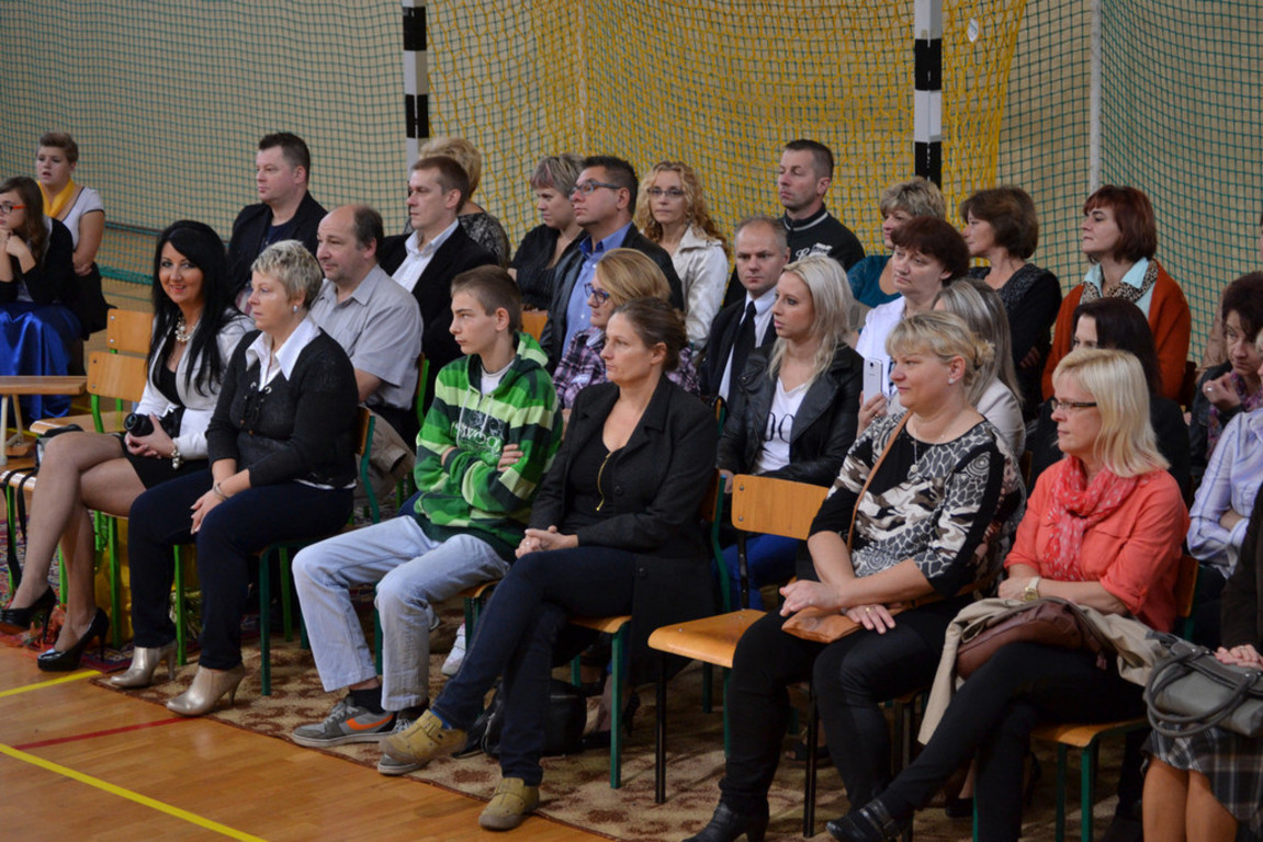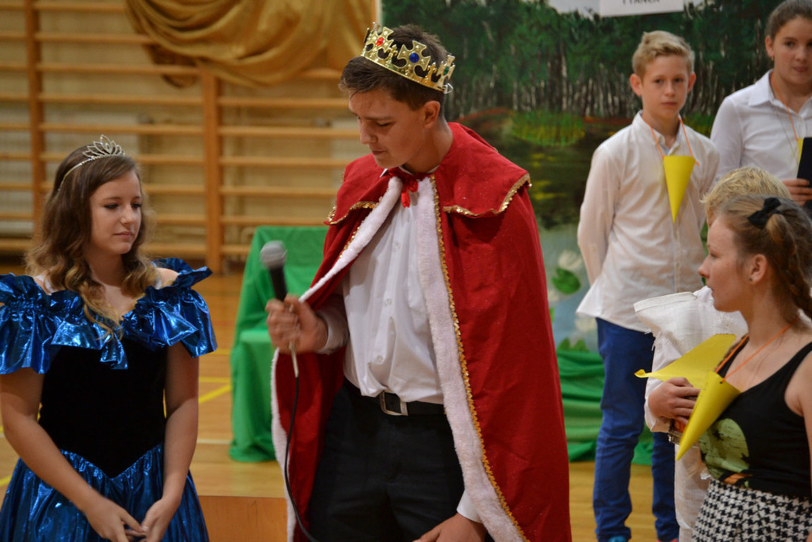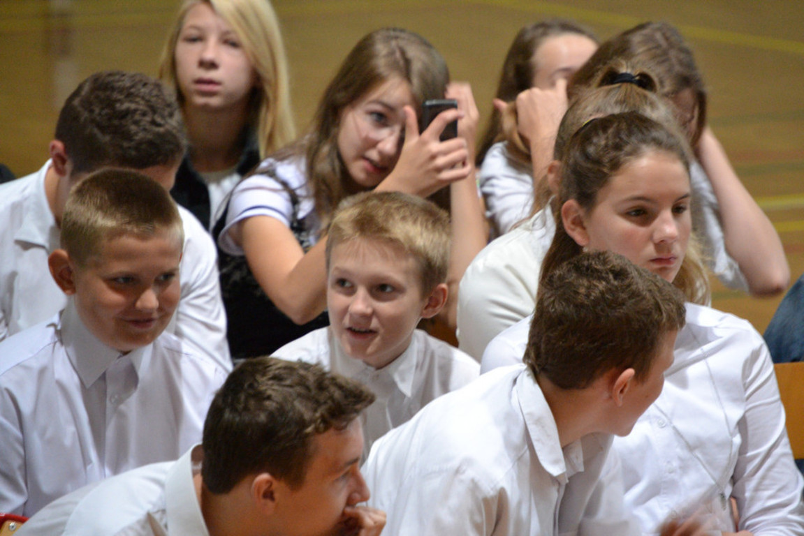Minęły 44 dni odkąd pierwszy raz wstąpili w mury naszej szkoły jako jej uczniowie. W tym czasie mieli możliwość poznać zwyczaje i prawa tu panujące, nowych kolegów, wymagania nauczycieli i na aklimatyzację. Nawiązały się nowe przyjaźnie, a stare umocniły. Kl. Ia i kl. Ib wraz z wychowawcami p. Katarzyną Franicą i p. Tomaszem Kozielskim w ostatnich dniach intensywnie przygotowywali się do tego jakże ważnego wydarzenia – do ślubowania, jakie dziś zostało złożone. 14. października to najlepsza data – święto edukacji, a zarazem święto szkoły upamiętniające patrona św. Jana Pawła II. Uroczystość swoją obecnością uświetnili rodzice i opiekunowie większości pierwszoklasistów, wśród nich p. Dyrektor naszego gimnazjum i przedstawiciel gminy p. Michał Krasek, a także ks. Proboszcz Tadeusz Augustyn SDB oraz delegacja Rady Rodziców. Pierwszoklasiści wzięli udział w programie wprowadzającym do ślubowania wykazując się sporą dozą poczucia humoru. Część z nich miała możliwość pokazania swoich talentów estradowych. Najważniejsza chwila miała miejsce w obecności sztandaru. Wszyscy zgromadzeni odśpiewali hymn państwowy, następnie z wielką powagą pierwszoklasiści powtórzyli słowa przyrzeczenia, podpisano akt ślubowania, a na koniec wykonano pamiątkowe zdjęcia. Po uroczystościach zaproszeni goście oraz wszyscy ślubujący wzięli udział w słodkim poczęstunku.