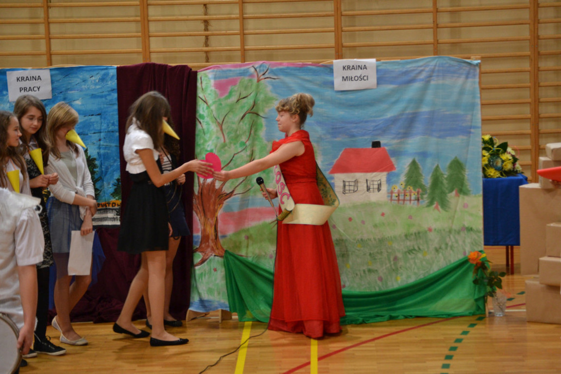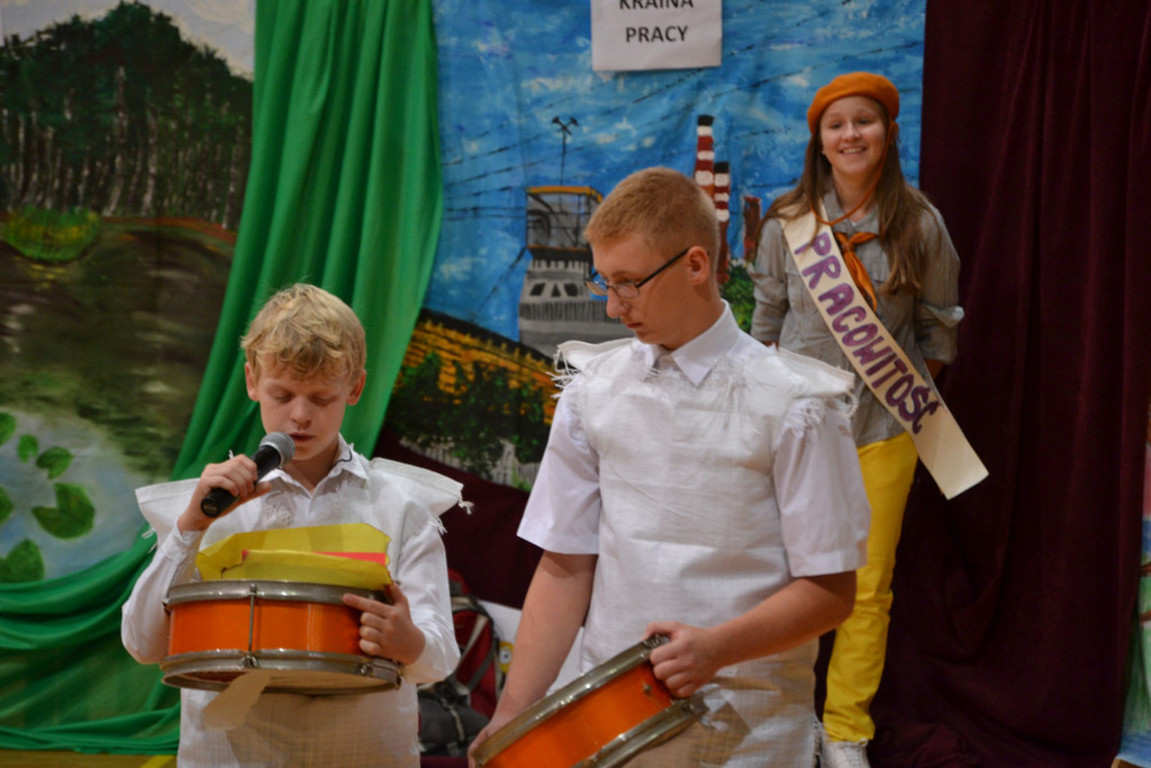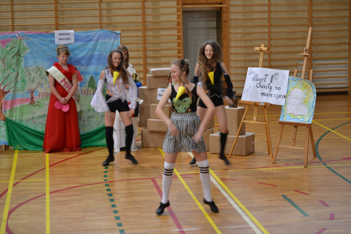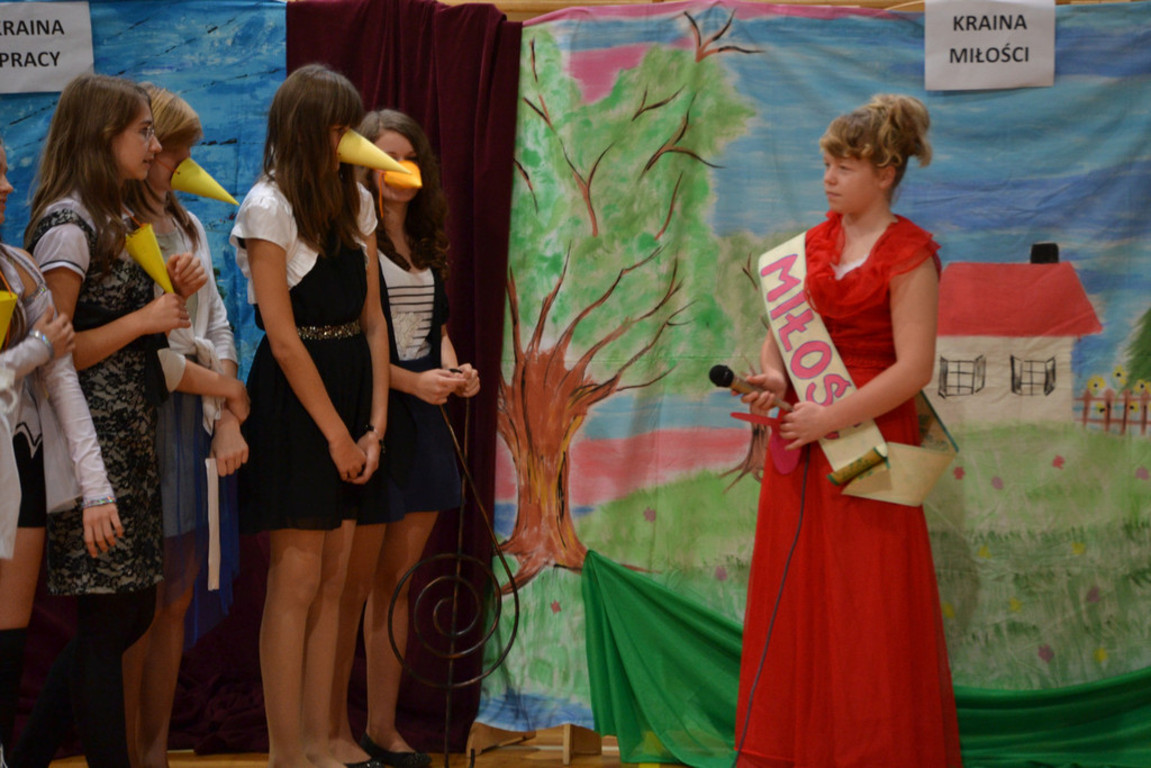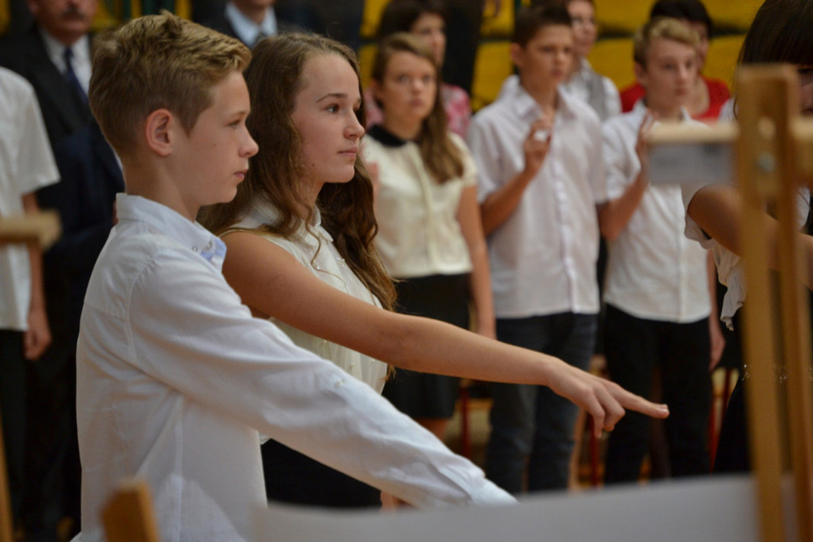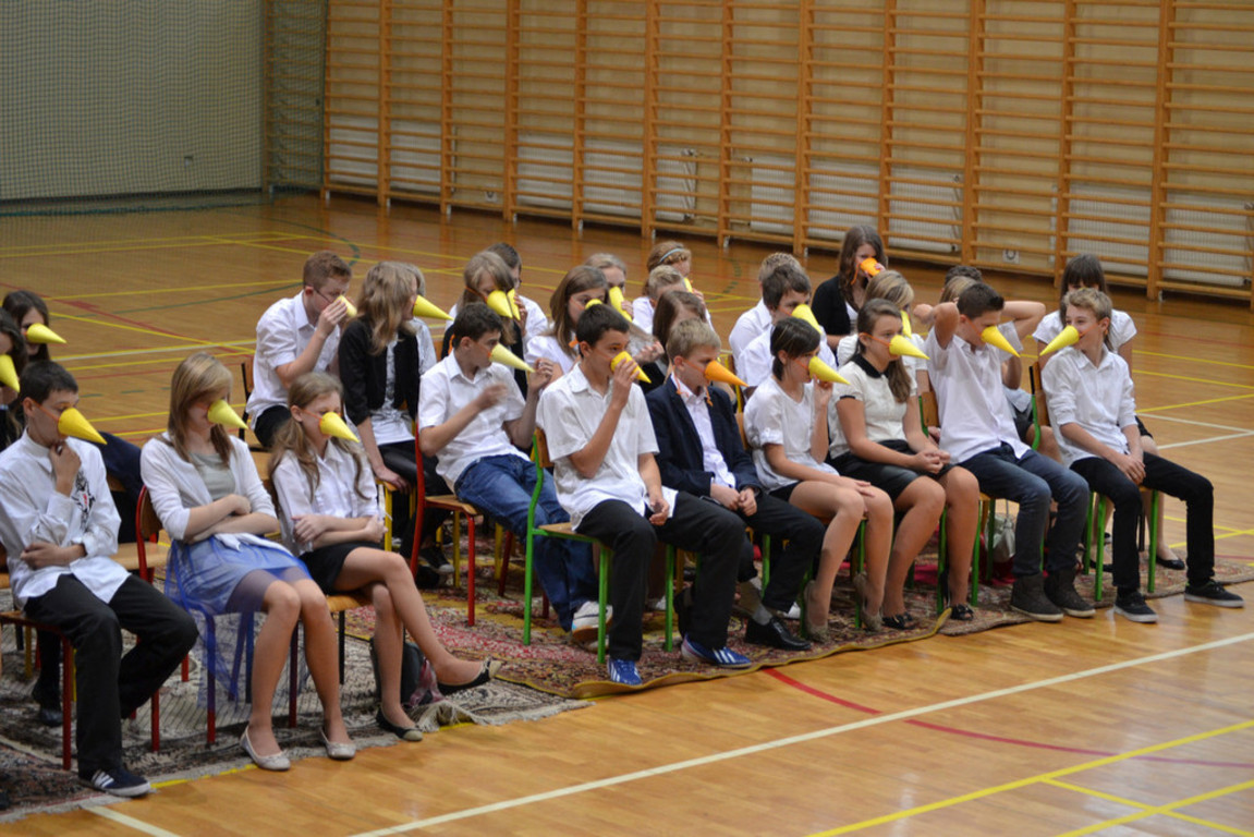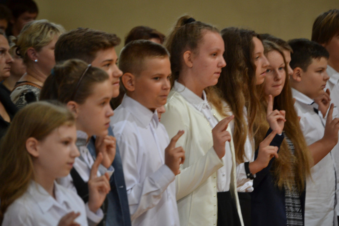 Minęły 44 dni odkąd pierwszy raz wstąpili w mury naszej szkoły jako jej uczniowie. W tym czasie mieli możliwość poznać zwyczaje i prawa tu panujące, nowych kolegów, wymagania nauczycieli i na aklimatyzację. Nawiązały się nowe przyjaźnie, a stare umocniły. Kl. Ia i kl. Ib wraz z wychowawcami p. Katarzyną Franicą i p. Tomaszem Kozielskim w ostatnich dniach intensywnie przygotowywali się do tego jakże ważnego wydarzenia – do ślubowania, jakie dziś zostało złożone. 14. października to najlepsza data – święto edukacji, a zarazem święto szkoły upamiętniające patrona św. Jana Pawła II. Uroczystość swoją obecnością uświetnili rodzice i opiekunowie większości pierwszoklasistów, wśród nich p. Dyrektor naszego gimnazjum i przedstawiciel gminy p. Michał Krasek, a także ks. Proboszcz Tadeusz Augustyn SDB oraz delegacja Rady Rodziców. Pierwszoklasiści wzięli udział w programie wprowadzającym do ślubowania wykazując się sporą dozą poczucia humoru. Część z nich miała możliwość pokazania swoich talentów estradowych. Najważniejsza chwila miała miejsce w obecności sztandaru. Wszyscy zgromadzeni odśpiewali hymn państwowy, następnie z wielką powagą pierwszoklasiści powtórzyli słowa przyrzeczenia, podpisano akt ślubowania, a na koniec wykonano pamiątkowe zdjęcia. Po uroczystościach zaproszeni goście oraz wszyscy ślubujący wzięli udział w słodkim poczęstunku.
