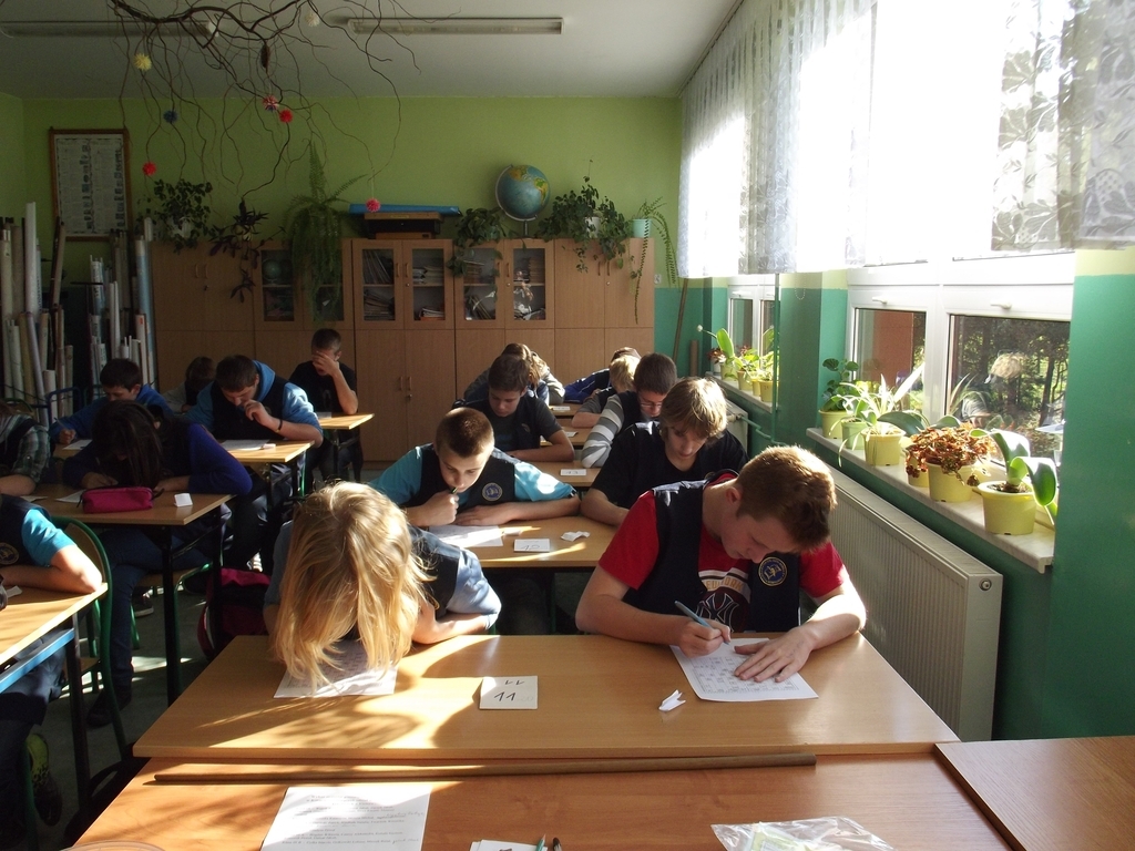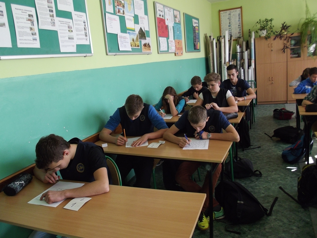 W środę, 29 października, w naszej szkole 28 uczniów rozwiązywało krzyżówkę z Victora. Mistrzem został Jakub Iksal - uczeń klasy III B. Rozwiązał on z całej krzyżówki 66 haseł na 68. Drugie miejsce zajęła Sandra Smyrak (46 pkt.) – koleżanka z klasy Jakuba, zaś trzecie Aleksandra Czerny (44 pkt.) z III A. Rafał Miczek (III B) oraz Jakub Gatnar (III A) zdobyli po 42 pkt. Miłym zaskoczeniem było 6 i 7 miejsce zdobyte przez uczniów klas pierwszych. Mariusz Krasek (kl. I A) zdobył 40 pkt. Kolega z I B -Michał Moneta rozwiązał 35 haseł. Pozostali uczniowie muszą jeszcze trochę poćwiczyć, aby dorównać Jakubowi. Nagrody najlepszym uczniom w rozwiązywaniu krzyżówek, zostaną wręczone na apelu z okazji Święta Niepodległości.