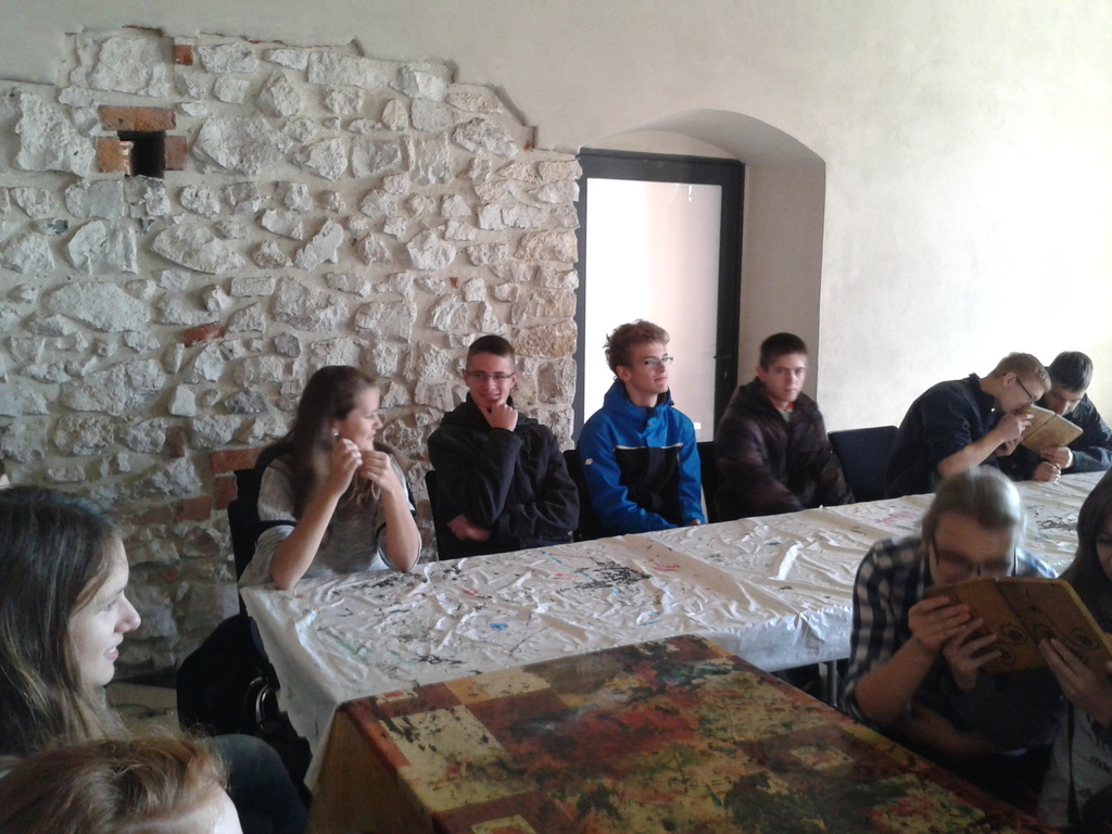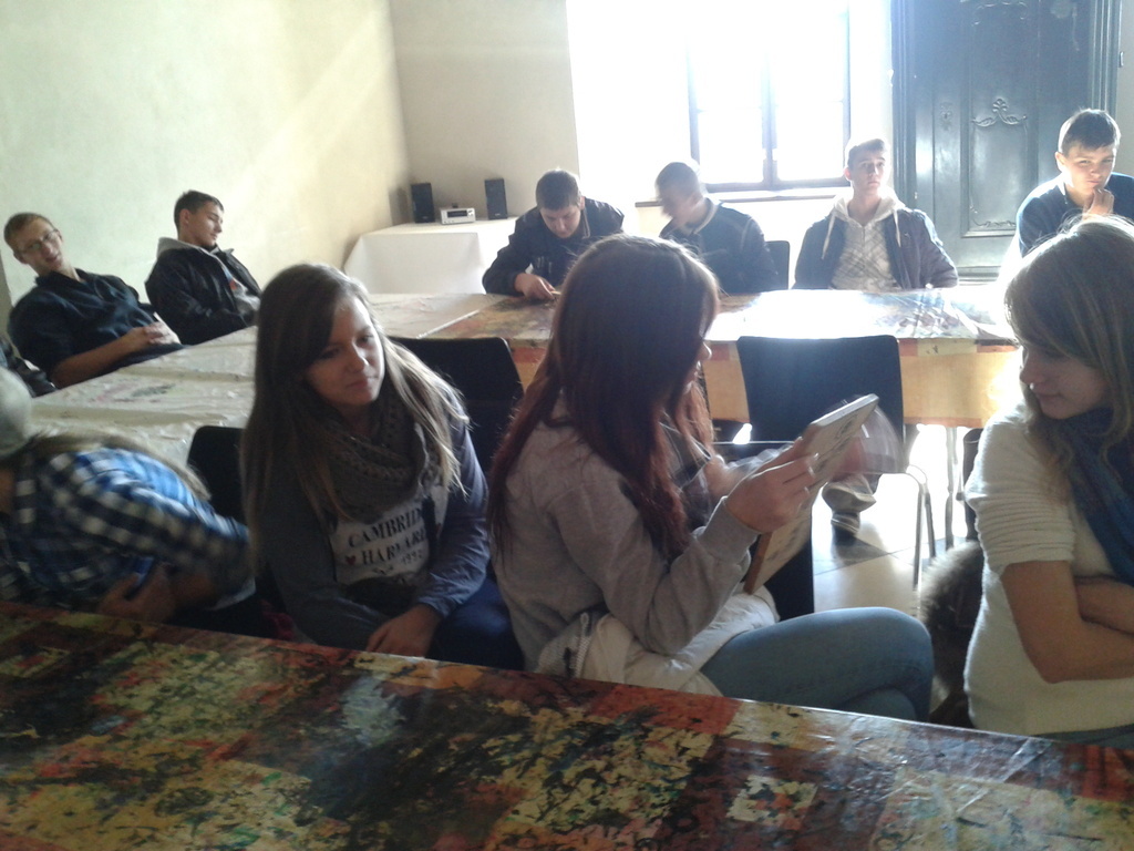 Wycieczka rozpoczęła się o 6.00 pod Urzędem Gminy w Kornowacu, skąd uczniowie udali się do Opactwa Benedyktynów w Tyńcu – najstarszego klasztoru benedyktyńskiego w Polsce. Zwiedzając opactwo, poczuli atmosferę średniowiecznego klasztoru, wzięli też udział w warsztatach edukacyjnych: „Tabliczka, zwój, kodeks i co dalej?” – historia książki: od glinianej tabliczki po literaturę. Celem zajęć było ukazanie historii przekazu pisanego i jego technik. Gimnazjaliści dowiedzieli się, jakimi materiałami operowano i jaki nadawano im kształt. Atrakcyjne, choć wcale niełatwe, okazało się pisanie przez uczniów zwykłym gęsim piórem zanurzanym w kałamarzu i ozdabianie wybranych liter motywami roślinnymi. Po wizycie w opactwie uczestnicy wycieczki następnie wyruszyli do Bochni – najpierw na obiad, potem do kopalni.