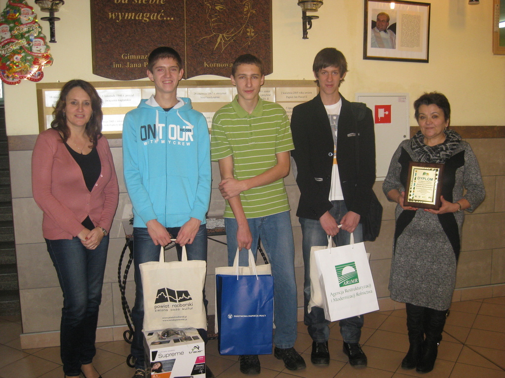 Dnia 15.12.2014 w Starostwie Powiatowym w Raciborzu odbył się konkurs powiatowy ,,Bezpieczne Rolnictwo Powiatu Raciborskiego”. Była to już VII edycja, w której biorą udział nasi gimnazjaliści.