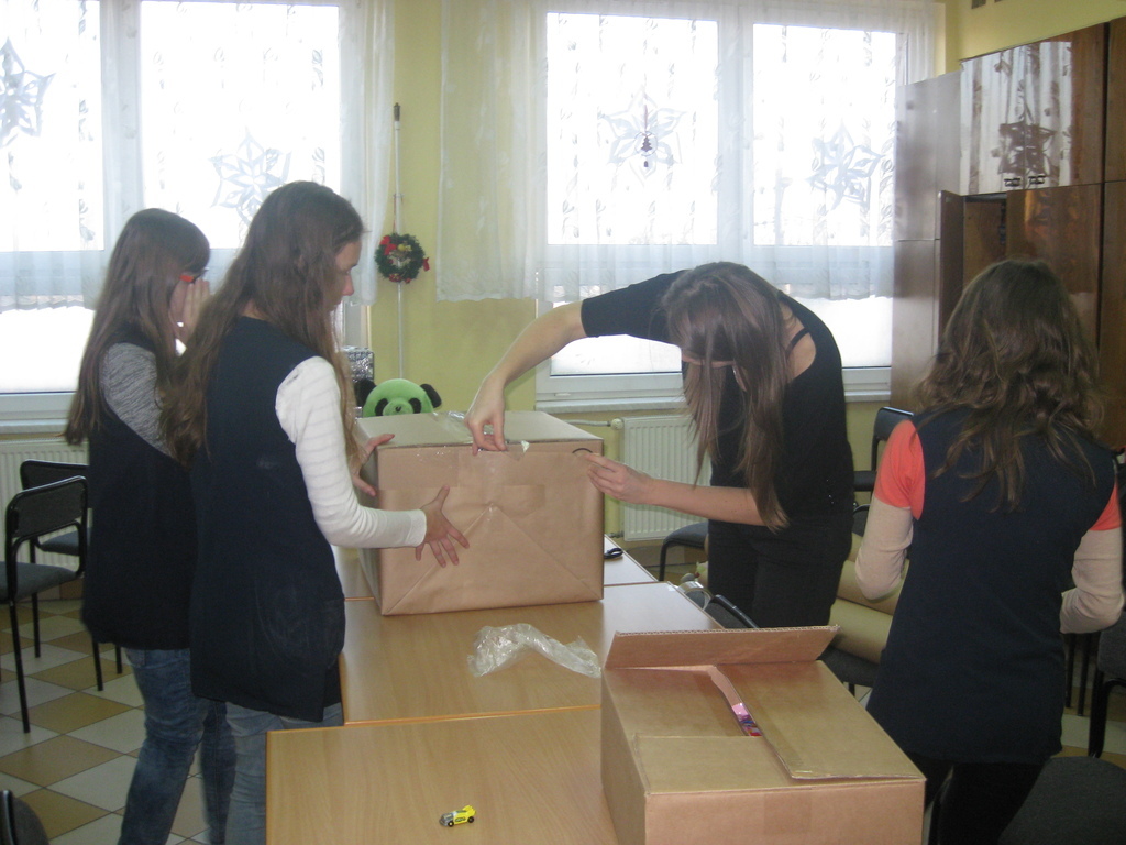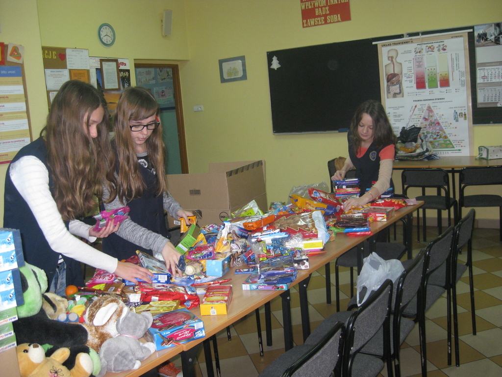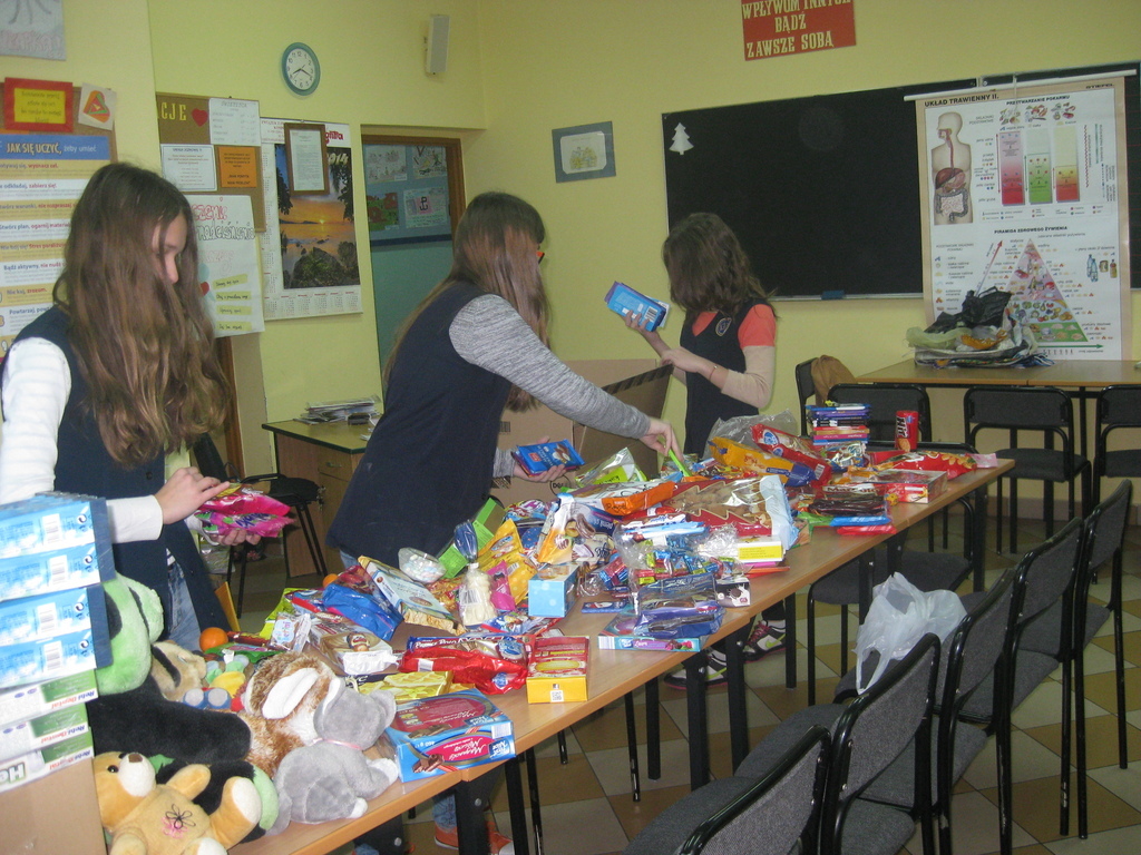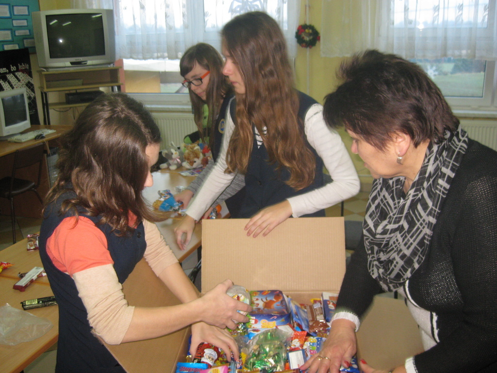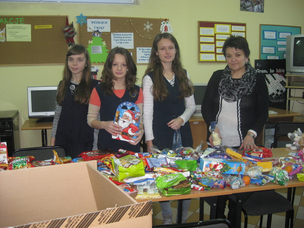 Od początku grudnia w naszej szkole członkowie samorządu szkolnego wraz z opiekunem prowadzili akcję charytatywną ,,Wesołe Święta". Jest to akcja, która wrosła już w tradycję naszej szkoły. Rok rocznie w świetlicy szkolnej zbierane są słodycze, zabawki oraz przybory do ćwiczeń manualnych dla podopiecznych DPS ,,Różany Pałac” w Krzyżanowicach, który przeznaczony jest dla dziewcząt niepełnosprawnych intelektualnie.