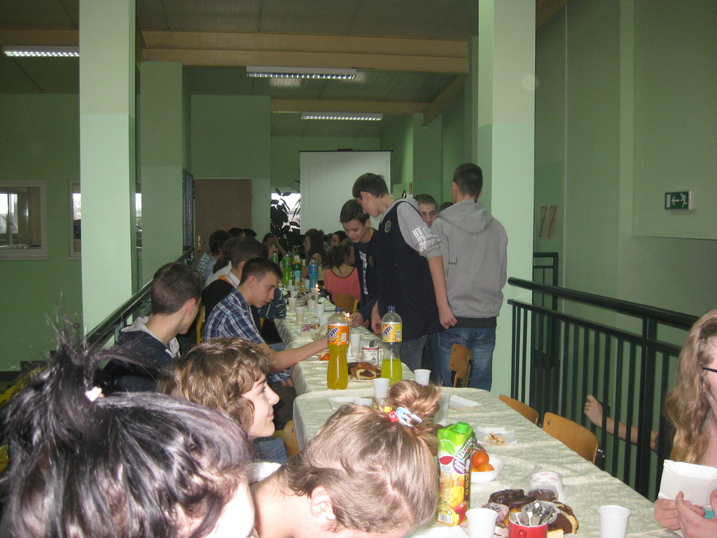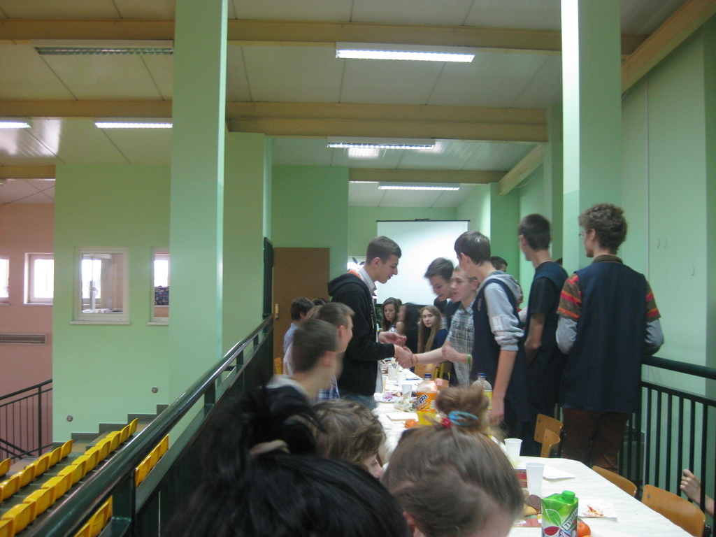 Podczas Akademii wręczone zostały także nagrody podsumowujące konkursy szkolne i gminne oraz podziękowania za pracę w sklepiku szkolnym. Druga część to piękne kolędy i pastorałki wykonane przez solistki chóru szkolnego prowadzonego przez p. Barbarę Stawinoga, które były pomostem do bezpośredniej uczty w klasach. Trzecioklasiści zaprosili do wspólnego stołu wszystkich nauczycieli i pracowników szkoły, przeżywając w ten sposób swoja ostatnią wigilię w gimnazjum. Nie zabrakło również życzeń i upominków