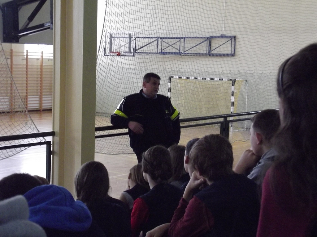 W ramach akcji „Bezpieczne Ferie 2015”, 30 stycznia młodzież gimnazjum uczestniczyła w prelekcji zorganizowanej przez Straż Miejską. Starszy inspektor Andrzej Łaba przypomniał uczniom o zagrożeniach związanych z nieodpowiednim zachowywaniem podczas zabaw na świeżym powietrzu, omówił również zasady bezpiecznego poruszania się po drogach i ulicach w czasie pory zimowej.