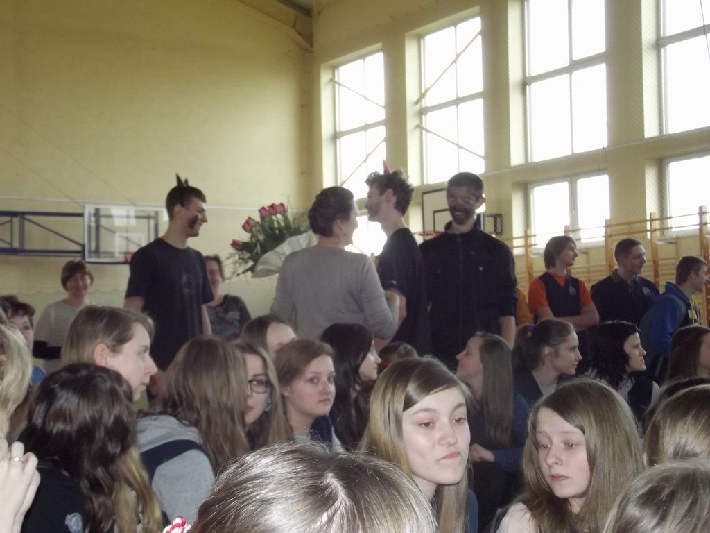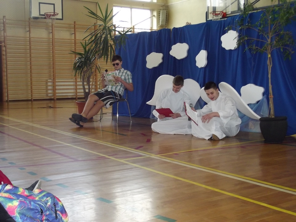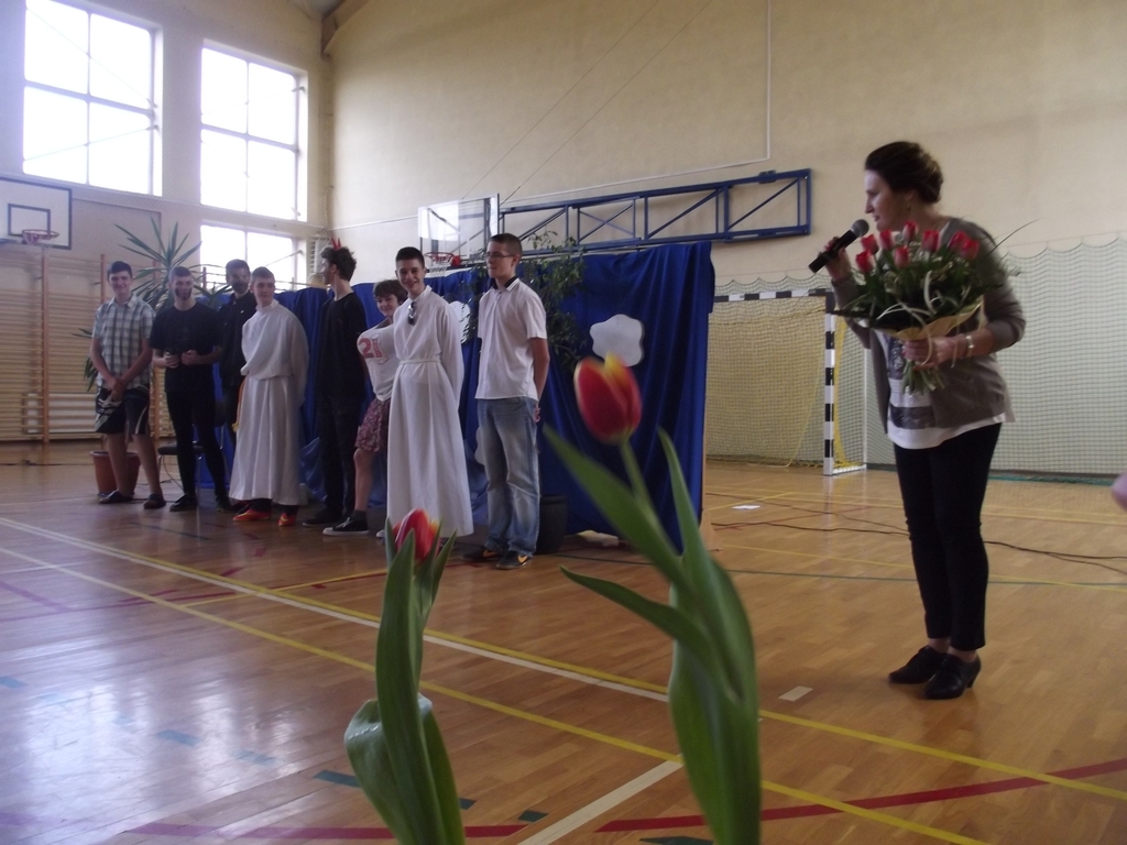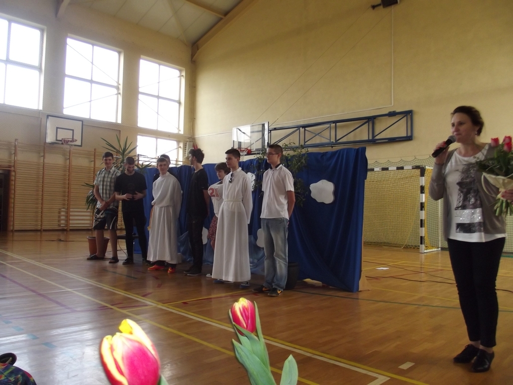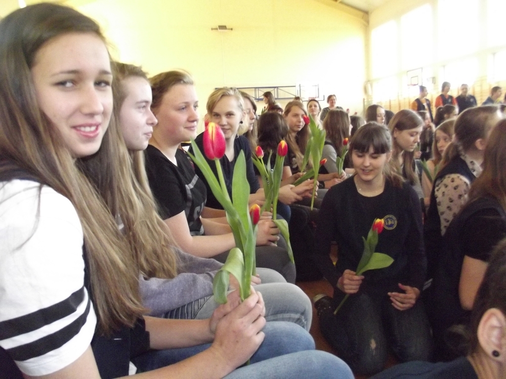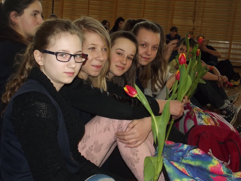 6 marca, na piątej godzinie lekcyjnej odbył się krótki dziesięciominutowy apel z okazji zbliżającego się święta kobiet. Chłopcy z 3b pod czujnym okiem pana Bartka Franicy, przedstawili spektakl, w którym oglądaliśmy piekło, ziemię oraz niebo, gdzie byli sami mężczyźni i się nudzili. Zastanawiali się, nad czym usilnie pracuje Bóg, po czym poznali efekt jego pracy, gdy ukazała się Ewa. Scenka miała przekonać męską część publiczności, jak wiele zawdzięczamy kobietom, bo bez nich świat byłby uboższy. Na koniec każda z pań otrzymała tradycyjnego kwiatka.