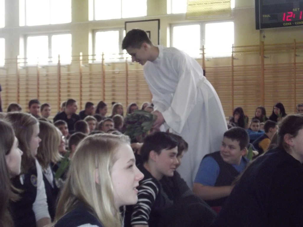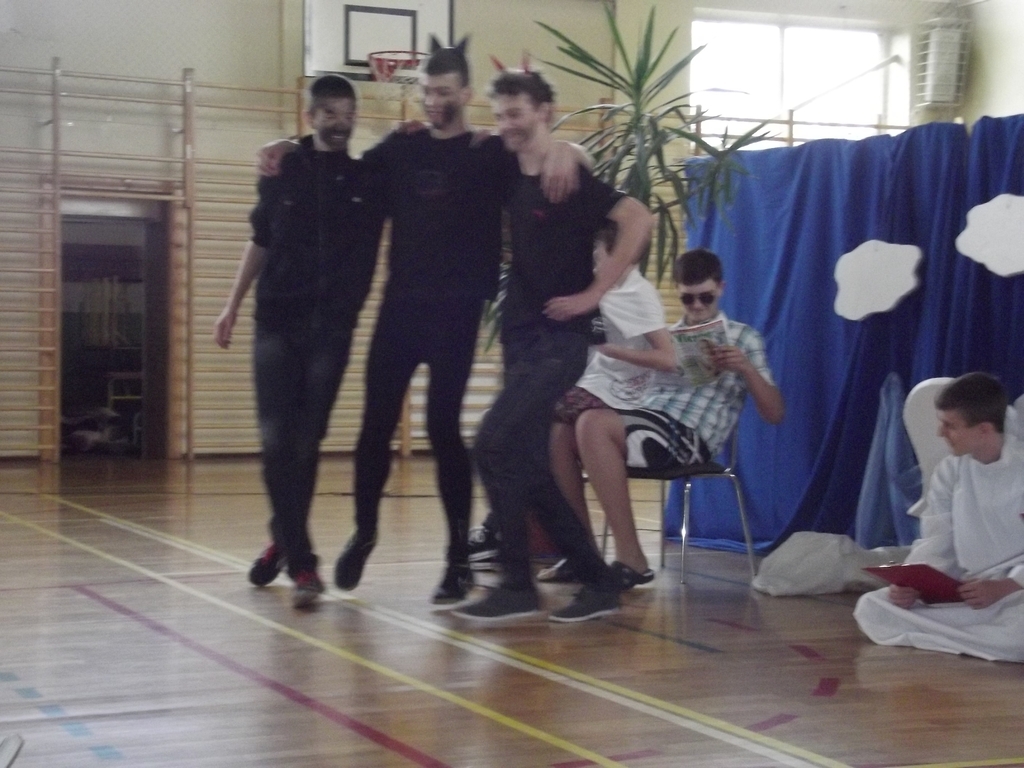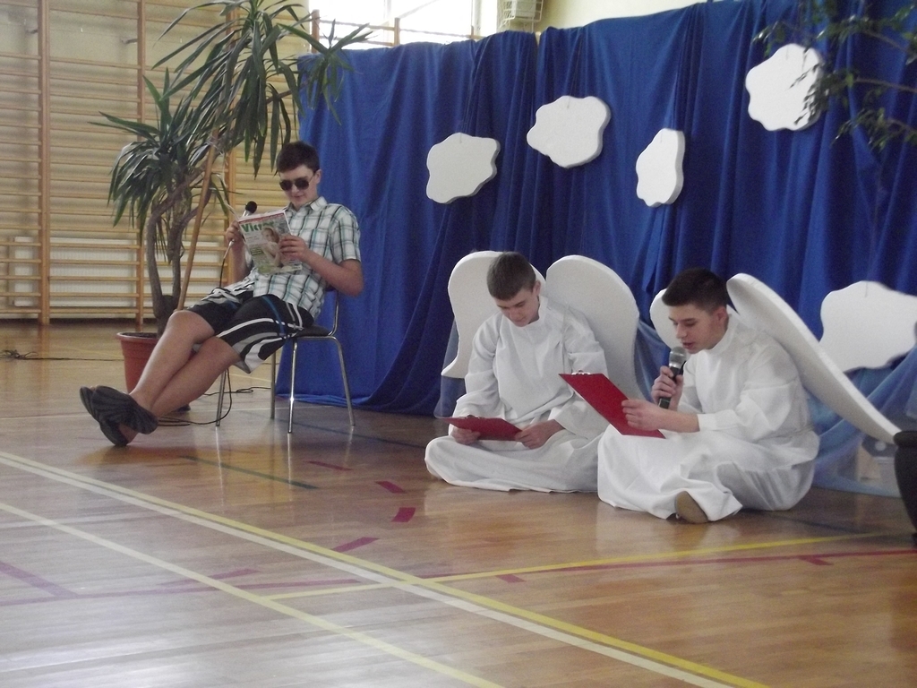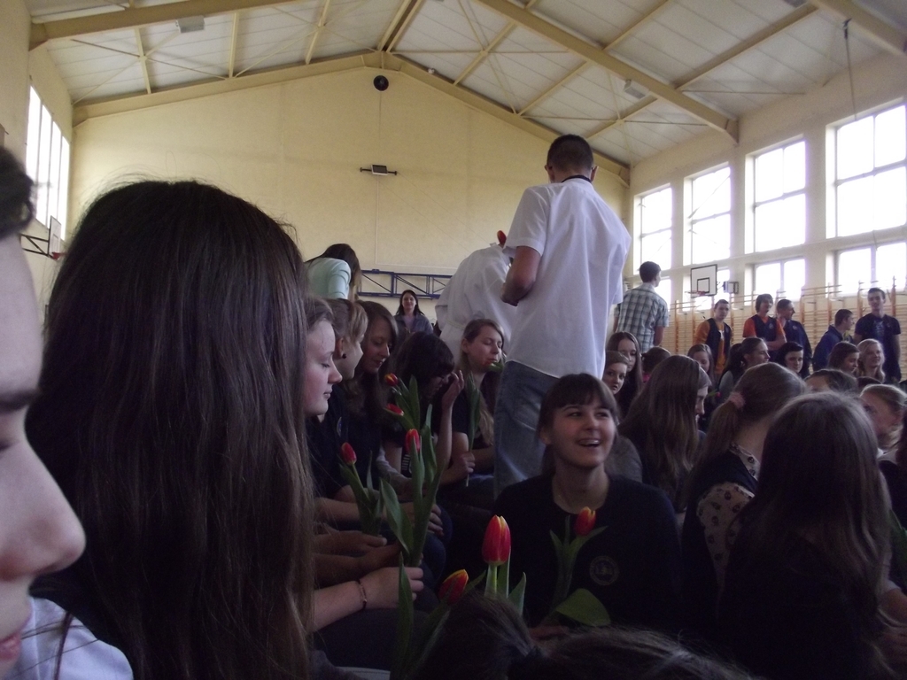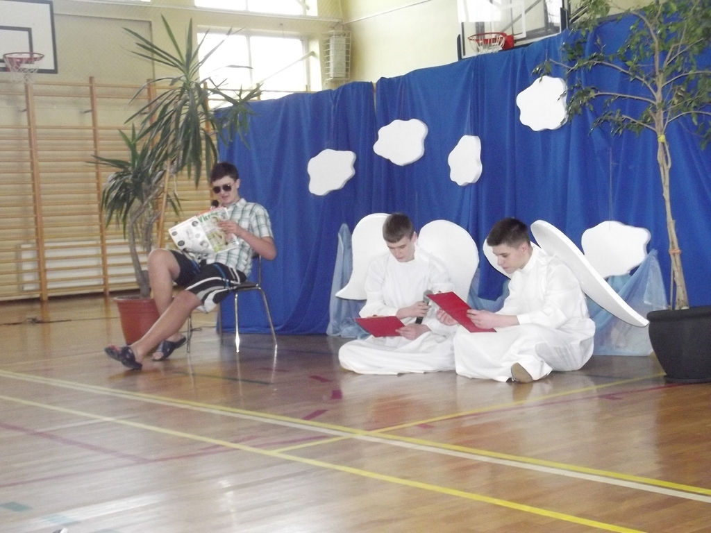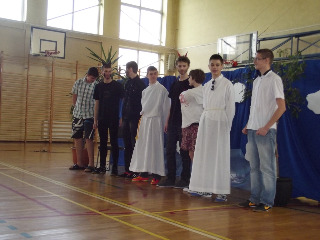 6 marca, na piątej godzinie lekcyjnej odbył się krótki dziesięciominutowy apel z okazji zbliżającego się święta kobiet. Chłopcy z 3b pod czujnym okiem pana Bartka Franicy, przedstawili spektakl, w którym oglądaliśmy piekło, ziemię oraz niebo, gdzie byli sami mężczyźni i się nudzili. Zastanawiali się, nad czym usilnie pracuje Bóg, po czym poznali efekt jego pracy, gdy ukazała się Ewa. Scenka miała przekonać męską część publiczności, jak wiele zawdzięczamy kobietom, bo bez nich świat byłby uboższy. Na koniec każda z pań otrzymała tradycyjnego kwiatka.