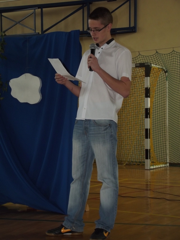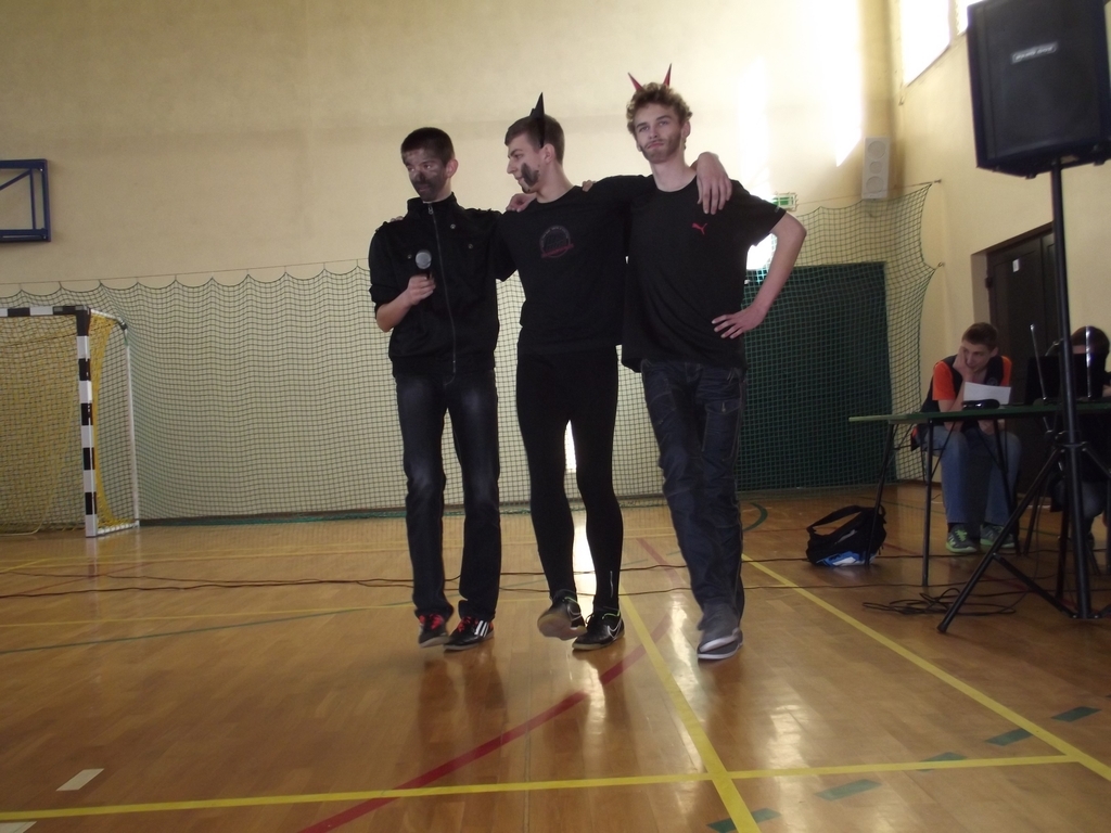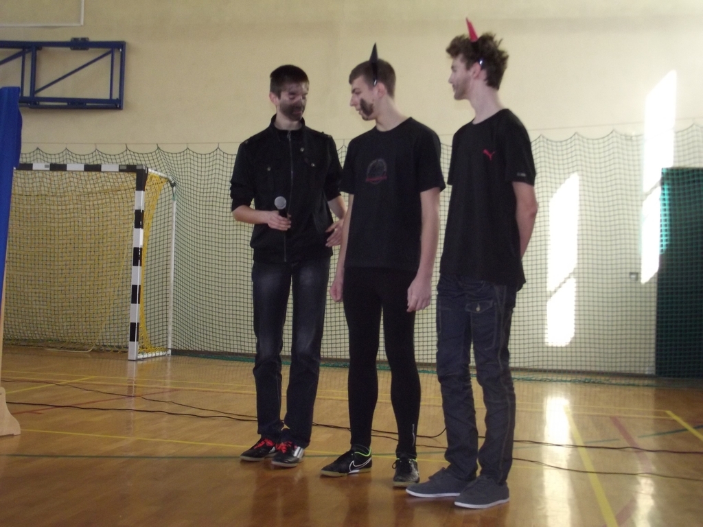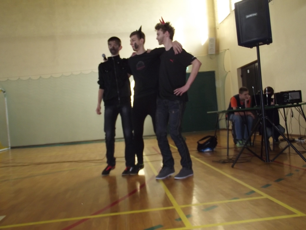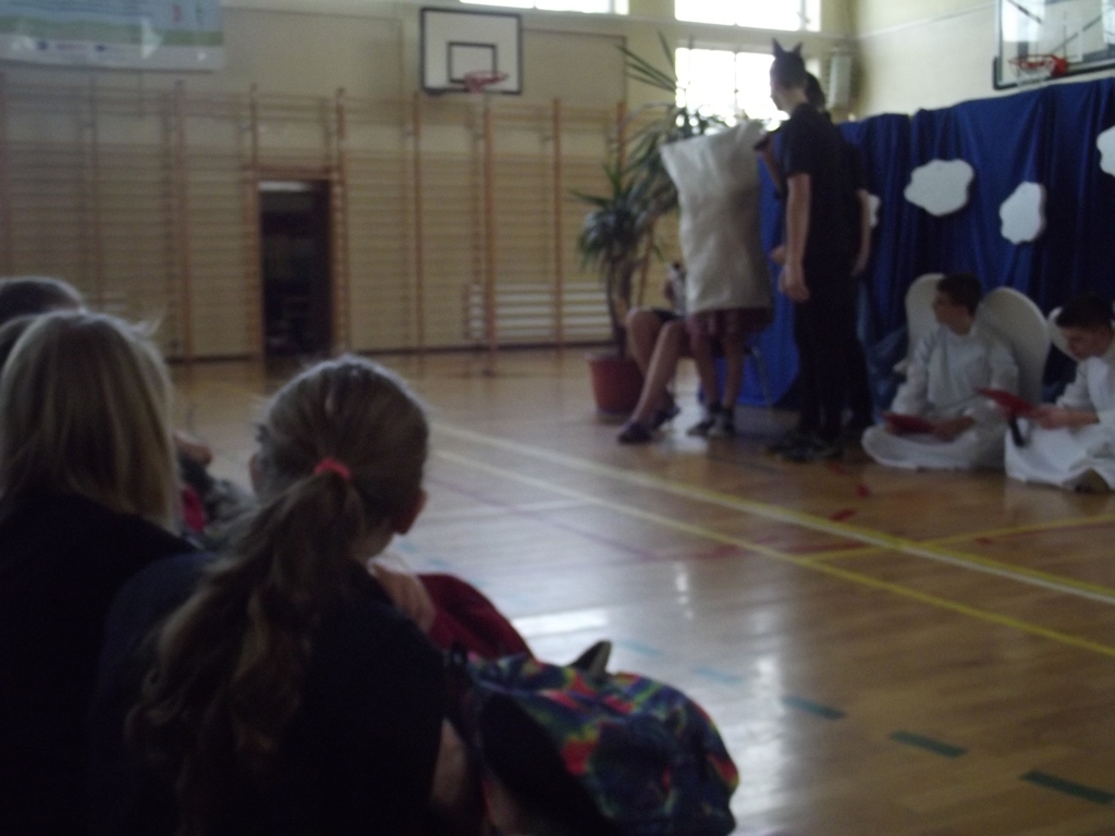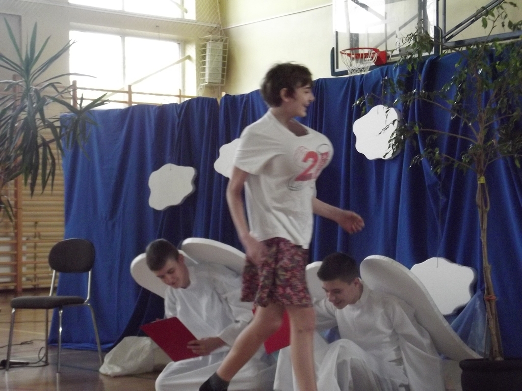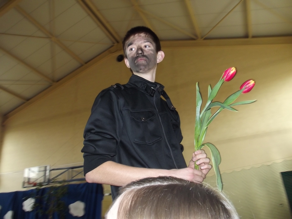 Uroczysta akademia z okazji Dnia Kobiet. Chłopcy z 3b w roli aktorów.