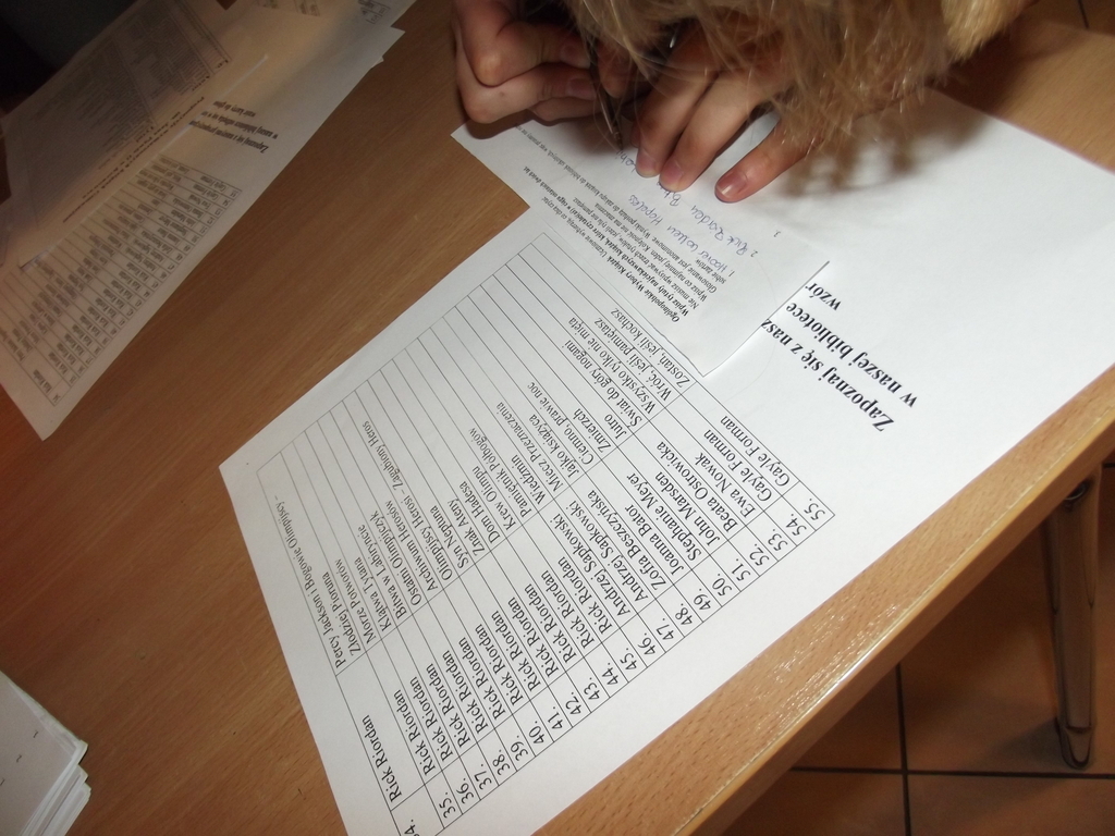 10 marca gimnazjaliści wybierali książki swoich marzeń. Wcześniej zgłaszali swoje propozycje, aby utworzyć listę książek, na które mogli głosować. Zgłoszono 55 tytułów, w większości autorów nie polskich. Największą popularnością cieszyły się tytuły, które gimnazjaliści znali jako adaptacje filmowe. Dziękuję uczennicom, które zaangażowały się w powstanie wykazu i dzielenie się recenzjami z przeczytanych książek. Chłopcom życzę przeczytania chociaż jednej pozycji z naszego wykazu. W wyborach brało udział 131 gimnazjalistów.