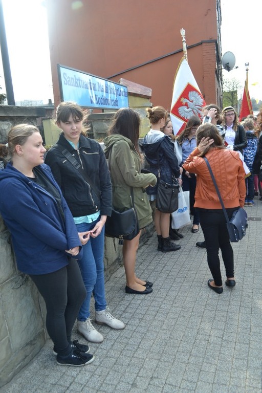 Dnia 16 kwietnia 2015 r. Samorząd Uczniowski wraz z pocztem sztandarowym oraz delegacjami z poszczególnych klas brał udział w V Pielgrzymce Szkół im. Jana Pawła II Archidiecezji Katowickiej do Sanktuarium Matki Bożej z Lourdes w Rudzie Śląskiej- Kochłowicach.