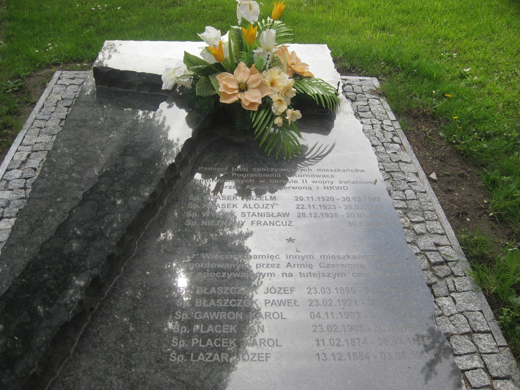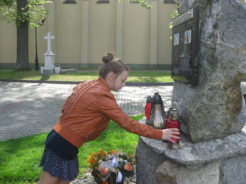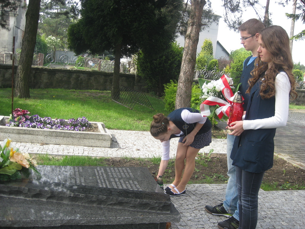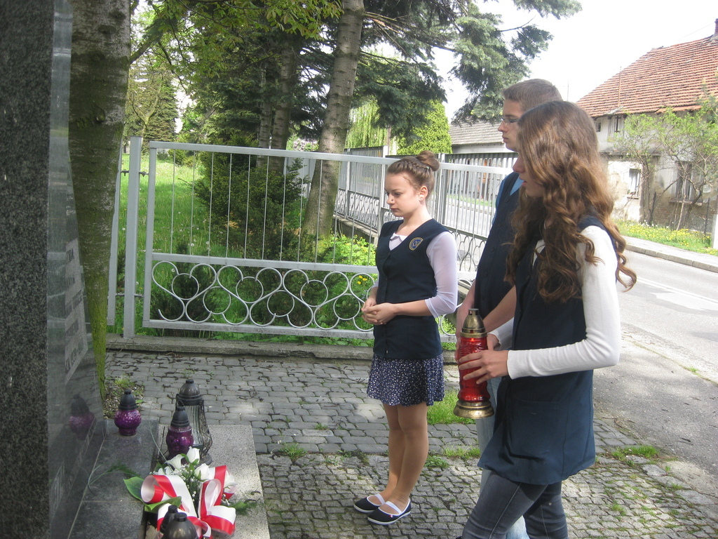 W piątek, 8 maja, z okazji 70 - lecia zakończenia II wojny światowej przedstawiciele Gimnazjum im. Jana Pawła II w Kornowacu złożyli kwiaty i zapalili znicze pod pomnikami pamięci w Pogrzebieniu. Najpierw pod Pomnikiem Pamięci Polskim Dzieciom znajdującym się przy drodze, przed pałacem sióstr salezjanek, gdzie w czasie II wojny światowej mieścił się „POLENLAGER 82”. Następnie, delegacja udała się przed kościół parafialny, gdzie niedawno odsłonięto płytę upamiętniającą śmierć mieszkańców Pogrzebienia i Kornowaca z rąk żołnierzy Armii Czerwonej w czasie wyzwalania naszych ziem w marcu 1945 roku. Na miejscowym cmentarzu zapalono znicz pod pomnikiem upamiętniającym nazwiska 7 mieszkańców Pogrzebienia i Kornowaca, którzy zginęli w obozach koncentracyjnych. Na koniec, przed obeliskiem w oratorium, zapalono znicz, by uczcić pamięć o zmarłym księdzu, Marku Sobesto – katechecie naszego gimnazjum.