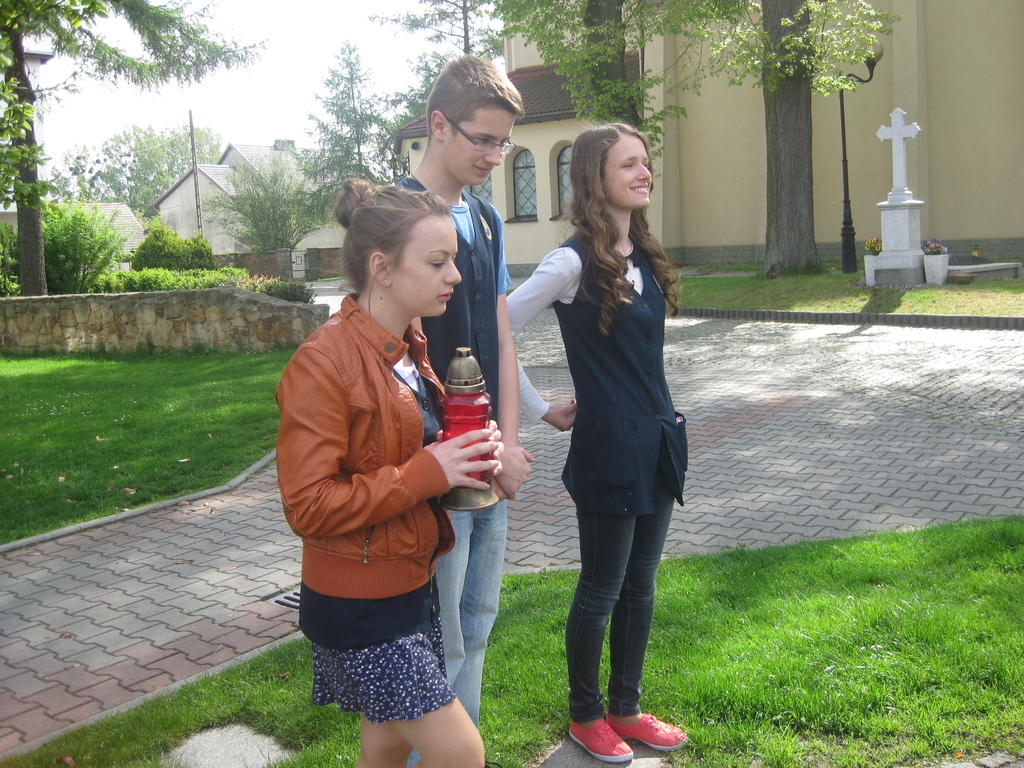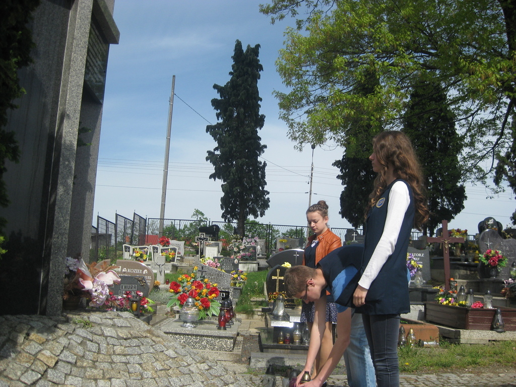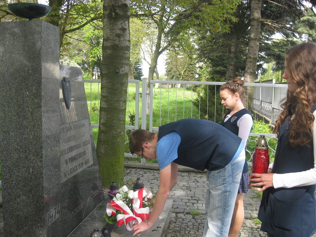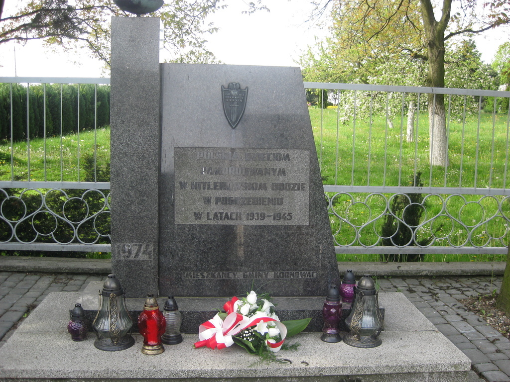 W piątek, 8 maja, z okazji 70 - lecia zakończenia II wojny światowej przedstawiciele Gimnazjum im. Jana Pawła II w Kornowacu złożyli kwiaty i zapalili znicze pod pomnikami pamięci w Pogrzebieniu. Najpierw pod Pomnikiem Pamięci Polskim Dzieciom znajdującym się przy drodze, przed pałacem sióstr salezjanek, gdzie w czasie II wojny światowej mieścił się „POLENLAGER 82”. Następnie, delegacja udała się przed kościół parafialny, gdzie niedawno odsłonięto płytę upamiętniającą śmierć mieszkańców Pogrzebienia i Kornowaca z rąk żołnierzy Armii Czerwonej w czasie wyzwalania naszych ziem w marcu 1945 roku. Na miejscowym cmentarzu zapalono znicz pod pomnikiem upamiętniającym nazwiska 7 mieszkańców Pogrzebienia i Kornowaca, którzy zginęli w obozach koncentracyjnych. Na koniec, przed obeliskiem w oratorium, zapalono znicz, by uczcić pamięć o zmarłym księdzu, Marku Sobesto – katechecie naszego gimnazjum.