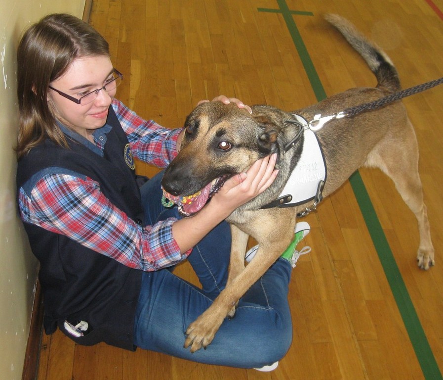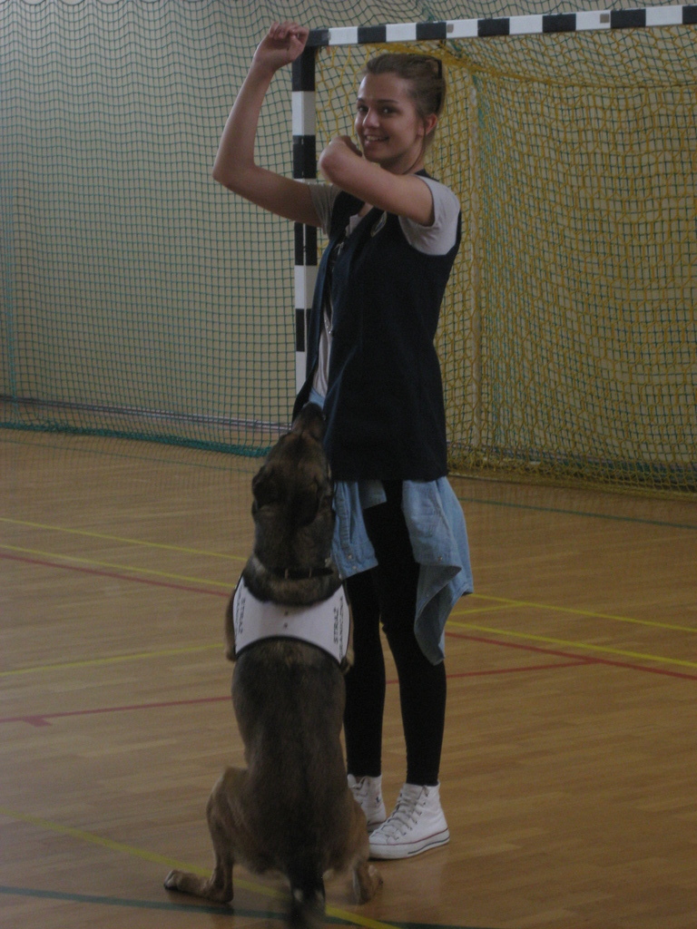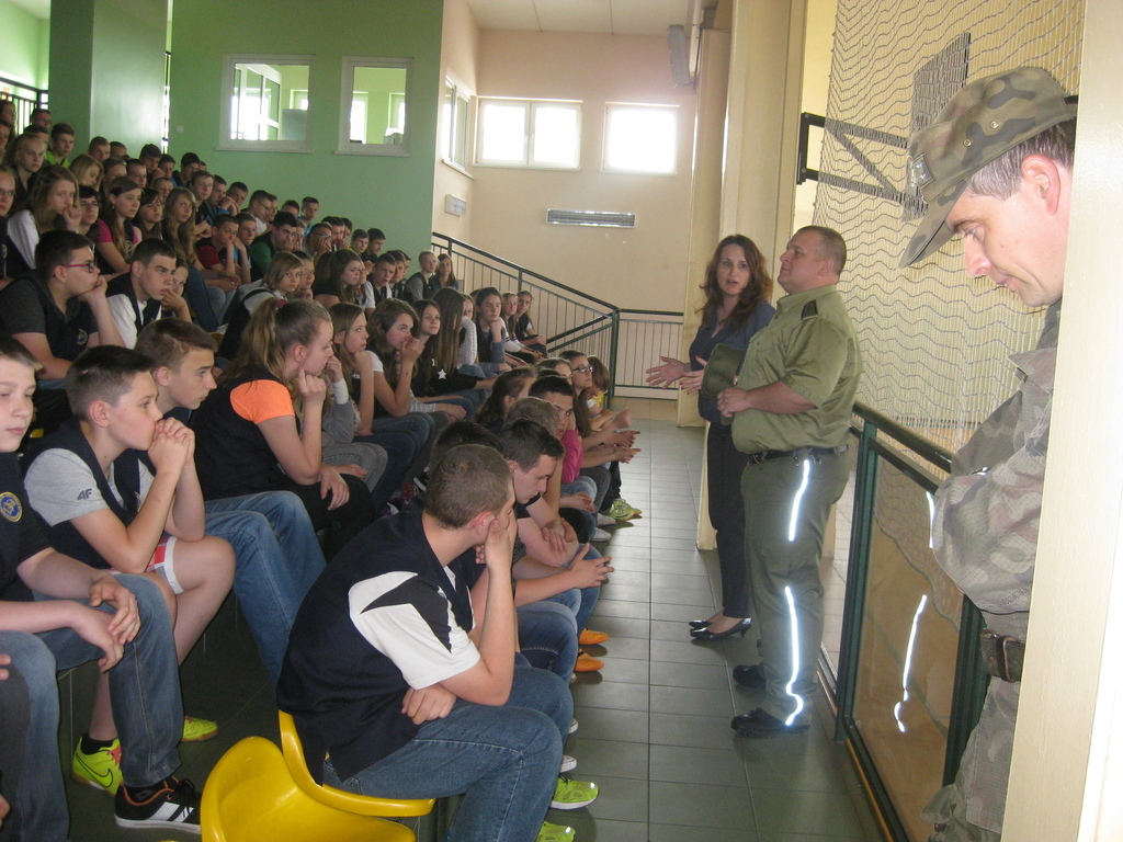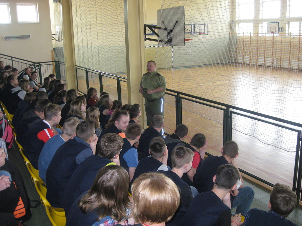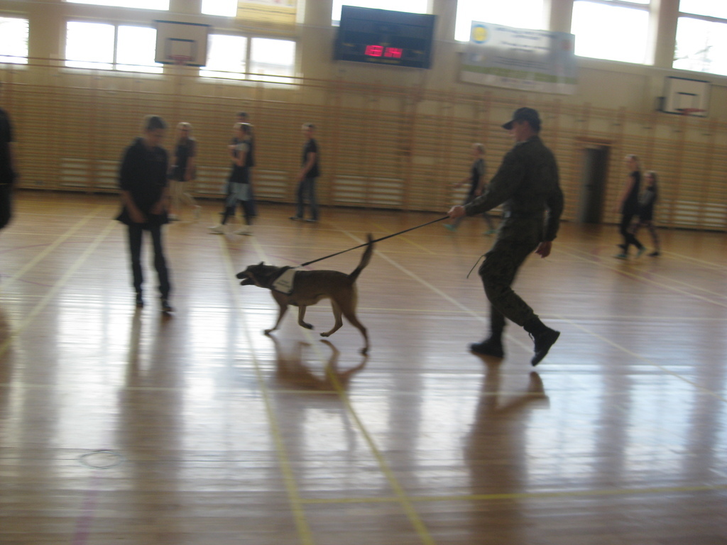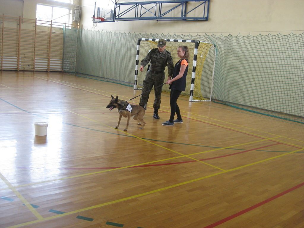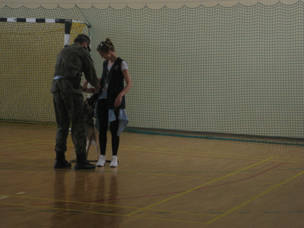 15 maja w naszej szkole gościliśmy funkcjonariuszy Śląsko-Małopolskiego Oddziału Straży Granicznej - st. chor. SG Daniela Bartusiaka oraz st. chor. SG Dariusza Grzonkę wraz z psem służbowym, owczarkiem belgijskim - Kirą. Funkcjonariusze przeprowadzili pogadankę z zakresu profilaktyki uzależnień. Poruszyli, jakże ważny przed zbliżającymi się wakacjami, temat związany ze skutkami zażywania narkotyków oraz tzw. „dopalaczy”, przypomnieli również o konsekwencjach prawnych związanych z ich posiadaniem oraz dystrybucją. Po przeprowadzonej prelekcji odbył się pokaz umiejetności psa służbowego wyszkolonego w zakresie wyszukiwania narkotyków.