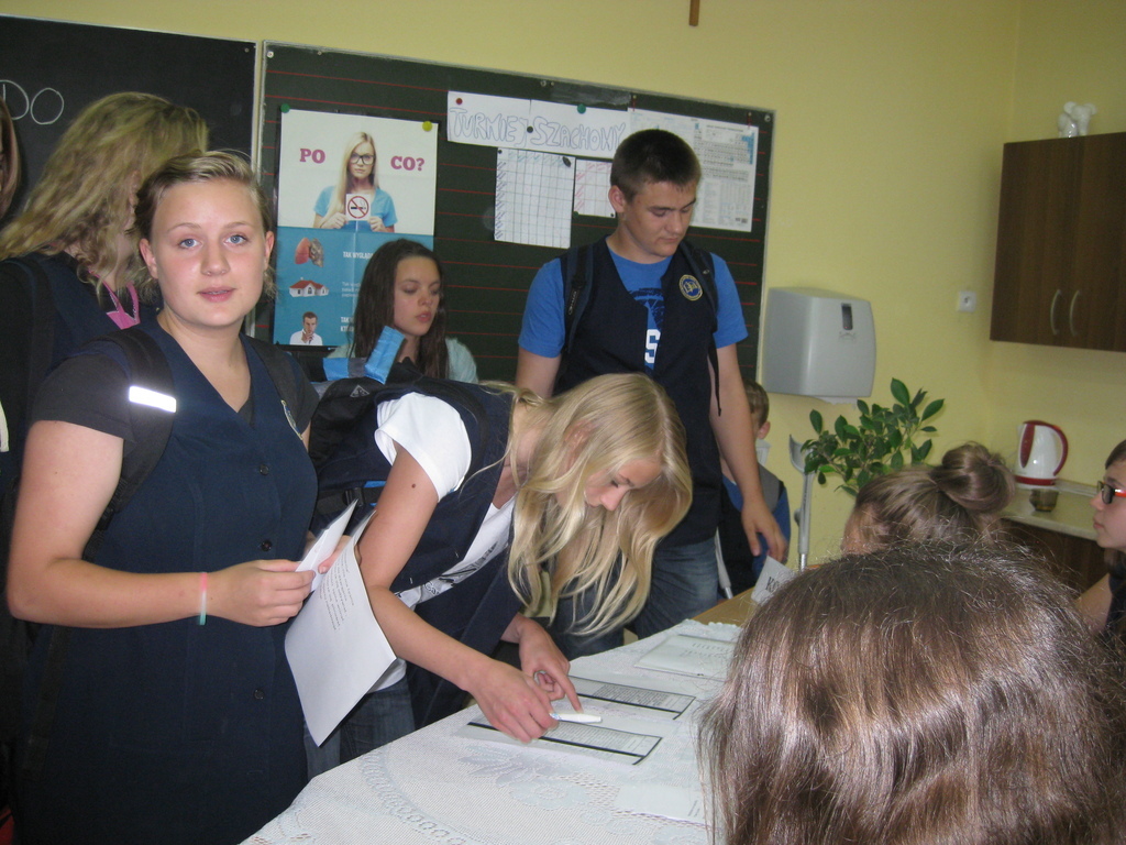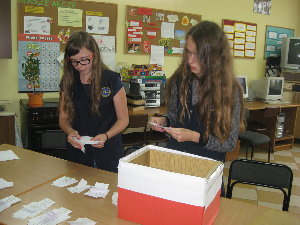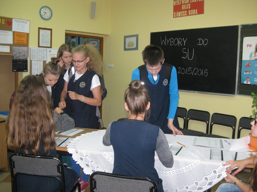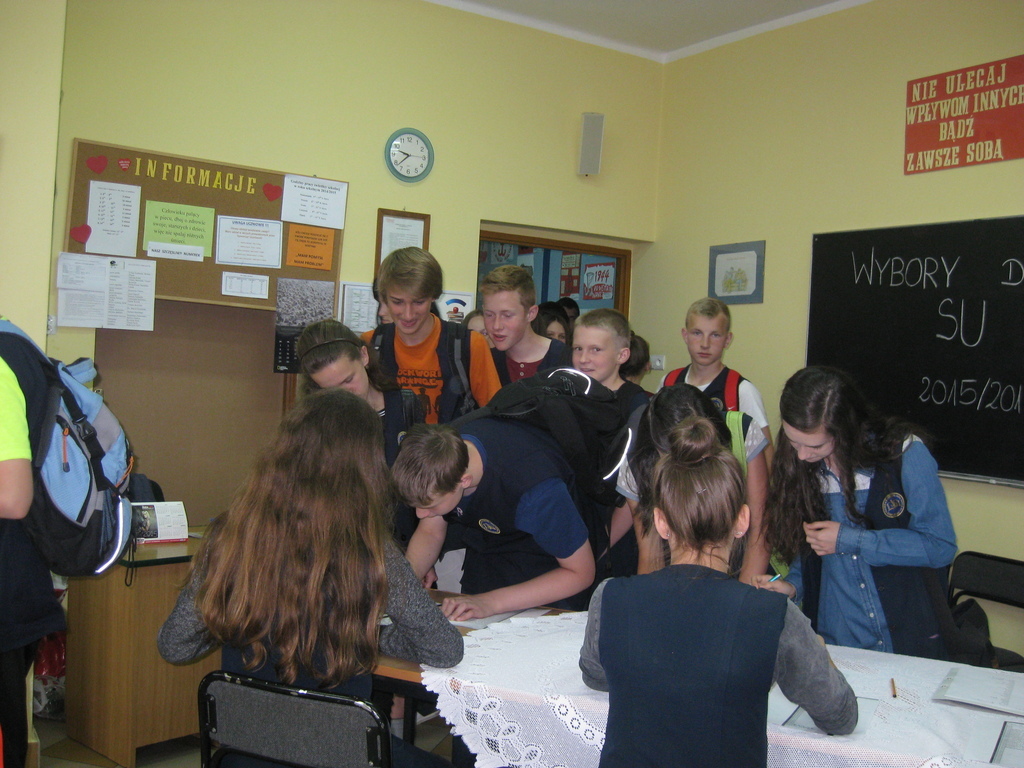W dniu 19.06.2015r. odbyły się wybory do SU na rok szkolny 2015/2016, poprzedzone dziesięciodniową kampanią wyborczą. Kandydatami do SU byli: Julia Zimermann, Małgorzata Piechalak, Natalia Niedbała, Michał Moneta, Laura Zimermann, Dominika Krolik, Wiktoia Moskwa, Natalia Primus, Kamila Kachel, Marta Kołek, Patryk Ber i Szymon Murański. Wybory zwyciężyła Natalia Niedbałą, która we wrześniu obejmie stanowisko Przewodniczącego Szkoły. Rzecznikiem Praw Ucznia została Kamila Kachel. W wyborach brała udział cała społeczność uczniowska oraz nauczyciele i pracownicy gimnazjum. W komisji wyborczej zasiedli przedstawiciele ustępującego SU tj. Nicola Mandera, Żaneta Kuśmierz i Beata Kaczmarek. Nad prawidłowym przebiegiem czuwała Pani Teresa Szyra – opiekun SU.