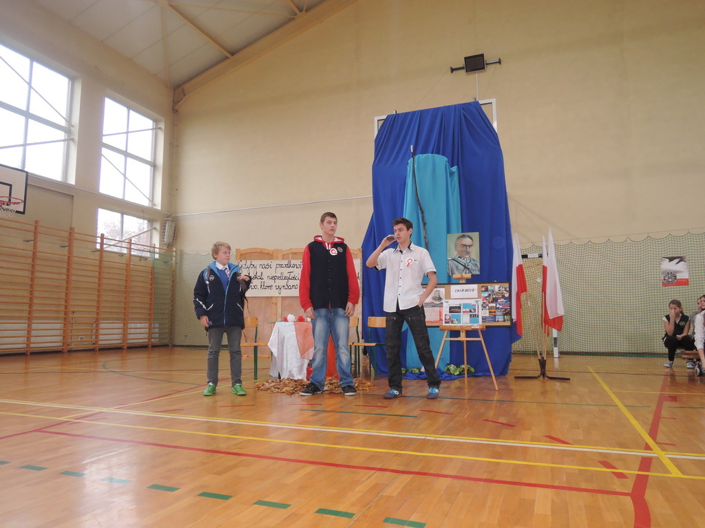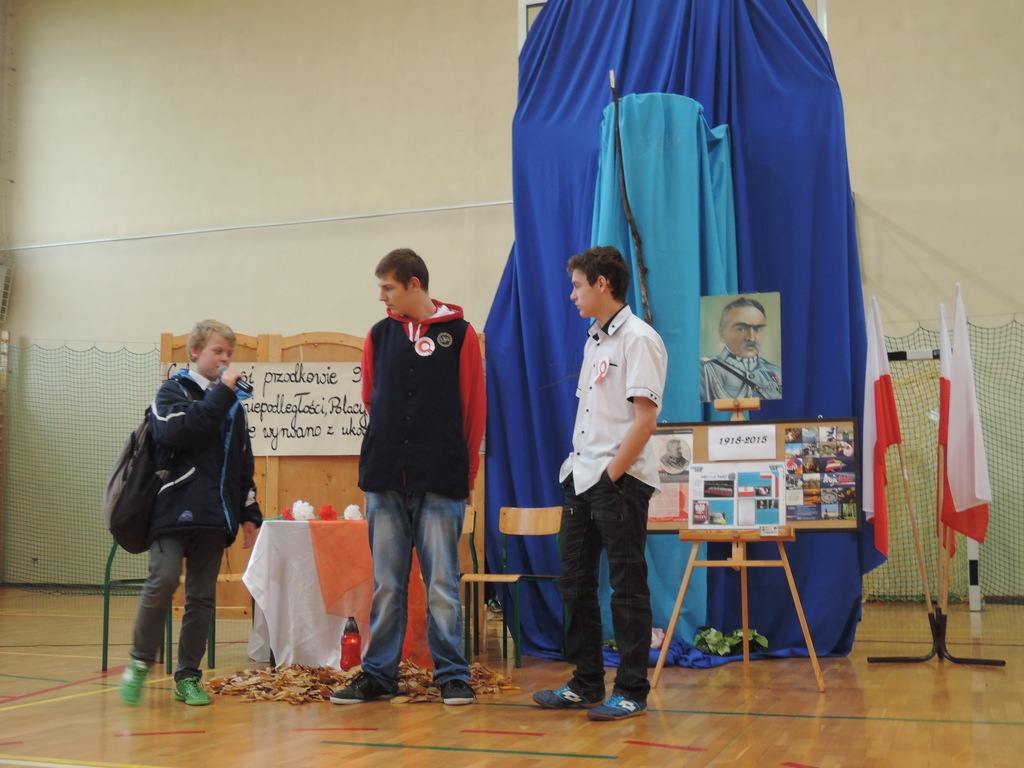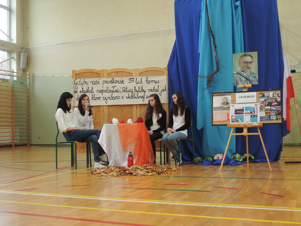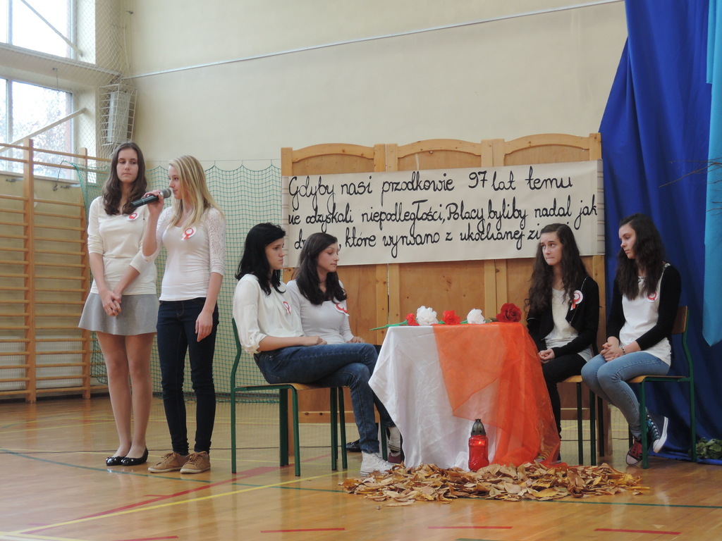 Uroczystość rozpoczęła się od obejrzenia przez młodzież „Krótkiej historii Polski” Bagińskiego. Później trzecioklasiści przedstawili scenkę z życia szkoły, w której próbowali odpowiedzieć na pytanie, czym był kiedyś, a czym jest dziś patriotyzm dla przeciętnego nastolatka. Rozważania te przeplatane były patriotycznymi pieśniami w wykonaniu szkolnego chóru oraz recytacją wybranych dzieł Norwida, Słowackiego i Różewicza. W ten sposób przypomniano uczniom burzliwe dzieje naszego narodu, 123 letnią niewolę, walkę o niepodległość oraz pamiętną datę 11 listopada 1918r. Całość zakończyła się na placu apelowym na podwórku, gdzie uroczyście wciągnięto flagę na maszt i odśpiewano państwowy hymn.