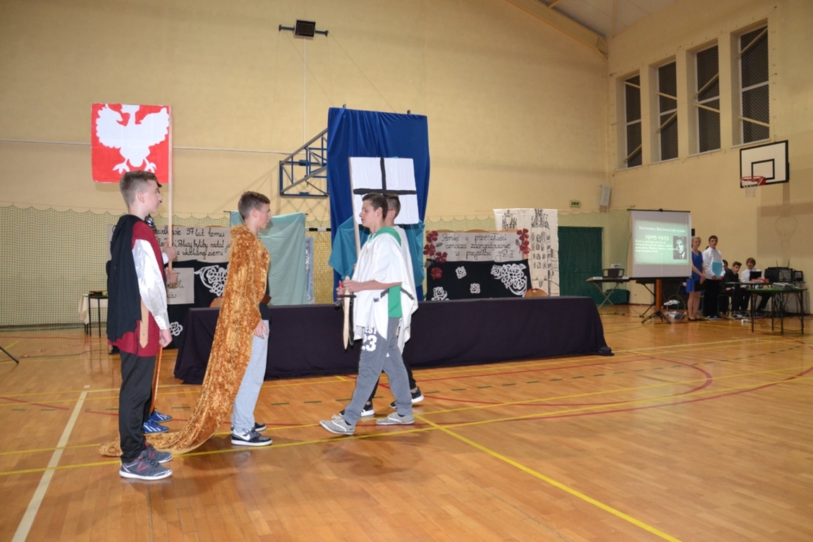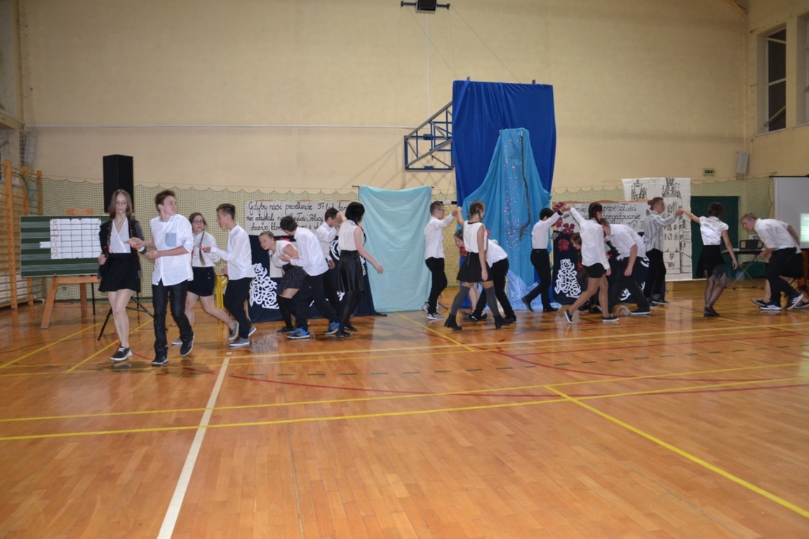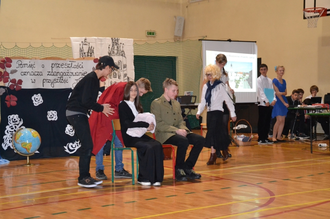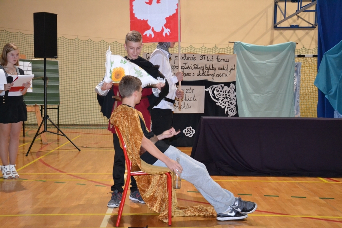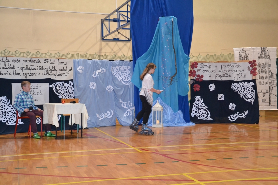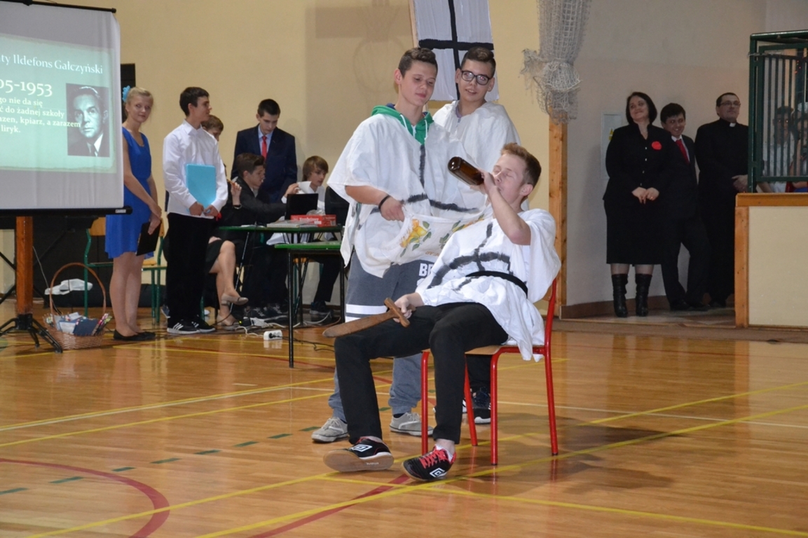 Występy rozpoczęła kl. II b przedstawiając postać Jana Długosza, w którą wcielił się wychowawca tej klasy Tomasz Kozielski. Klasy III a I III b przybliżyły zebranym twórczość Konstantego Ildefonsa Gałczyńskiego. Trzy następne, czyli kl. I a i I b oraz II a swoimi występami uczciły postać naszego patrona. Tą ostatnią dyrygowała wychowawczyni Katarzyna Franica, niczym sam Piotr Rubik. W występach wzięli udział wszyscy pracownicy szkoły. Zaśpiewali „Ukochany kraj” do słów K. I. Gałczyńskiego, a na koniec „Lolka”, z byłym katechetą ks. Marcinem Śnieżyńskim. Prace nad całością programu koordynowała pani Barbara Stawinoga. W pomoc zaangażowali się również rodzice.