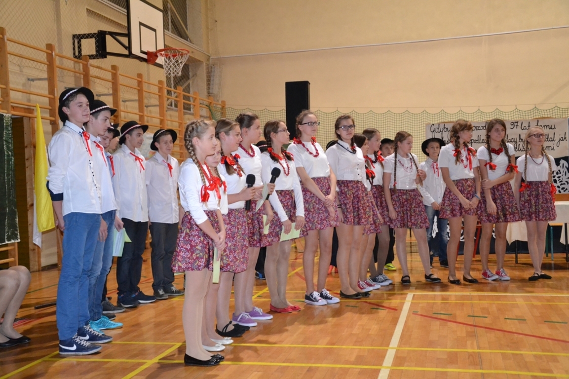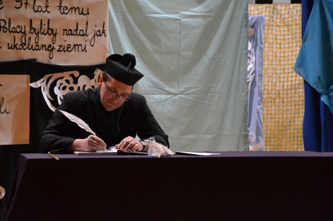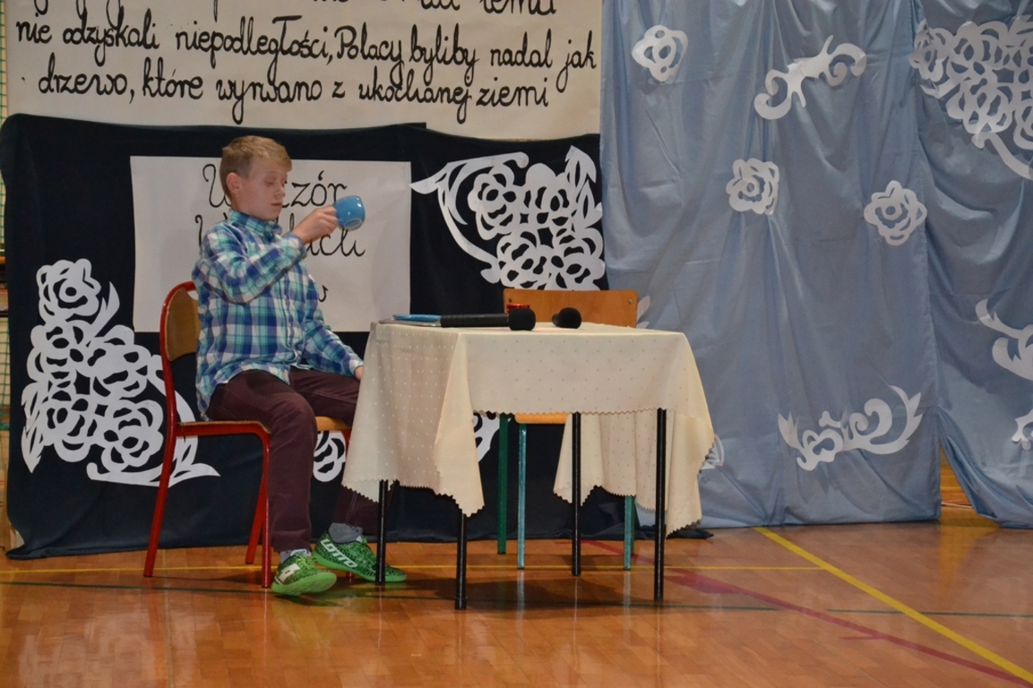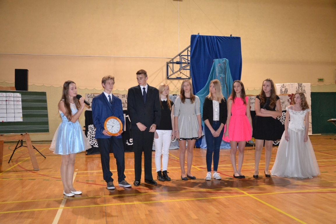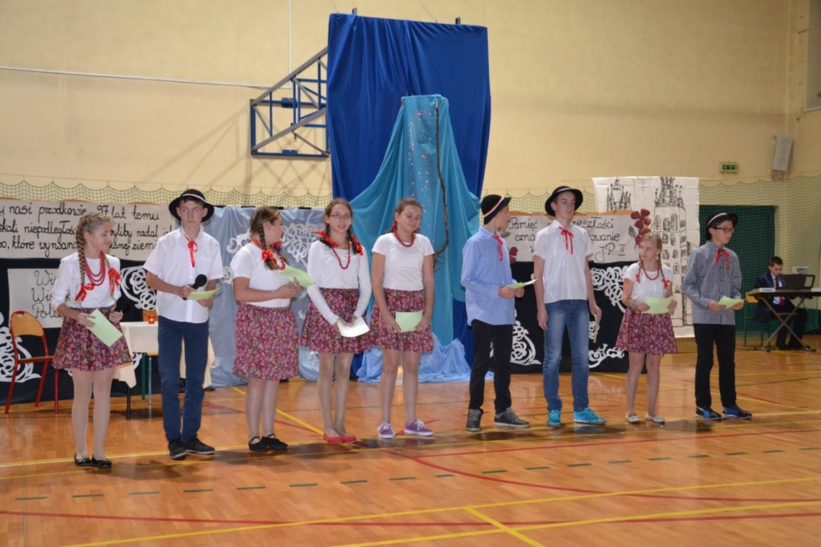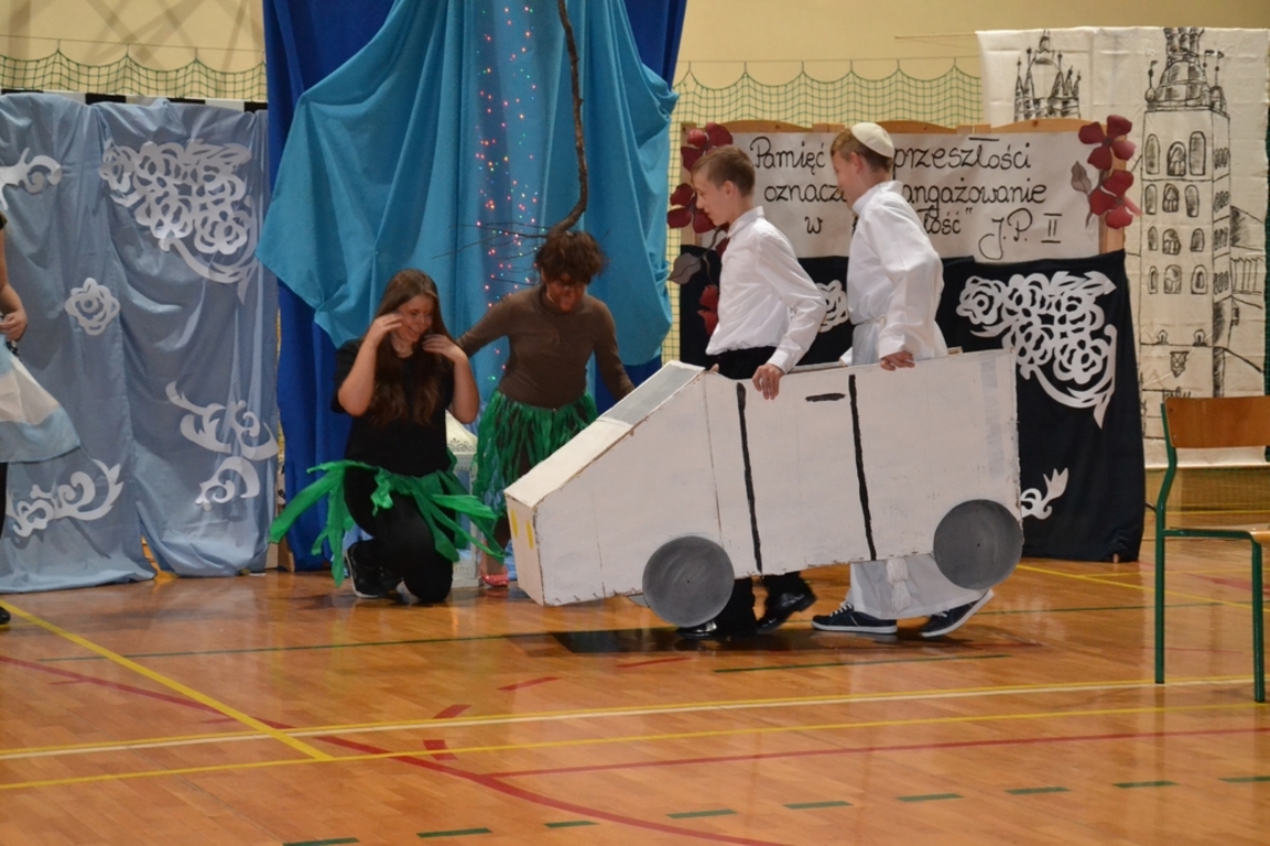 Występy rozpoczęła kl. II b przedstawiając postać Jana Długosza, w którą wcielił się wychowawca tej klasy Tomasz Kozielski. Klasy III a I III b przybliżyły zebranym twórczość Konstantego Ildefonsa Gałczyńskiego. Trzy następne, czyli kl. I a i I b oraz II a swoimi występami uczciły postać naszego patrona. Tą ostatnią dyrygowała wychowawczyni Katarzyna Franica, niczym sam Piotr Rubik. W występach wzięli udział wszyscy pracownicy szkoły. Zaśpiewali „Ukochany kraj” do słów K. I. Gałczyńskiego, a na koniec „Lolka”, z byłym katechetą ks. Marcinem Śnieżyńskim. Prace nad całością programu koordynowała pani Barbara Stawinoga. W pomoc zaangażowali się również rodzice.