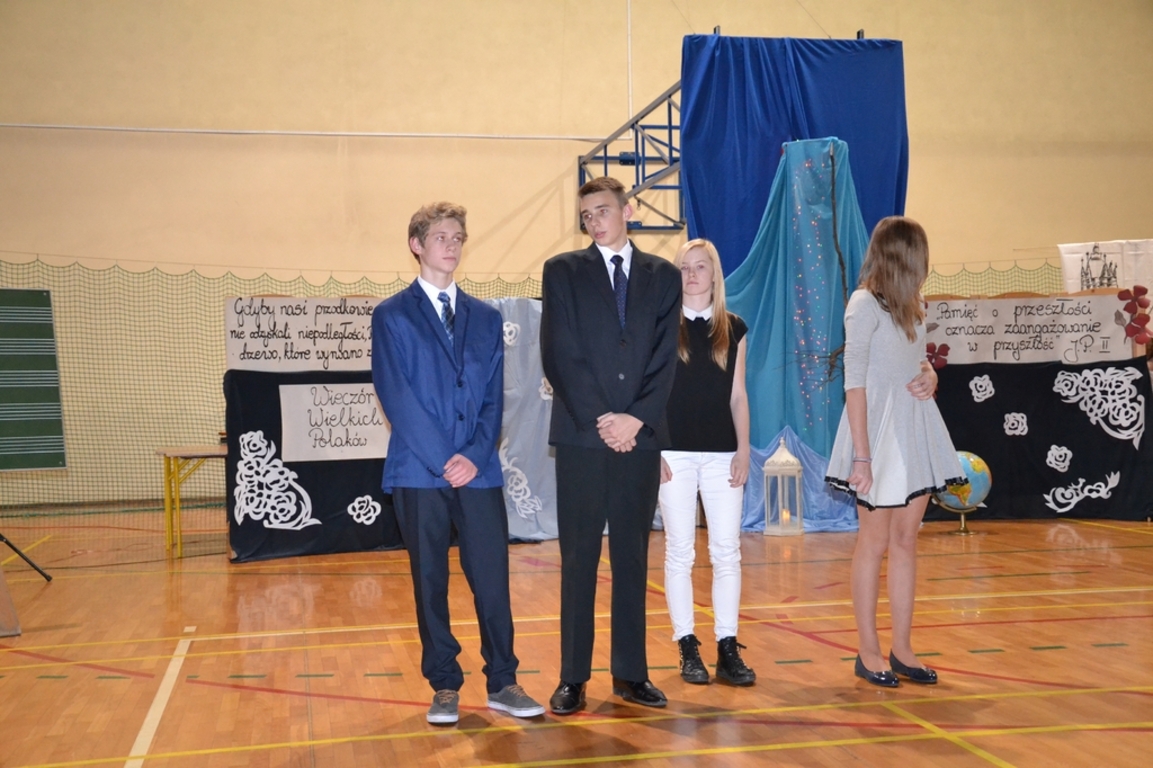 Klasy przygotowywały się do imprezy od września. Każda z klas wylosowała jednego z trzech Polaków i przygotowała scenki z jego życia do przedstawienia podczas Wieczoru. Jak zwykle, w tego typu imprezach na terenie gimnazjum, celem było zaangażowanie w prace i występy każdej klasy, wszystkich uczniów i całej społeczności szkolnej.