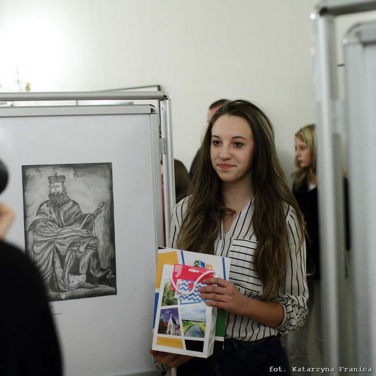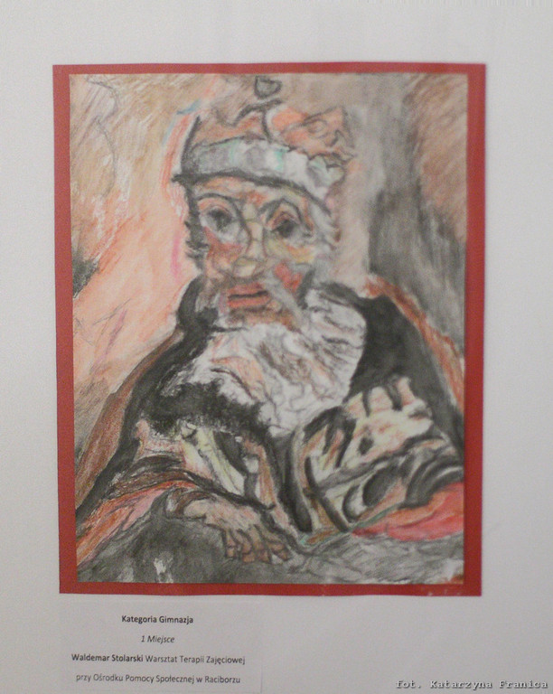 W kategorii gimnazjum nagrodzone zostały trzy portrety Mieszka IV, w tym dwa wyróżnienia otrzymały nasze uczennice: Justyna Helis i Żaneta Kapuścik – obie z kl. II a. Pozostali uczniowie z naszej szkoły (Julia Zimermann, Robert Kornas, Adrian Pawełek, Daniel Miklis – II a; Emilia Krawczyńska i Klaudia Kalisz – II b) dostali na pamiątkę dyplomy uczestnictwa i gromkie brawa. Konkurs w szkole przeprowadziła pani Barbara Stawinoga. Gratulujemy!