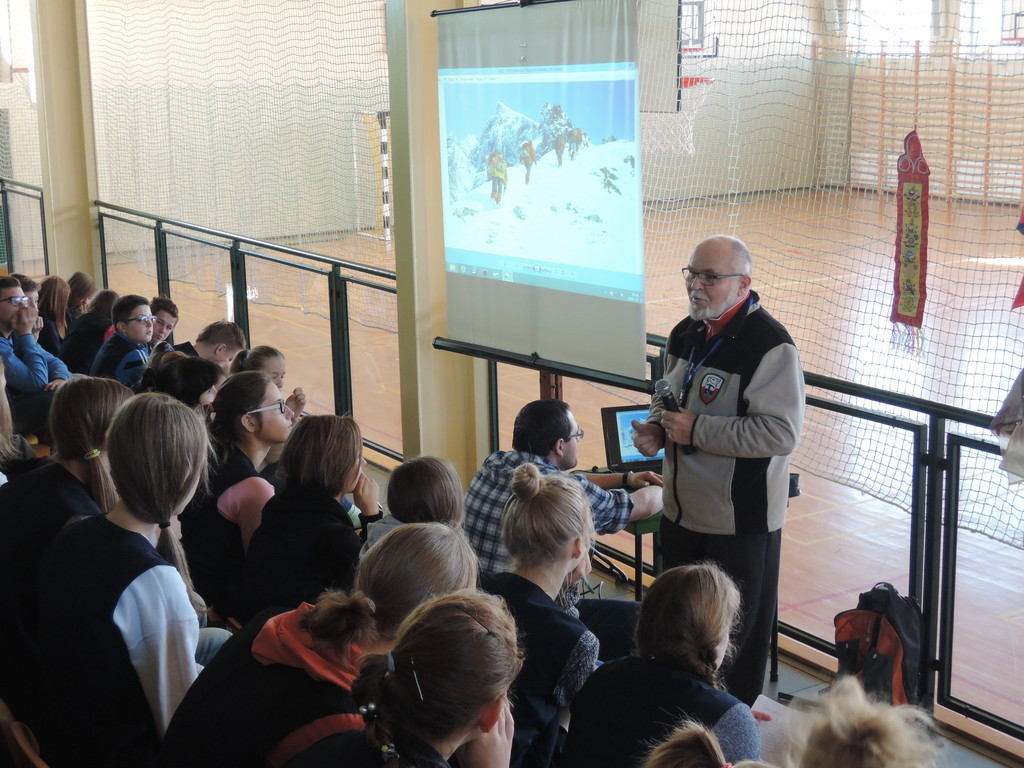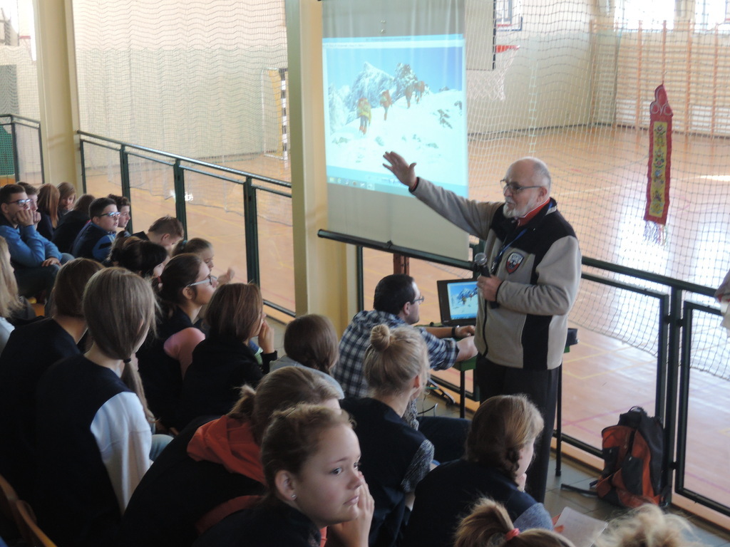 Z wielkim wzruszeniem pan Ignacy wspominał swojego serdecznego przyjaciela Jerzego Kukuczkę. Opowiadał nam o jego wyczynach wspinaczkowych oraz życiu. Jerzy Kukuczka zdobył m.in. szczyty w Alpach, Tatrach oraz Hindukusz. Najwybitniejszy polski taternik, himalaista oraz alpinista, jako drugi człowiek na świecie, po Reinholdzie Mesnerze, zdobył Koronę Himalajów czyli 14 szczytów z wysokością ponad 8000 m. n.p.m. Zginął na Lhotse w Nepalu 24 października 1989 r. na skutek upadku po pęknięciu liny. Jerzy Kukuczka uznawany jest za jednego z najwybitniejszych himalaistów XX wieku.