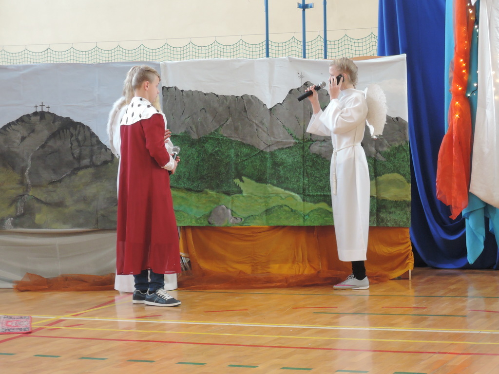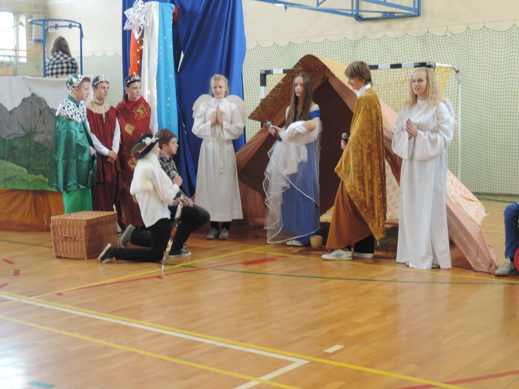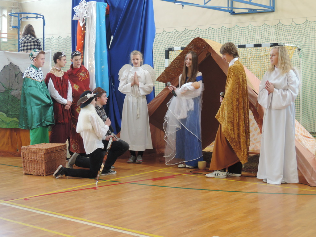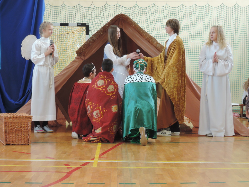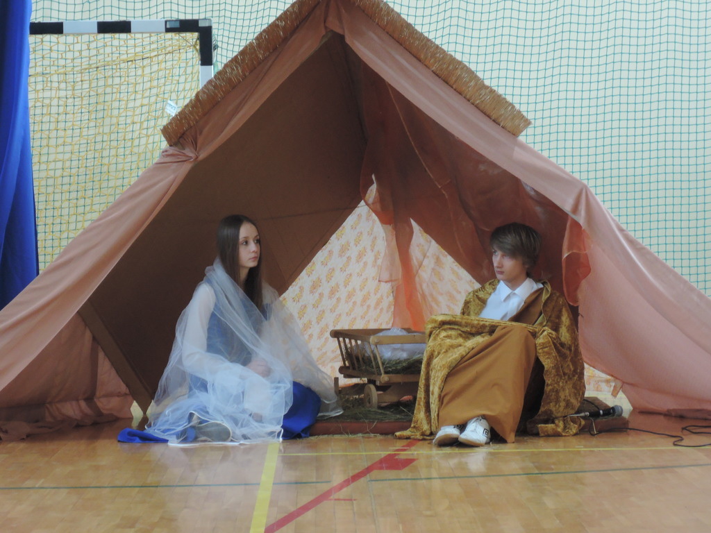 Tradycją już stało się odgrywanie przez naszych uczniów scen przybliżających Boże Narodzenie. Gdy nadchodzą się te niezwykłe dni, gdy każdy chce być na choć na chwilę lepszy, gdy chcemy obdarowywać choć najdrobniejszym upominkiem drugiego człowieka, przypominamy sobie biblijne sceny zwiastowania i narodzenia Pańskiego. Co roku poszukujemy nowych ujęć tych wydarzeń, by zrozumieć wagę zbliżających się świąt.