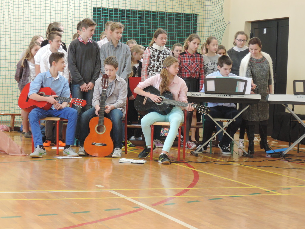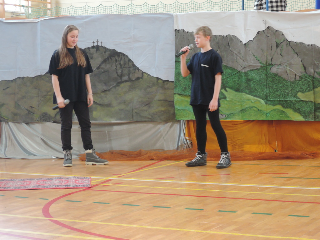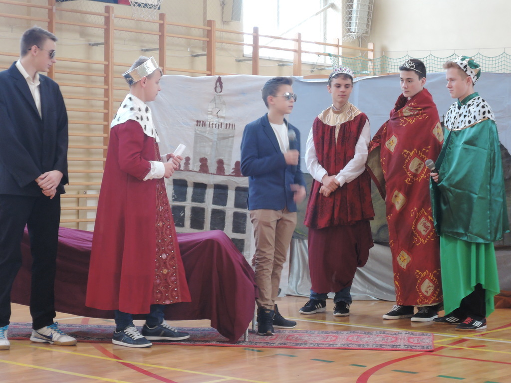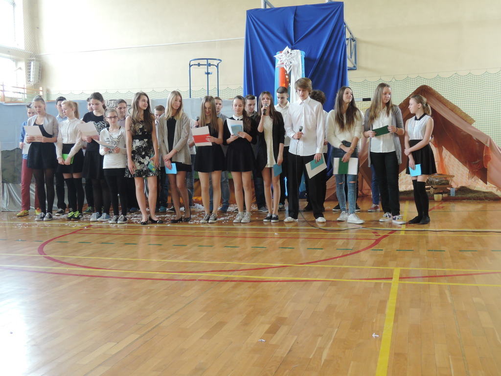 Od początku nasi uczniowie wraz z opiekunami: ks. Tomaszem Pańczyszynem SDB i p. Katarzyną Franicą przygotowywali to wyjątkowe przedstawienie, które swoją premierę miało w poranek 22 grudnia, gdy w gimnazjum obchodziliśmy wigilię szkolną i wigilie klasowe. Uroczystość ta jak zwykle zakończyła się wspólnym kolędowaniem. Wykonane zostały utwory tradycyjne i współczesne. Nad całością czuwała p. Barbara Stawinoga.