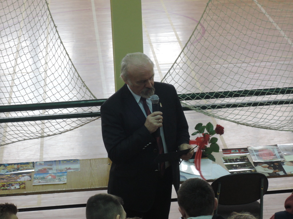 W poniedziałek, 8 lutego w naszym gimnazjum odbyło się spotkanie z posłem Czesławem Sobierajskim – wielkim miłośnikiem i pasjonatą św. Jana Pawła II. Pan poseł przypomniał młodzieży dotąd nieznane, ciekawe fakty z życia naszego Patrona. Zaprezentował również monety z wizerunkiem papieża, karty telefoniczne, pocztówki, różaniec oraz stułę. Przedstawił zebranym zdjęcia z wystawy papieskiej w gmachu Sejmu w Warszawie. Młodzież symboliczną różą i laurką podziękowała panu Czesławowi za tak ciekawą prelekcję.