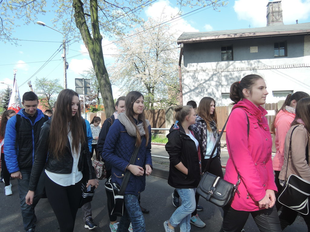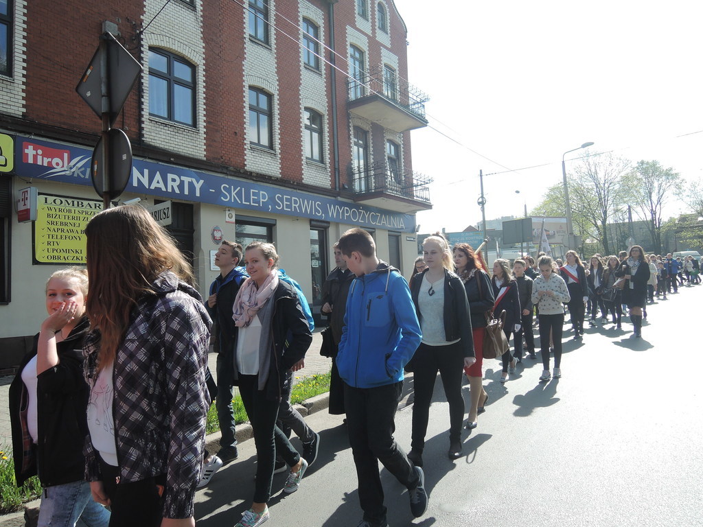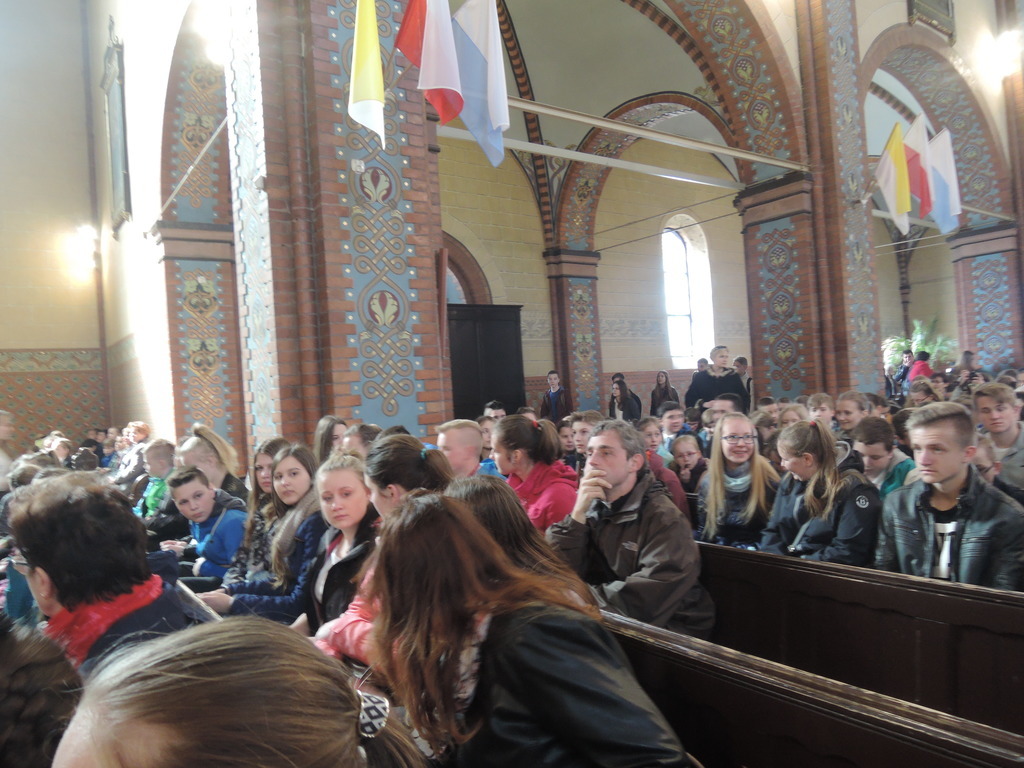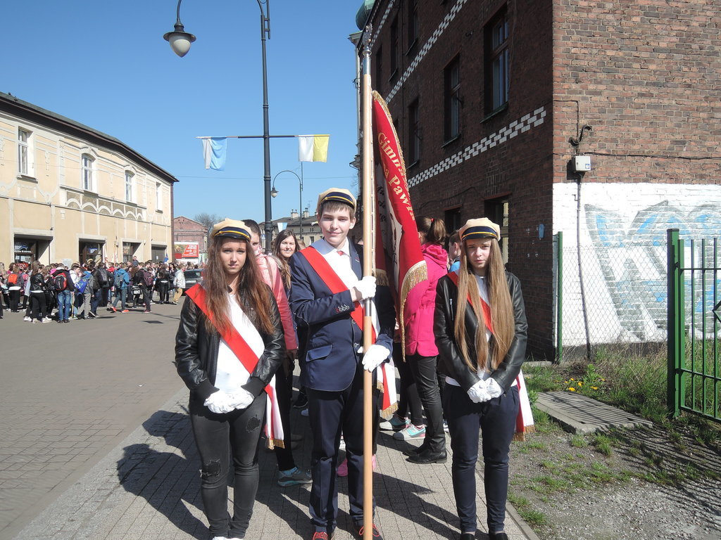 W czwartek 21 kwietnia 2016 roku byliśmy na VI Pielgrzymce Rodziny Szkół imienia Jana Pawła II. Spod szkoły wyruszyliśmy tuż po ósmej, zaś na miejscu byliśmy przed dziesiątą. Po krótkiej modlitwie nasza 18-osobowa grupa reprezentantów ustawiła się wśród uczniów innych szkół. Wszyscy razem udaliśmy się na procesję do kościoła Trójcy Przenajświętszej na uroczystą mszę świętą. W trakcie Eucharystii śpiewał wspaniale przygotowany chór. Nasi reprezentanci jako dar złożyli wykonane w formie plastycznej uczynki miłosierdzia względem duszy. Po mszy nadszedł czas na wspólny poczęstunek oraz odbiór pamiątek. Około godziny 15 dotarliśmy pod mury szkoły.
