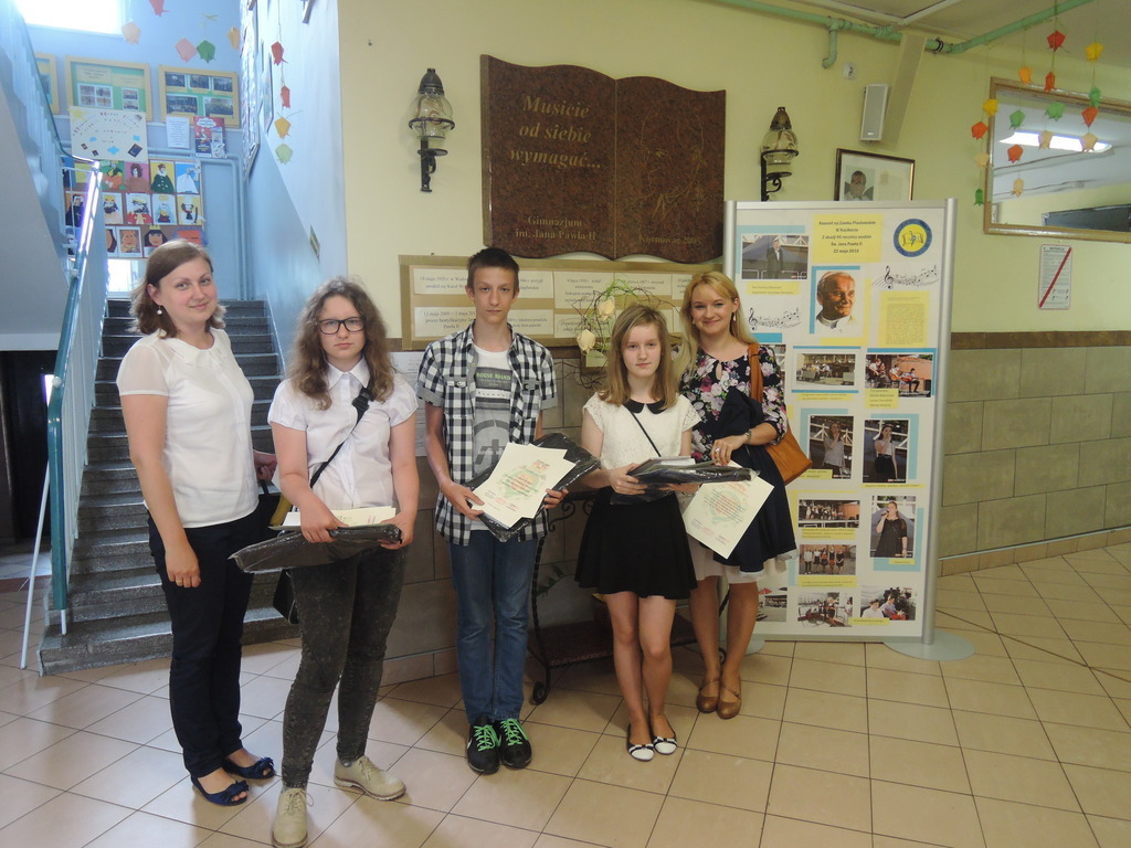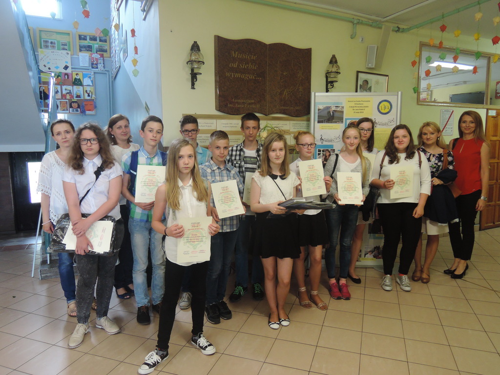 Dnia 2 czerwca 2016 roku w naszym gimnazjum odbyła się czwarta już edycja Gminnego Konkursu Języka Angielskiego dla szkół podstawowych z naszej gminy oraz z gmin sąsiednich. Do konkursu zgłosiło się jedenastu uczestników z pięciu szkół: ZSP w Kobyli, ZSP w Pogrzebieniu, ZSP w Rzuchowie, ZSO w Lubomi oraz ZSP w Pstrążnej. W skład jury weszli nauczyciele języka angielskiego szkół uczestniczących w konkursie: pani Małgorzata Wasiuta, pani Agnieszka Kłobuch, pani Laura Burek oraz pani Anna Tesarczyk. Konkurs obejmował test pisemny sprawdzający znajomość języka angielskiego w zakresie szkoły podstawowej oraz znajomość wybranych zagadnień z zakresu kultury, geografii, historii oraz polityki Walii. Po napisaniu testu, w czasie obrad jury, uczestnicy mogli poczęstować się napojami, owocami oraz zdrowymi przekąskami. Po podliczeniu wszystkich punktów Komisja Konkursowa wyłoniła trzech zwycięzców:
