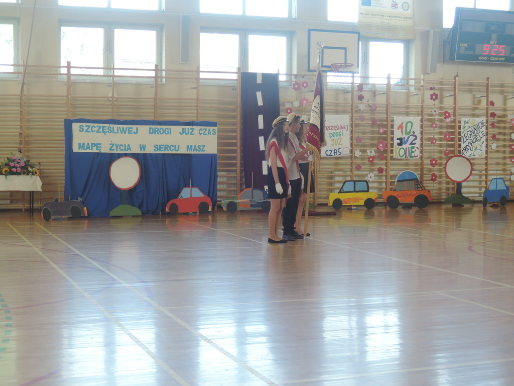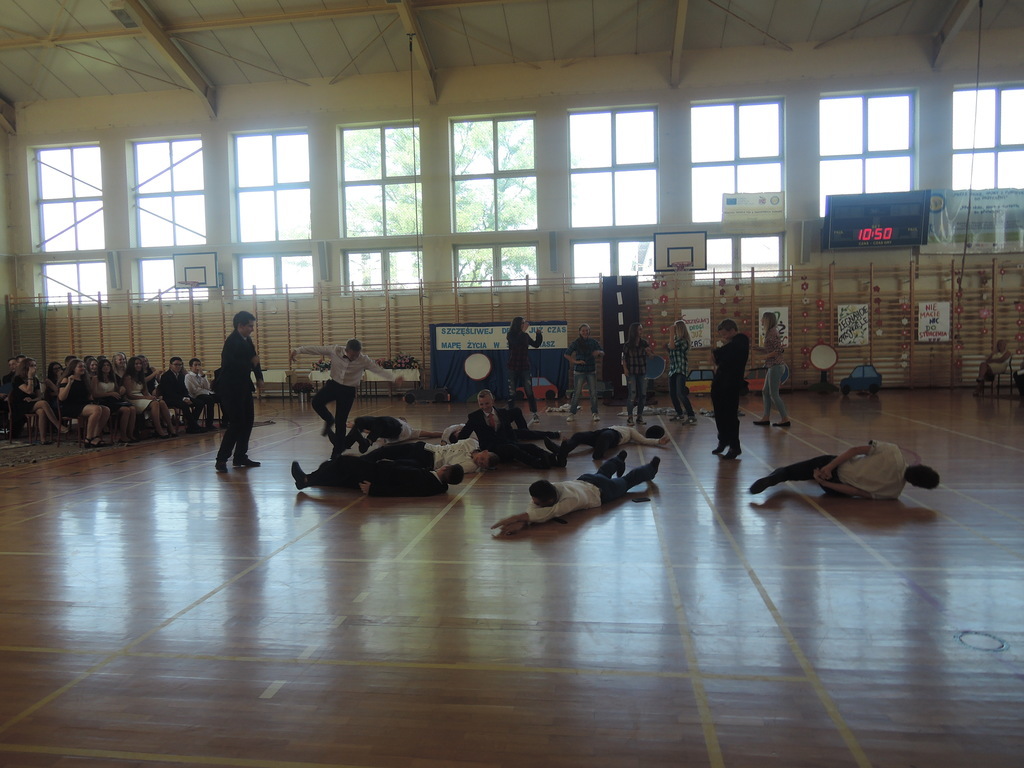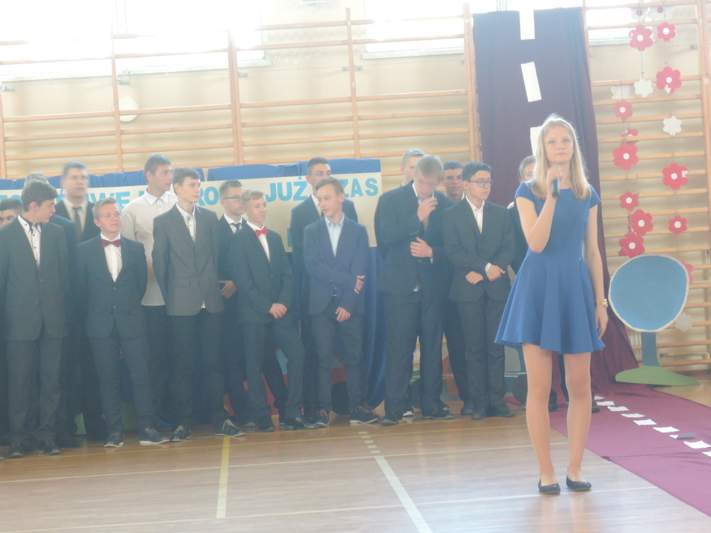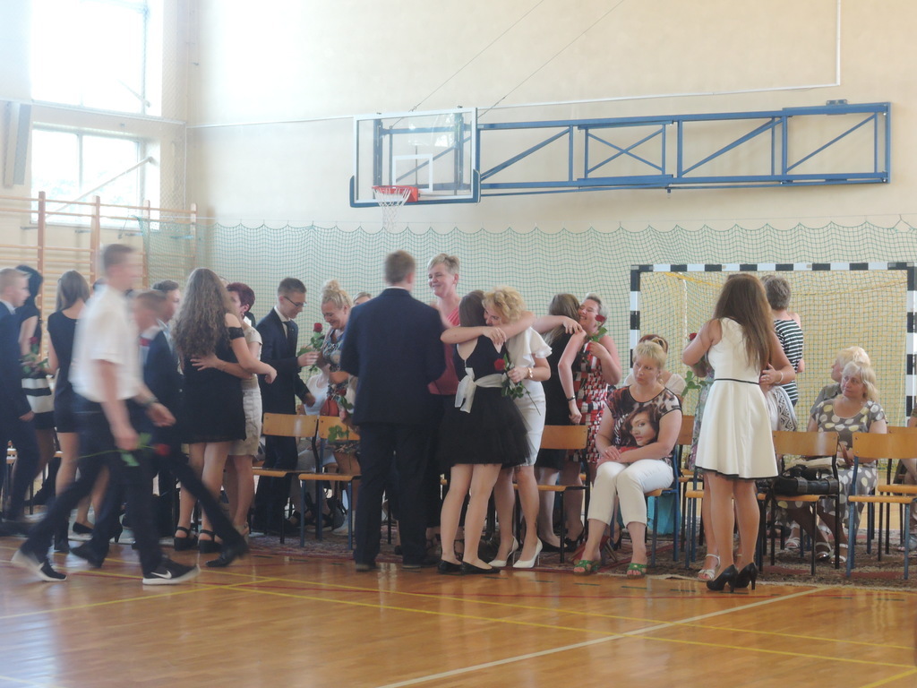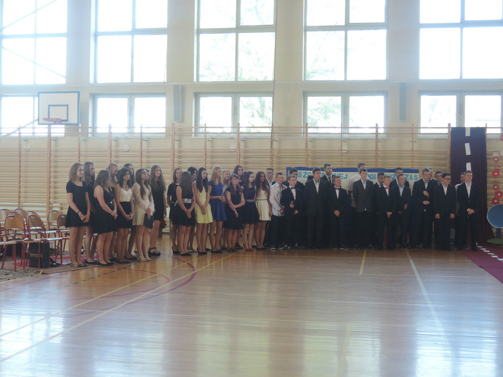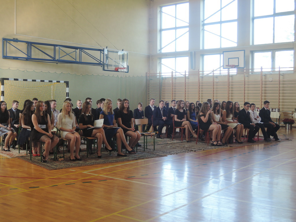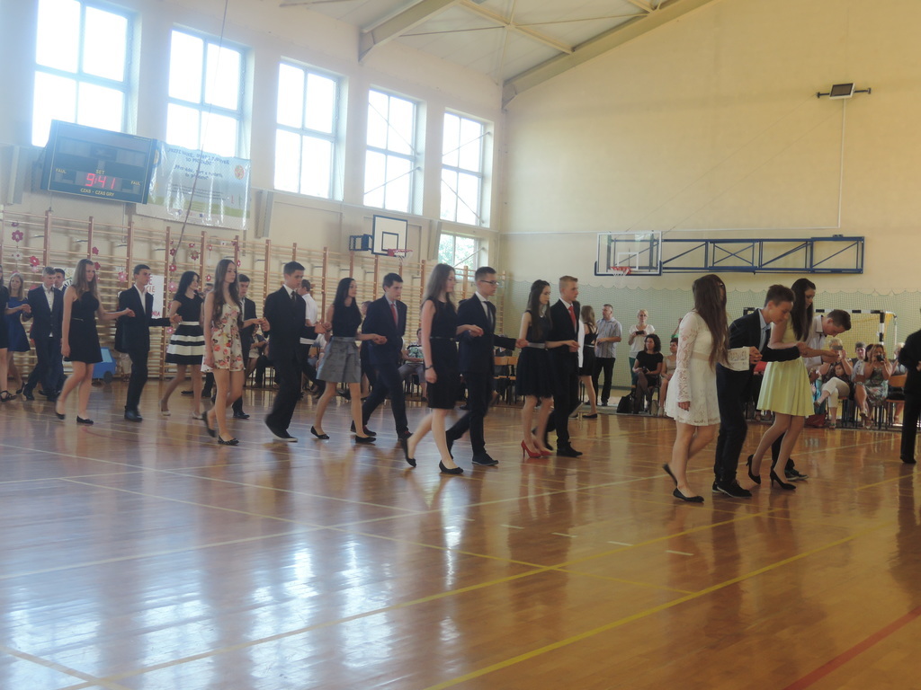 W piątek 24 czerwca oficjalnie zakończyliśmy kolejny rok szkolny 2015/2016. Uroczystości związane z pożegnaniem rocznika 2000, wręczeniem 17 świadectw z wyróżnieniem oraz licznych nagród książkowych odbywały się na sali gimnastycznej, gdzie na widowni oprócz uczniów, nauczycieli zasiedli: rodzice uczniów klas trzecich oraz wszyscy ci, którzy otrzymali listy gratulacyjne i podziękowania za bardzo dobre wyniki w nauce swojego dziecka czy zaangażowanie w prace na rzecz szkoły. Po części oficjalnej wszyscy obejrzeli program artystyczny w wykonaniu uczniów klas trzecich, po czym gimnazjaliści rozeszli się do swych klas. W tym roku mury naszego gimnazjum opuściło 48 absolwentów.