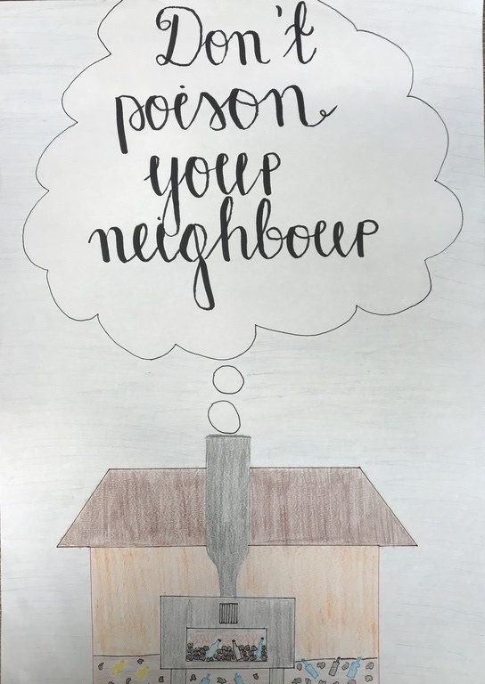 W lutym tego roku w naszej szkole uczniowie mogli wziąć udział w konkursie „Don’t Poison Your Neighbour!” Był to konkurs na plakat o tematyce ekologicznej z hasłem w języku angielskim. Plakaty i hasła miały zwracać uwagę na problem niskiej emisji – zanieczyszczenia powietrza na niewielkich wysokościach, powstałego m.in. w wyniku nieefektywnego spalania węgla (lub, co gorsza, śmieci) w domowych piecach centralnego ogrzewania. Niska emisja jest główną przyczyną powstawania smogu, a smog powoduje choroby układu krążenia i oddychania. Tematy te były poruszane na lekcjach języka angielskiego, po których uczniowie mogli wykorzystać poznane słownictwo do ułożenia haseł. Konkursowa komisja miała bardzo trudne zadanie, ponieważ musiała przeanalizować aż pięćdziesiąt otrzymanych prac. Pod uwagę wzięto zgodność z tematem, pomysłowość i oryginalność w ujęciu tematu, estetykę prac, poprawność ortograficzną napisu i pracochłonność. Jury przyznało pierwsze trzy miejsca następującym uczniom:
