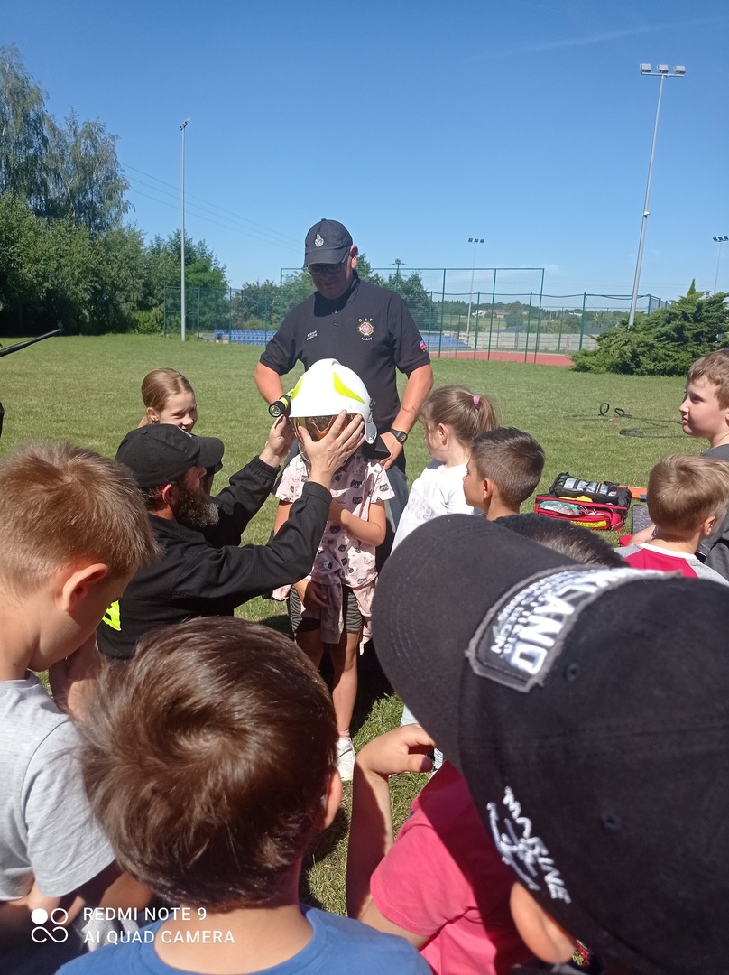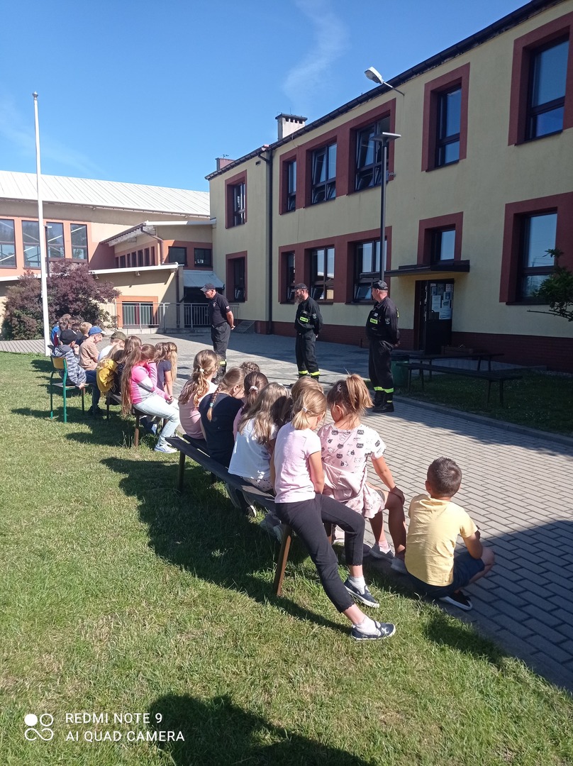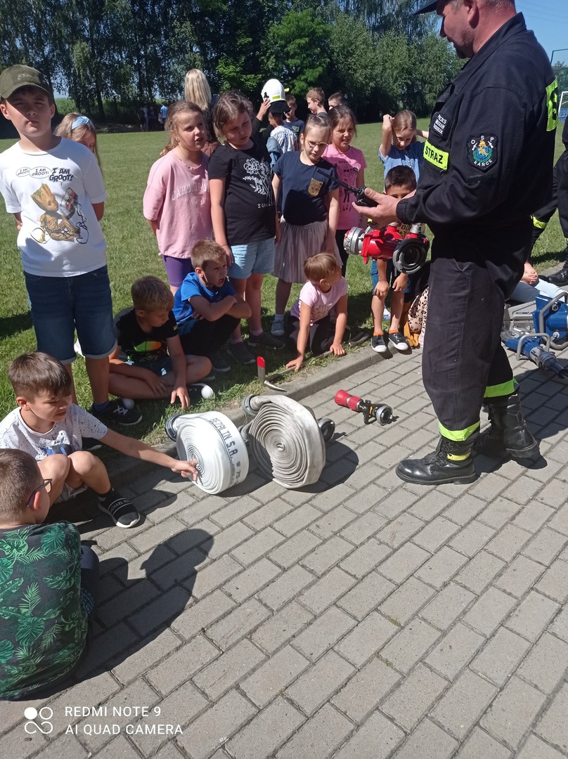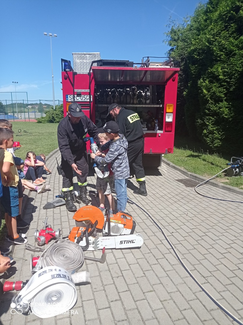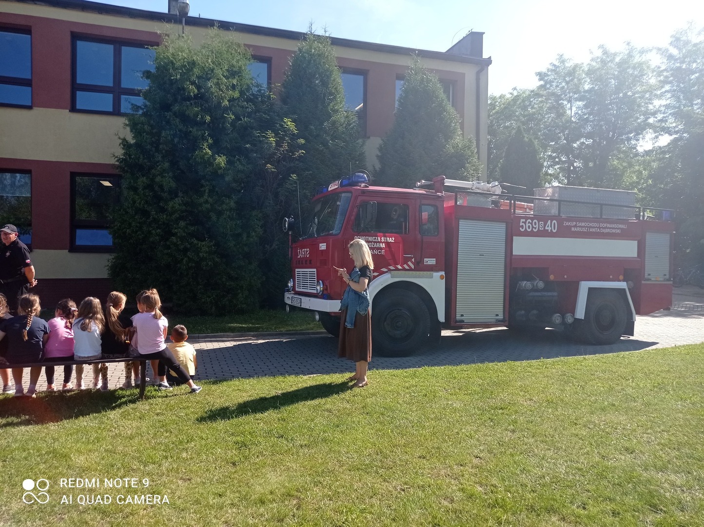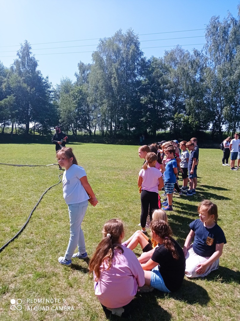 W dniu dzisiejszym uczniowie klas młodszych mieli okazję wziąć udział w niecodziennej lekcji. Wszystko dzięki przedstawicielom Ochotniczej Straży Pożarnej w Łańcach, którzy sprawili, że ten dzień był dla wszystkich naprawdę wyjątkowy. Podczas spotkania dzieci miały okazje poznać m.in. specyfikę pracy strażaka oraz dowiedzieć się wielu cennych wskazówek na temat bezpieczeństwa przeciwpożarowego. Cenną lekcją dla wszystkich uczestników okazała się pogadanka oraz praktyczne ćwiczenia z zakresu pierwszej pomocy. Panowie zaprezentowali również swój roboczy strój, który zakładają idąc do akcji, a chętni uczniowie mieli okazję do przymiarki elementów ekwipunku. Ciekawą częścią pokazu była również prezentacja wyposażenia wozu strażackiego w niezbędne sprzęty oraz narzędzia. Uczniowie mieli okazję zobaczyć na własne oczy, jak one wszystkie działają i do czego służą. Na zakończenie przyszła pora na prawdziwy gwóźdź programu, czyli naukę posługiwania się wężem strażackim i możliwość polania boiska wodą. Ale była zabawa! Dzisiaj każdy uczeń mógł wcielić się w rolę strażaka i przekonać się, że panowie wykonują naprawdę ciężką i niebezpieczną pracę. Jeszcze raz bardzo serdecznie dziękujemy za poświęcony czas, niezapomniane przeżycia oraz słodki podarunek!