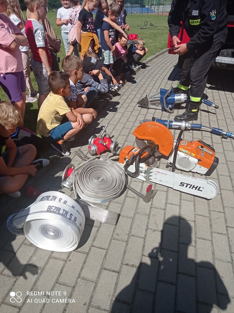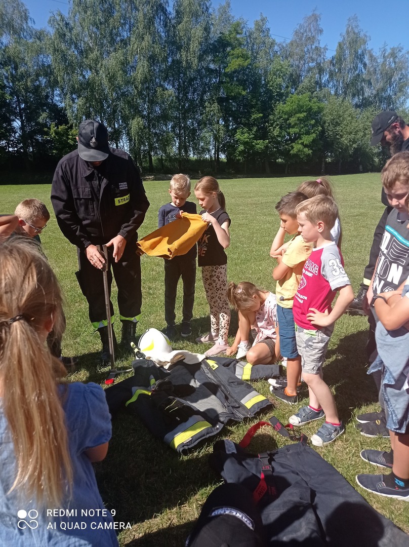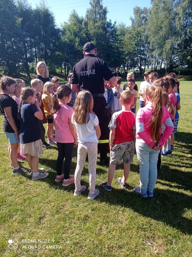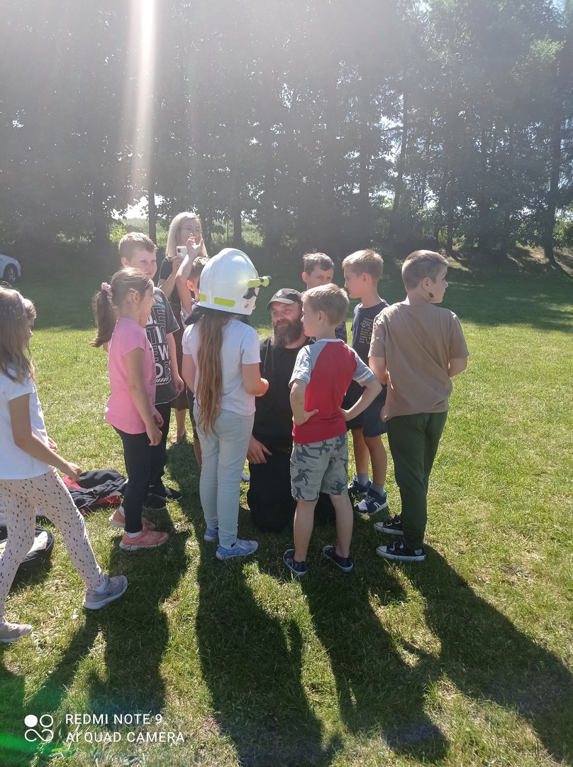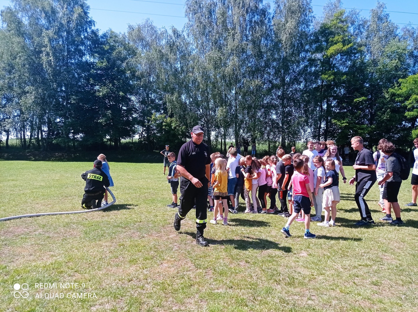 W dniu dzisiejszym uczniowie klas młodszych mieli okazję wziąć udział w niecodziennej lekcji. Wszystko dzięki przedstawicielom Ochotniczej Straży Pożarnej w Łańcach, którzy sprawili, że ten dzień był dla wszystkich naprawdę wyjątkowy. Podczas spotkania dzieci miały okazje poznać m.in. specyfikę pracy strażaka oraz dowiedzieć się wielu cennych wskazówek na temat bezpieczeństwa przeciwpożarowego. Cenną lekcją dla wszystkich uczestników okazała się pogadanka oraz praktyczne ćwiczenia z zakresu pierwszej pomocy. Panowie zaprezentowali również swój roboczy strój, który zakładają idąc do akcji, a chętni uczniowie mieli okazję do przymiarki elementów ekwipunku. Ciekawą częścią pokazu była również prezentacja wyposażenia wozu strażackiego w niezbędne sprzęty oraz narzędzia. Uczniowie mieli okazję zobaczyć na własne oczy, jak one wszystkie działają i do czego służą. Na zakończenie przyszła pora na prawdziwy gwóźdź programu, czyli naukę posługiwania się wężem strażackim i możliwość polania boiska wodą. Ale była zabawa! Dzisiaj każdy uczeń mógł wcielić się w rolę strażaka i przekonać się, że panowie wykonują naprawdę ciężką i niebezpieczną pracę. Jeszcze raz bardzo serdecznie dziękujemy za poświęcony czas, niezapomniane przeżycia oraz słodki podarunek!
