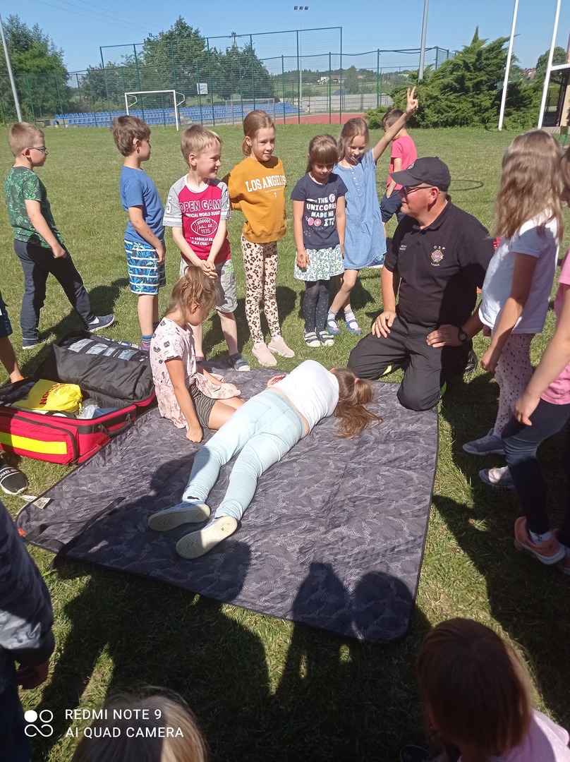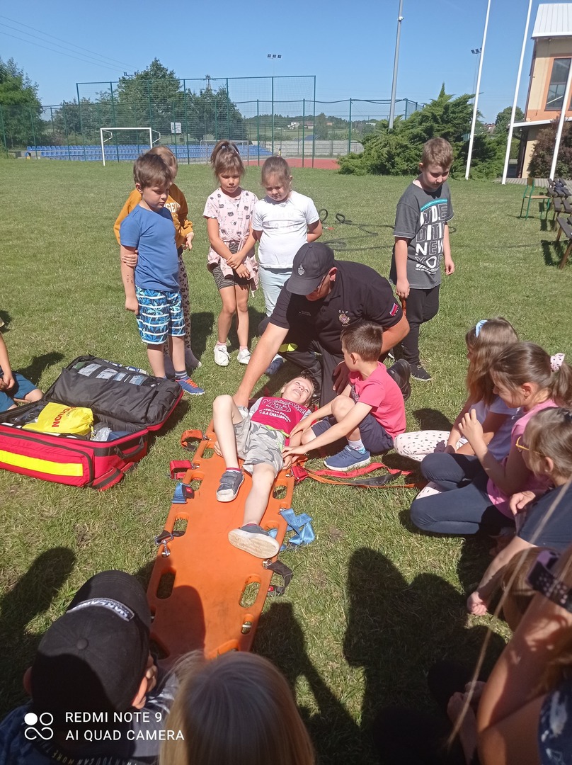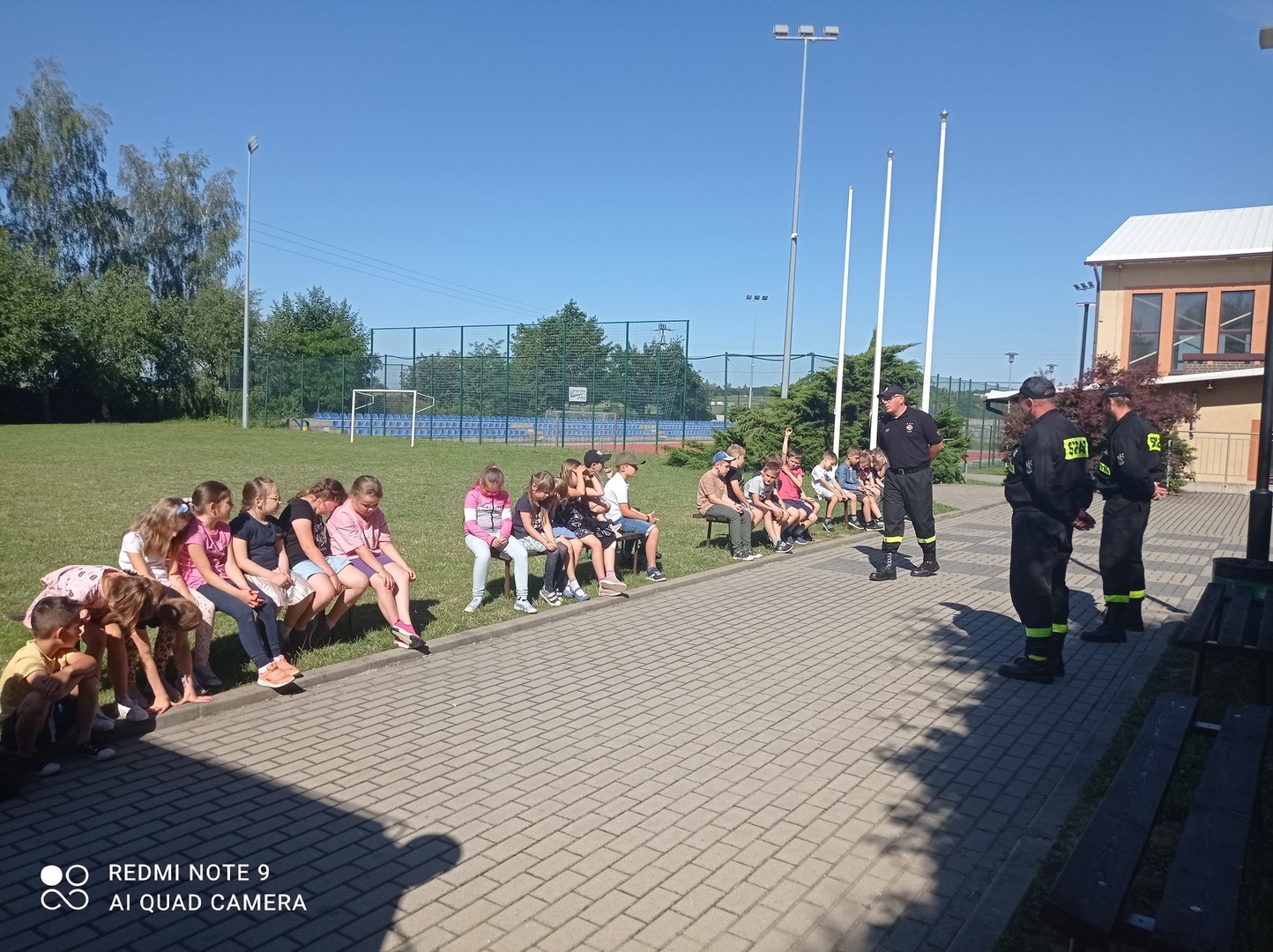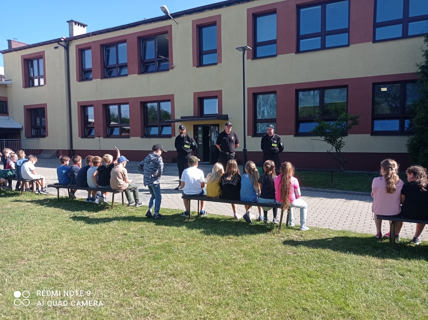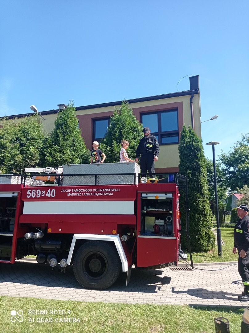 W dniu dzisiejszym uczniowie klas młodszych mieli okazję wziąć udział w niecodziennej lekcji. Wszystko dzięki przedstawicielom Ochotniczej Straży Pożarnej w Łańcach, którzy sprawili, że ten dzień był dla wszystkich naprawdę wyjątkowy. Podczas spotkania dzieci miały okazje poznać m.in. specyfikę pracy strażaka oraz dowiedzieć się wielu cennych wskazówek na temat bezpieczeństwa przeciwpożarowego. Cenną lekcją dla wszystkich uczestników okazała się pogadanka oraz praktyczne ćwiczenia z zakresu pierwszej pomocy. Panowie zaprezentowali również swój roboczy strój, który zakładają idąc do akcji, a chętni uczniowie mieli okazję do przymiarki elementów ekwipunku. Ciekawą częścią pokazu była również prezentacja wyposażenia wozu strażackiego w niezbędne sprzęty oraz narzędzia. Uczniowie mieli okazję zobaczyć na własne oczy, jak one wszystkie działają i do czego służą. Na zakończenie przyszła pora na prawdziwy gwóźdź programu, czyli naukę posługiwania się wężem strażackim i możliwość polania boiska wodą. Ale była zabawa! Dzisiaj każdy uczeń mógł wcielić się w rolę strażaka i przekonać się, że panowie wykonują naprawdę ciężką i niebezpieczną pracę. Jeszcze raz bardzo serdecznie dziękujemy za poświęcony czas, niezapomniane przeżycia oraz słodki podarunek!