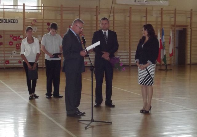Za wieloletnią pracę, trud włożony w wychowanie i edukację wielu pokoleń młodzieży tego dnia dziękowali gorąco panu Janowi Bugdolowi nie tylko uczniowie, grono pedagogiczne, pracownicy administracji i obsługi, ale także przedstawiciele władz gminy: wójt Grzegorz Niestrój i Michał Krasek. Obowiązki nowego dyrektora powierzono Jolancie Błaszczok, która w maju br. wygrała konkurs na to stanowisko.