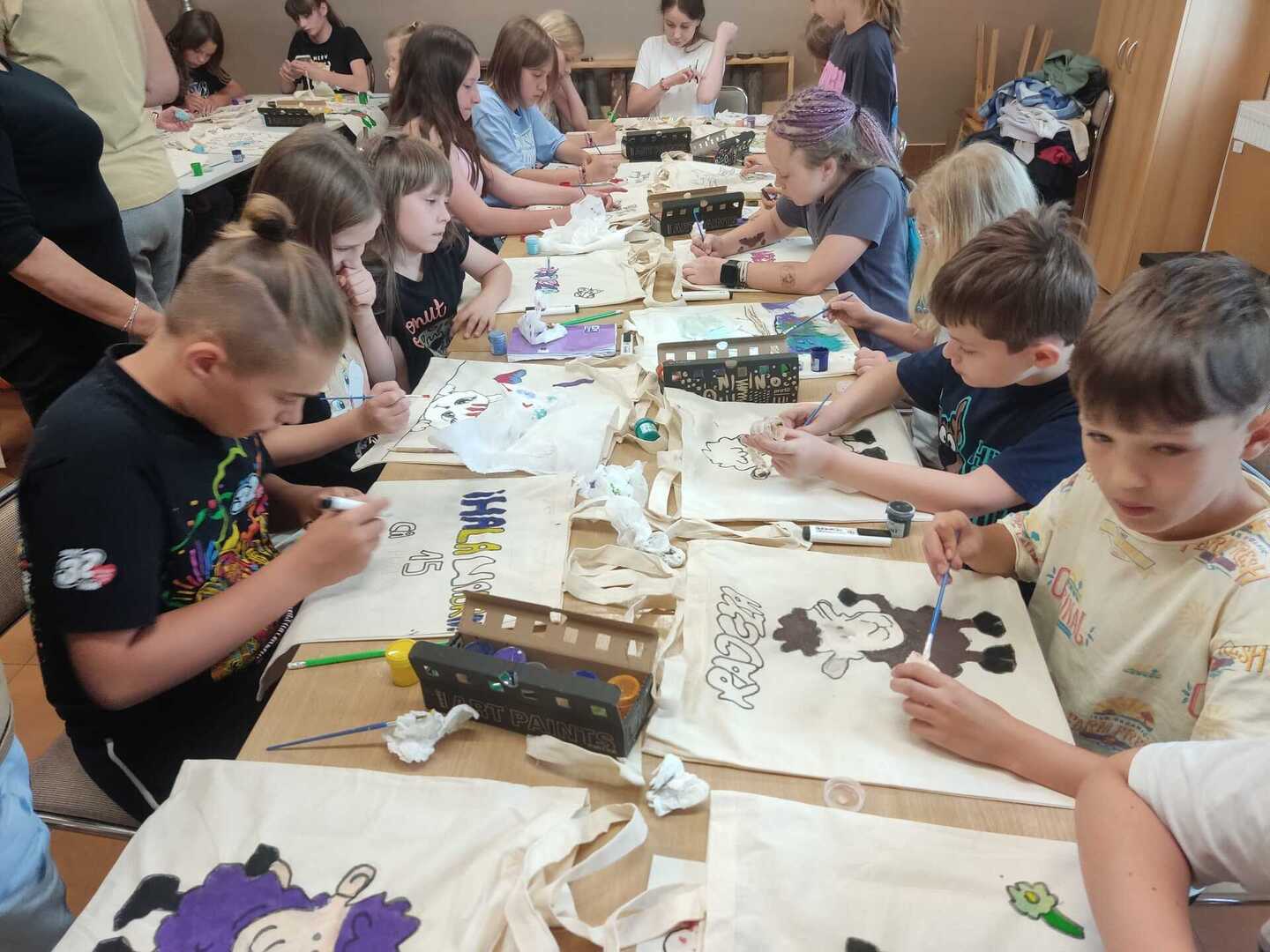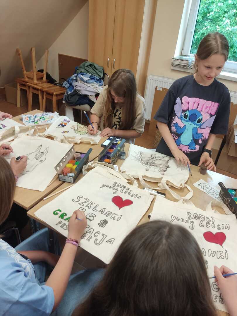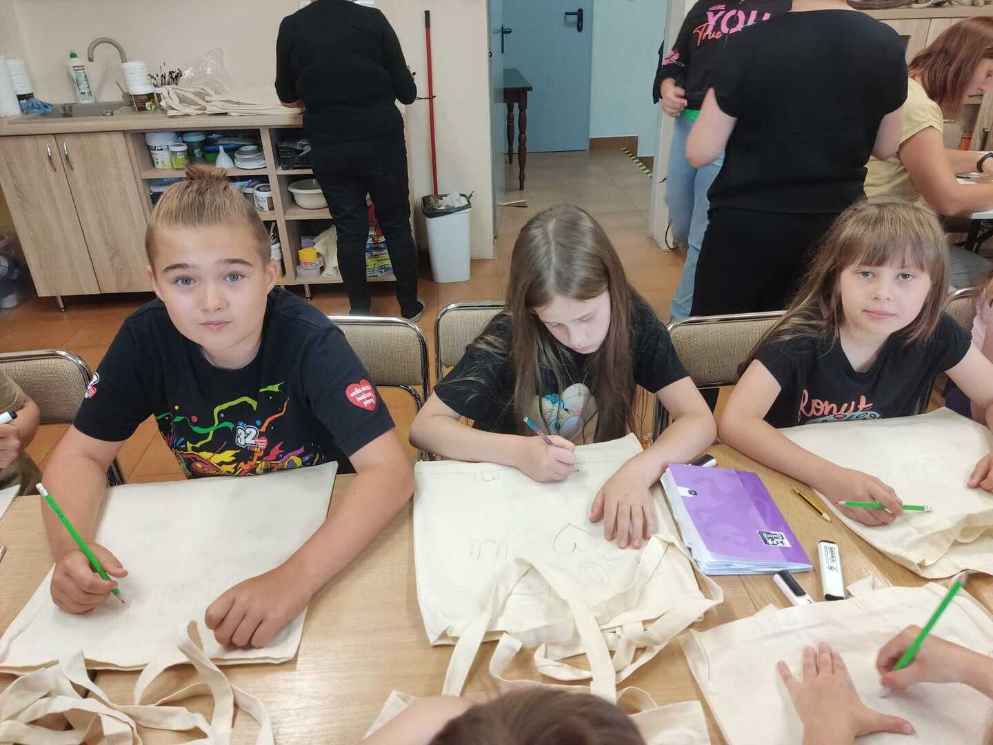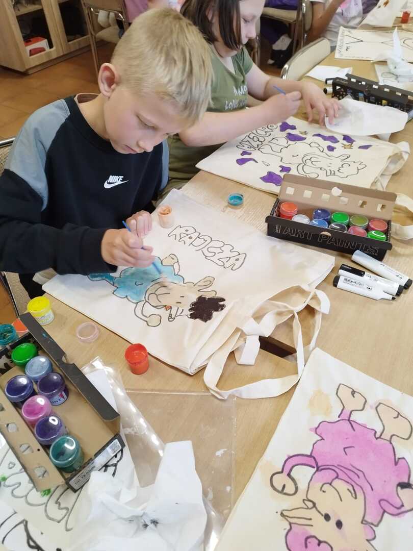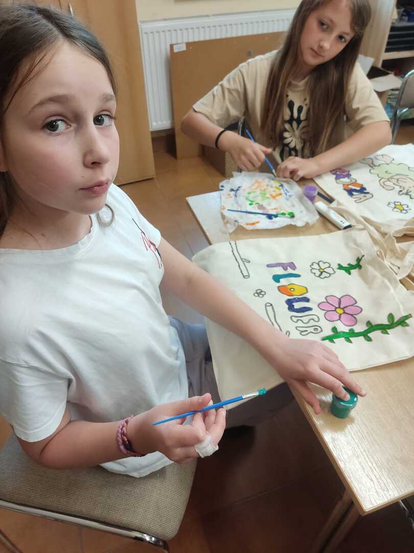 Drugim punktem programu były warsztaty malowania bawełnianych toreb na zakupy. To świetna okazja do rozwijania kreatywności i jednoczesnego promowania ekologicznych rozwiązań. Każdy uczestnik otrzymał bawełnianą torbę oraz zestaw farb, markery i szablony, z których można skorzystać. Podczas warsztatów uczniowie mogą wyrazić swoją indywidualność, tworząc oryginalne i praktyczne dzieła sztuki. Malowanie toreb to także świetna forma relaksu i odstresowania, a gotowe torby będą praktyczną pamiątką z wyjazdu.