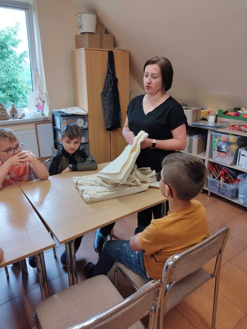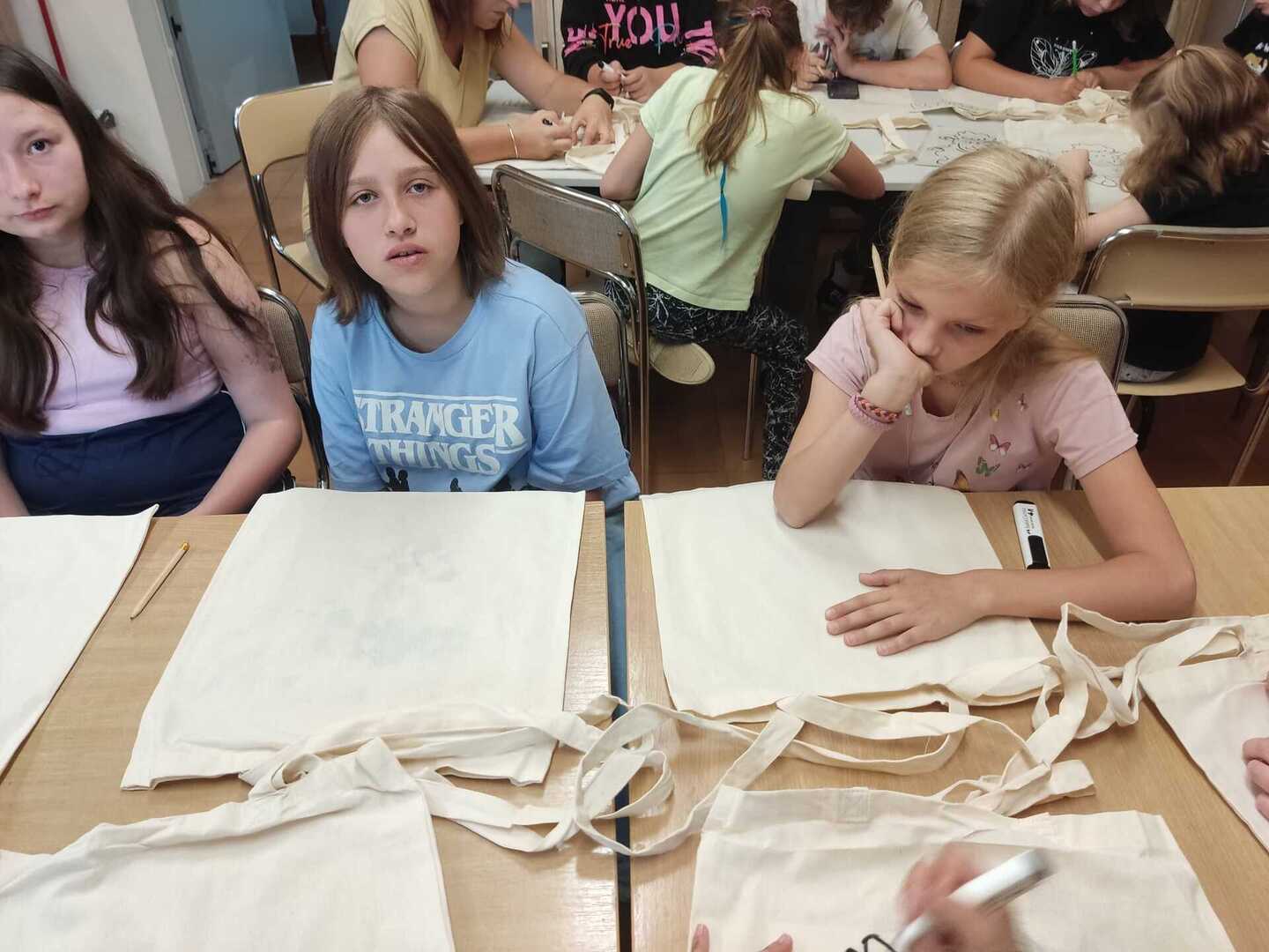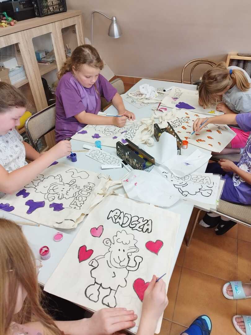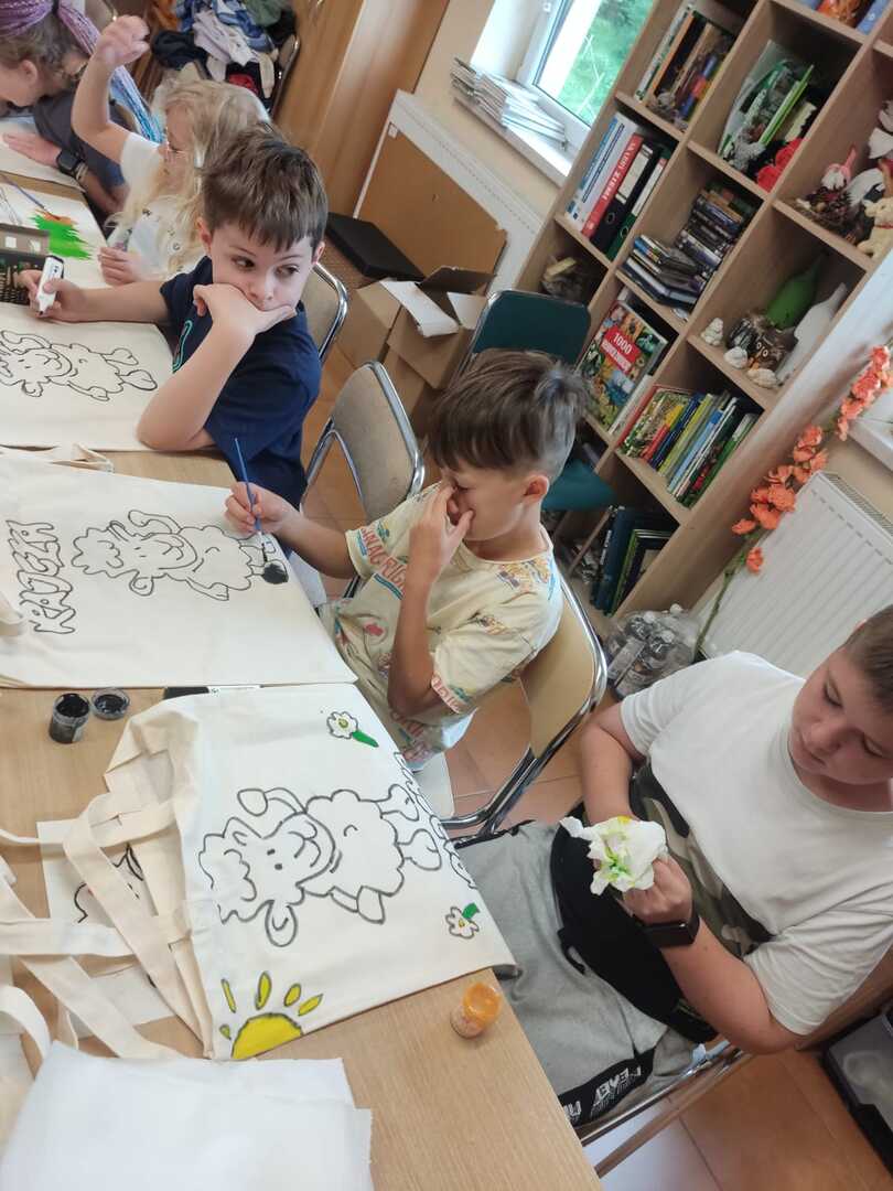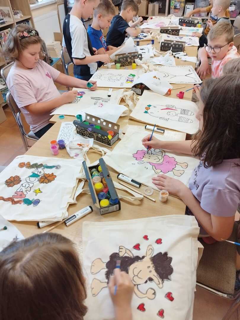 Drugim punktem programu były warsztaty malowania bawełnianych toreb na zakupy. To świetna okazja do rozwijania kreatywności i jednoczesnego promowania ekologicznych rozwiązań. Każdy uczestnik otrzymał bawełnianą torbę oraz zestaw farb, markery i szablony, z których można skorzystać. Podczas warsztatów uczniowie mogą wyrazić swoją indywidualność, tworząc oryginalne i praktyczne dzieła sztuki. Malowanie toreb to także świetna forma relaksu i odstresowania, a gotowe torby będą praktyczną pamiątką z wyjazdu.