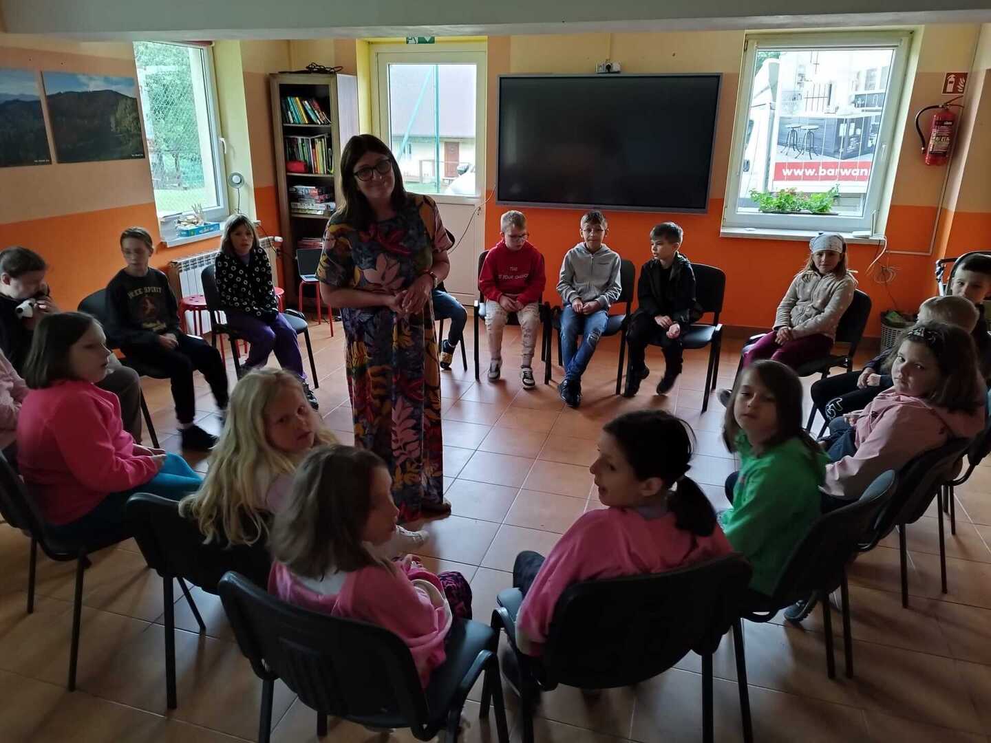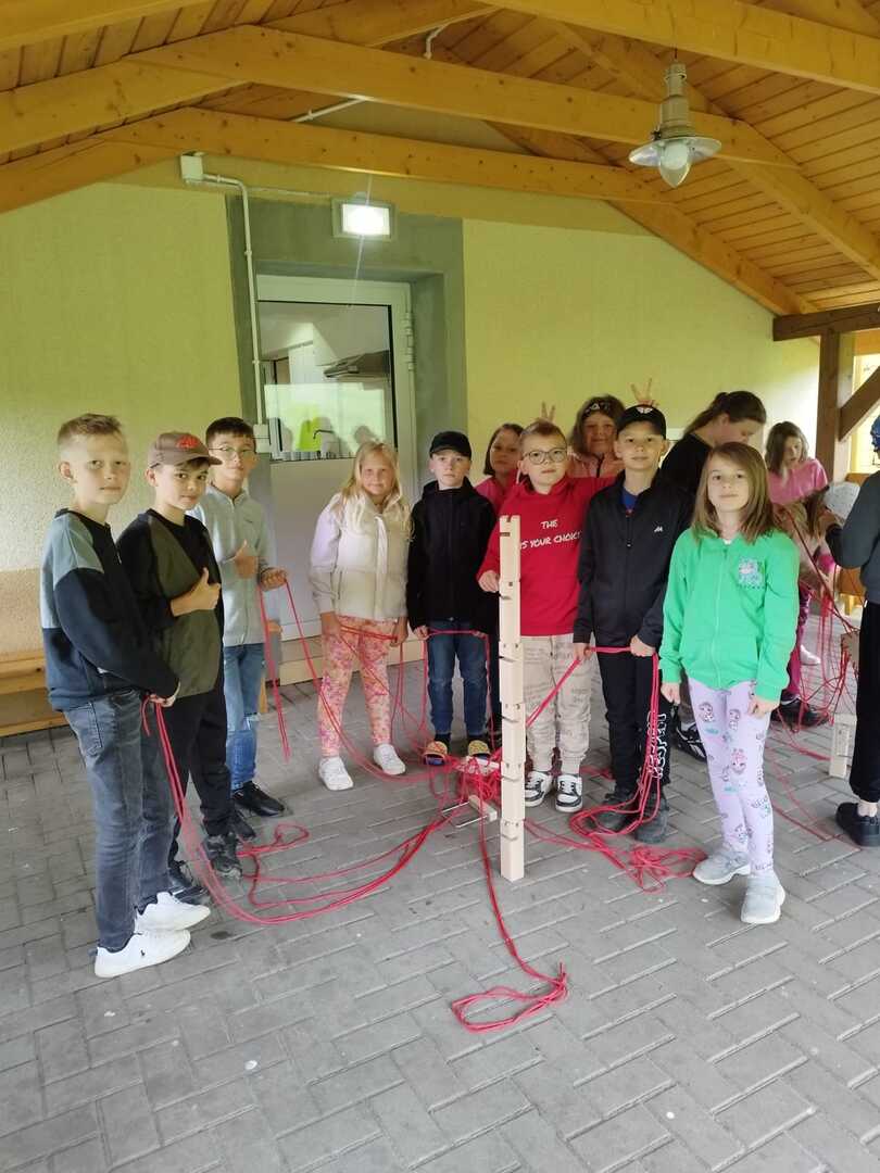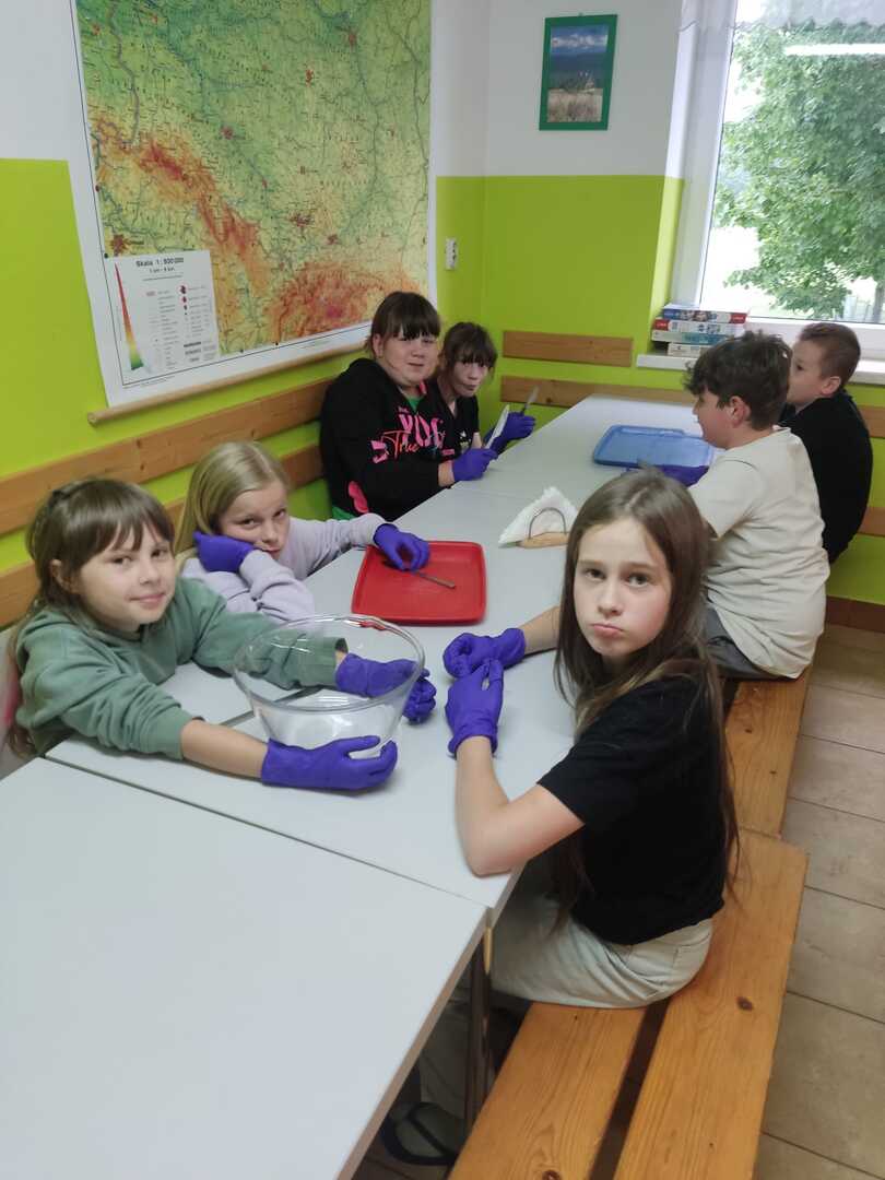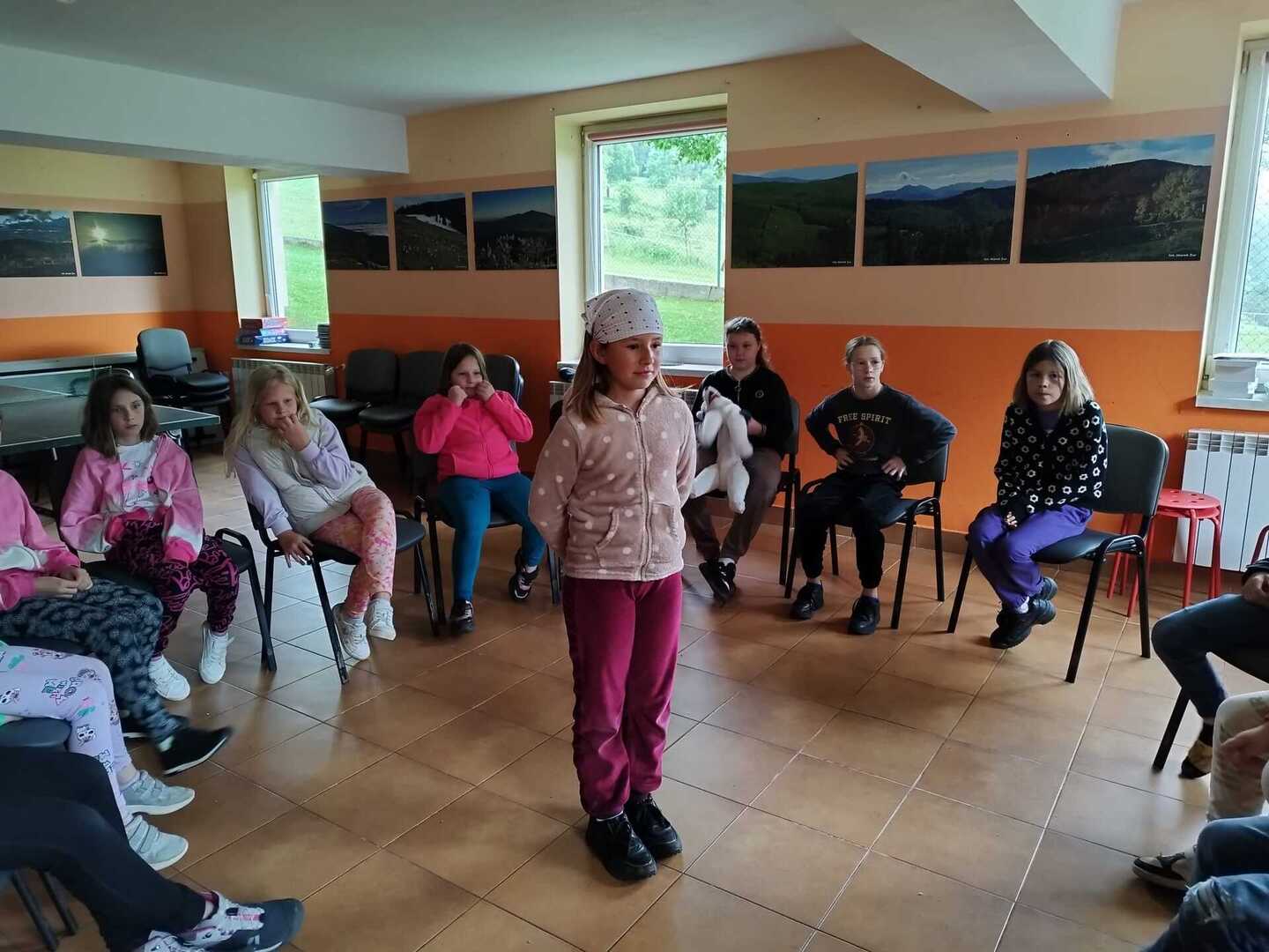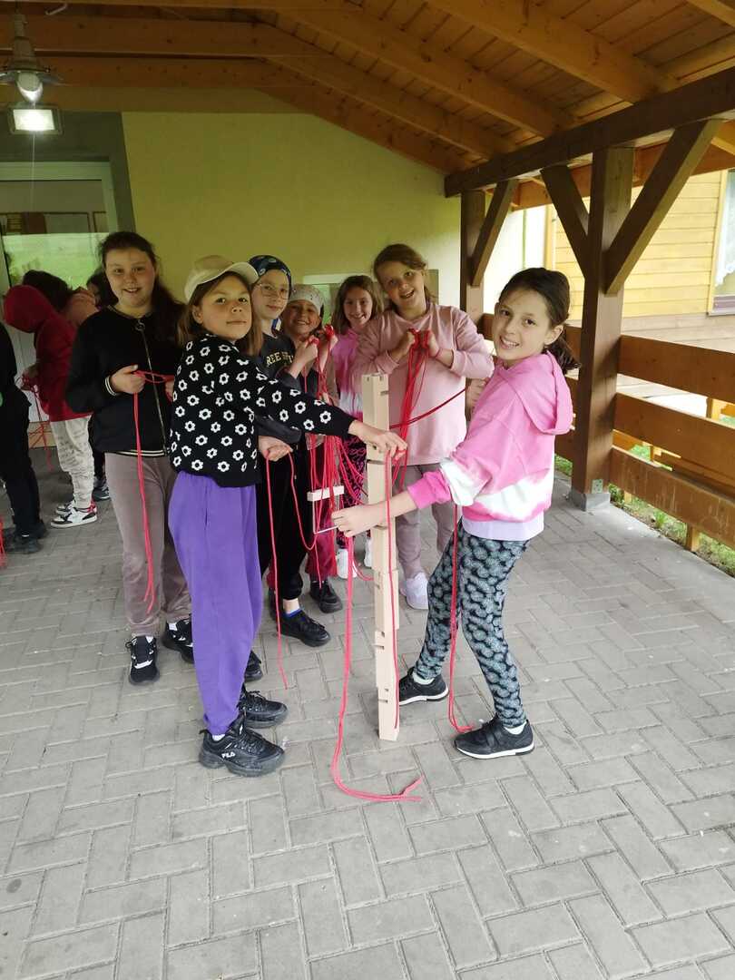 Po degustacji sałatki, ze względu na warunki pogodowe, uczniowie spotkali się z leśnikiem na terenie ośrodka, który jako jako ekspert w swojej dziedzinie, opowiedział o różnych gatunkach drzew, roślinach i zwierzętach zamieszkujących lasy.