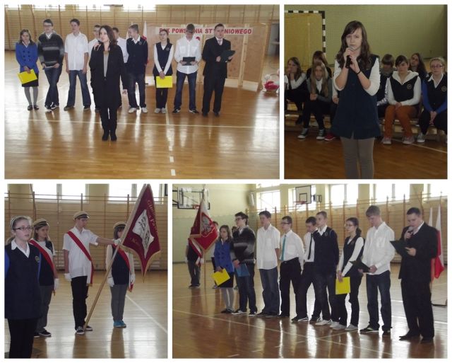 22 stycznia uczniowie Gimnazjum im. Jana Pawła II przygotowali akademię, aby uczcić 150-tą rocznicę wybuchu Powstania Styczniowego. Już na początku nowego roku, wykonali gazetkę na górnym korytarzu, zamieszczając na niej, między innymi, sztandar Drużyny Harcerskiej im. Romualda Traugutta, działającej przy Szkole Podstawowej im. Arki Bożka, a nadany jej w 1976 roku. Uczniowie wszystkich klas rysowali ilustracje na temat Powstania Styczniowego. Najlepsze prace umieszczono również na tej gazetce. Klasa III b z wychowawcą Bartoszem Franicą przedstawiła scenariusz poświęcony tej wielkiej rocznicy. Chórek szkolny pod opieką pani Barbary Stawinogi wykonał pieśni patriotyczne: „Boże coś Polskę”, „Warszawiankę”, „Rotę” oraz „Sztandar”. Na keyboardzie przygrywał Szymon Rusok (kl. III a), śpiewały uczennice kl. I b Sandra Wieczorek i Jessica Gaida. Prezentację multimedialną opracował Radosław Krasek (kl. I b). Elementy scenografii, między innymi, brzozowy krzyż, wykonał Mariusz Kajstra (kl. III a), kotwicę Adam Pietras (kl. I a). Hasło literowe wykonali uczniowie klasy II a. Za sprzęt nagłaśniający odpowiedzialni byli : Dawid Kuśmierz i Wojtek Gembalczyk z kl. II a, zdjęcia Natalia Pytlik( kl. III a). Nad całością czuwała pani dyrektor Jolanta Błaszczok oraz Krystyna Kura.