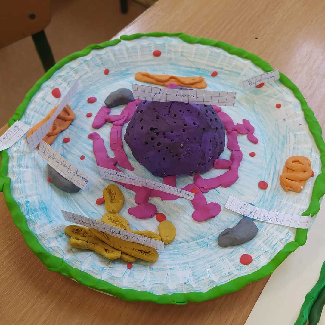 Efekty ich pracy są naprawdę imponujące - powstały różnorodne i pomysłowe modele, wykonane z wielu materiałów, takich jak karton, plastelina czy styropian. Uczniowie wykazali się ogromną kreatywnością – pojawił się nawet „jadalny” model komórki, wykonany z galaretek i owoców!