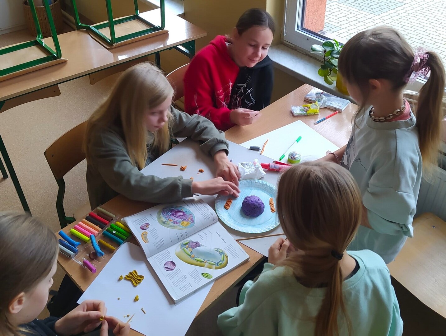 Uczniowie klasy piątyej, podczas zajęć z biologii, zgłębiali budowę komórki roślinnej i zwierzęcej. Omówili szczegółowo strukturę oraz funkcje poszczególnych elementów komórkowych. Aby lepiej przyswoić te zagadnienia, na zajęciach kreatywnych stworzyli przestrzenne modele komórek.