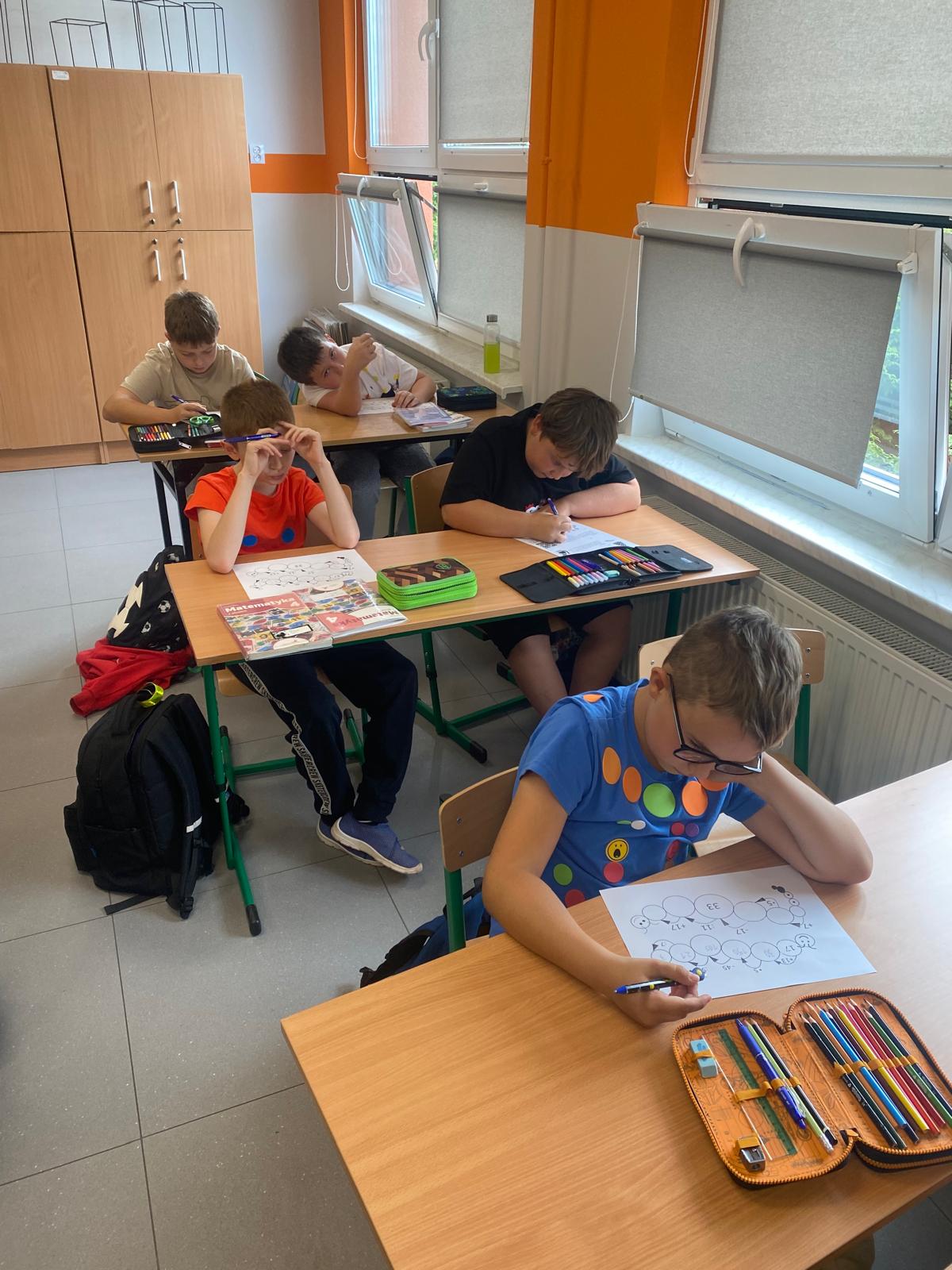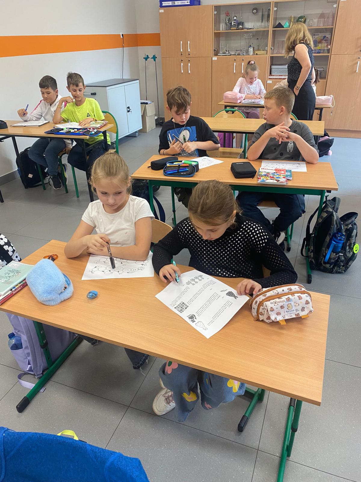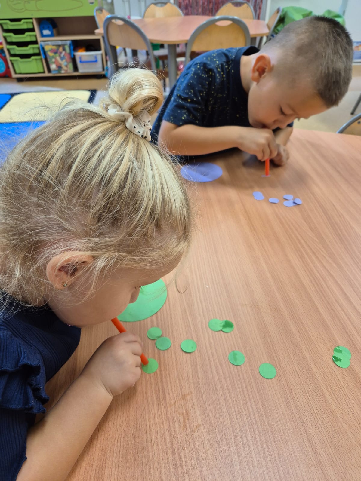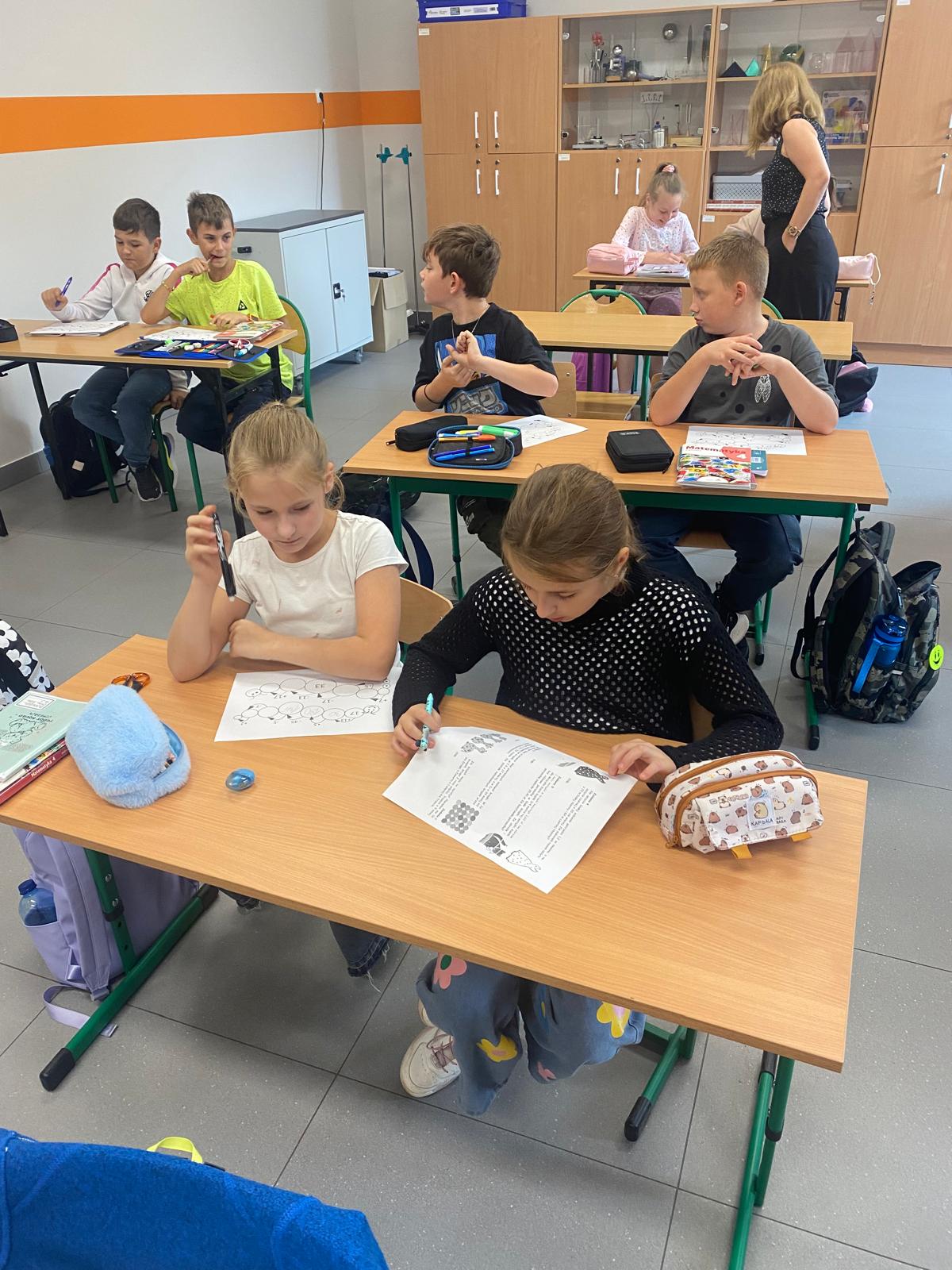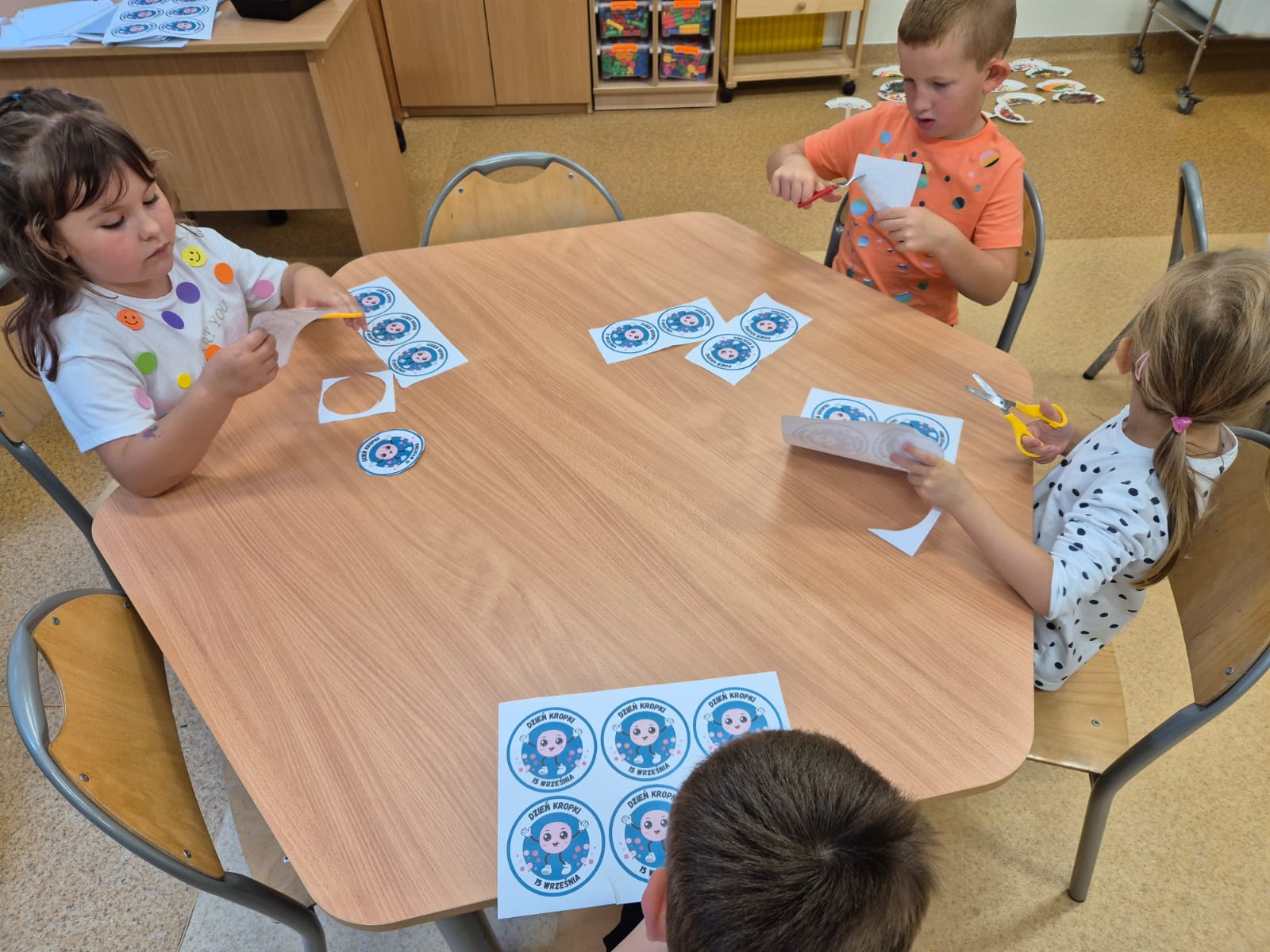 Podczas zajęć uczniowie oraz przedszkolaki mieli okazję odkrywać swoje mocne strony oraz zastanowić się, w czym są dobrzy i co sprawia im radość. Dzieci z dużym zaangażowaniem brały udział w zabawach, które rozwijały ich wyobraźnię i twórcze myślenie. Nie brakowało też zadań plastycznych – na kartkach pojawiały się kolorowe kropki, z których powstawały niezwykłe obrazy i fantazyjne kompozycje.