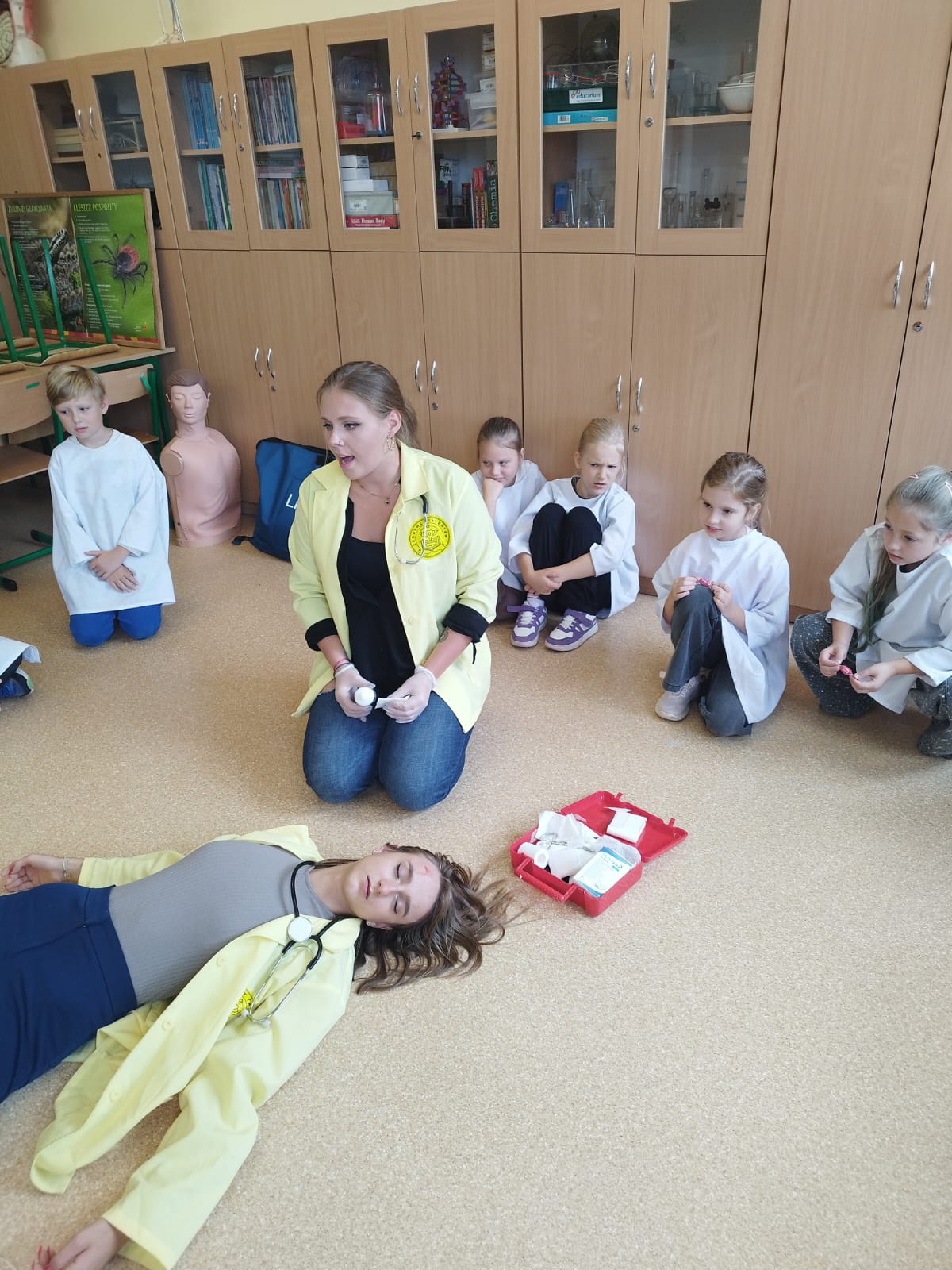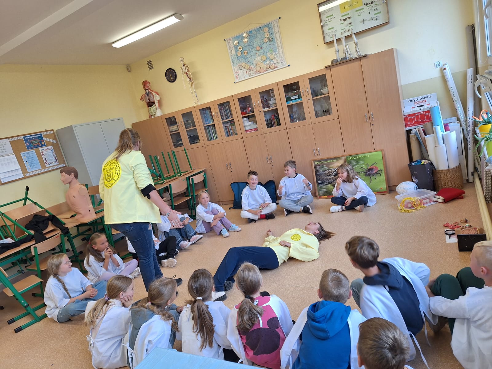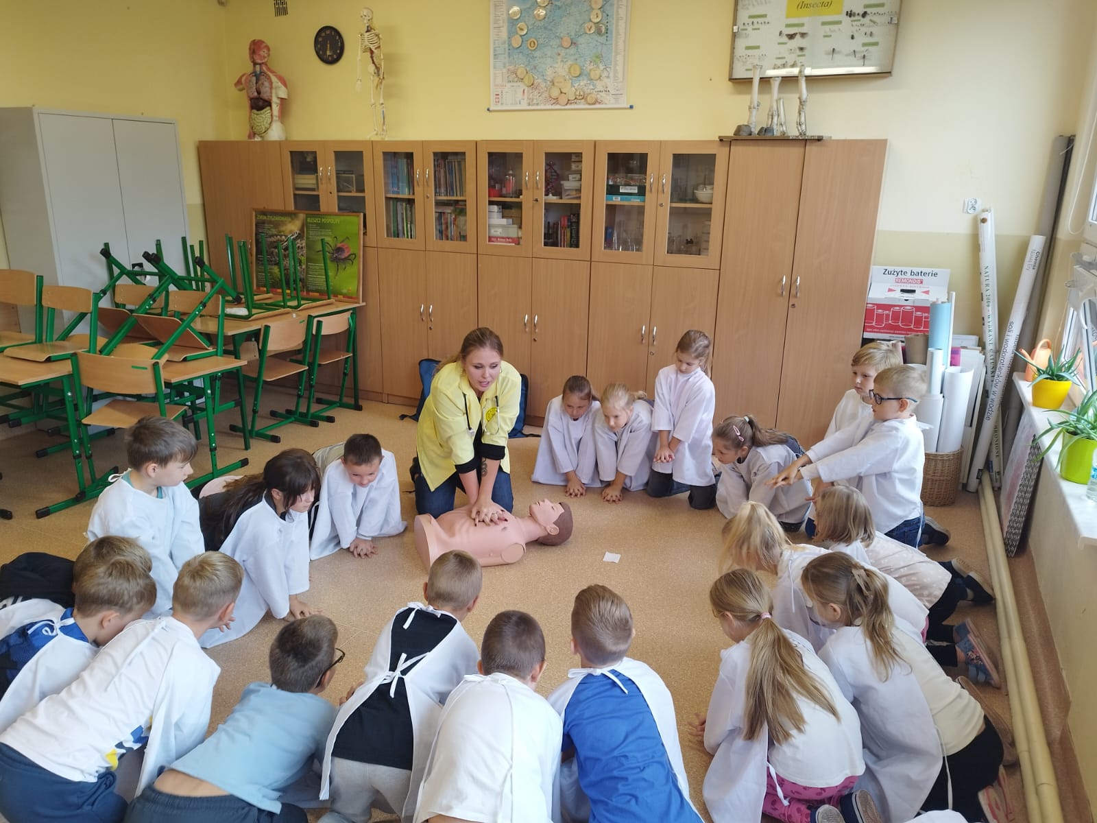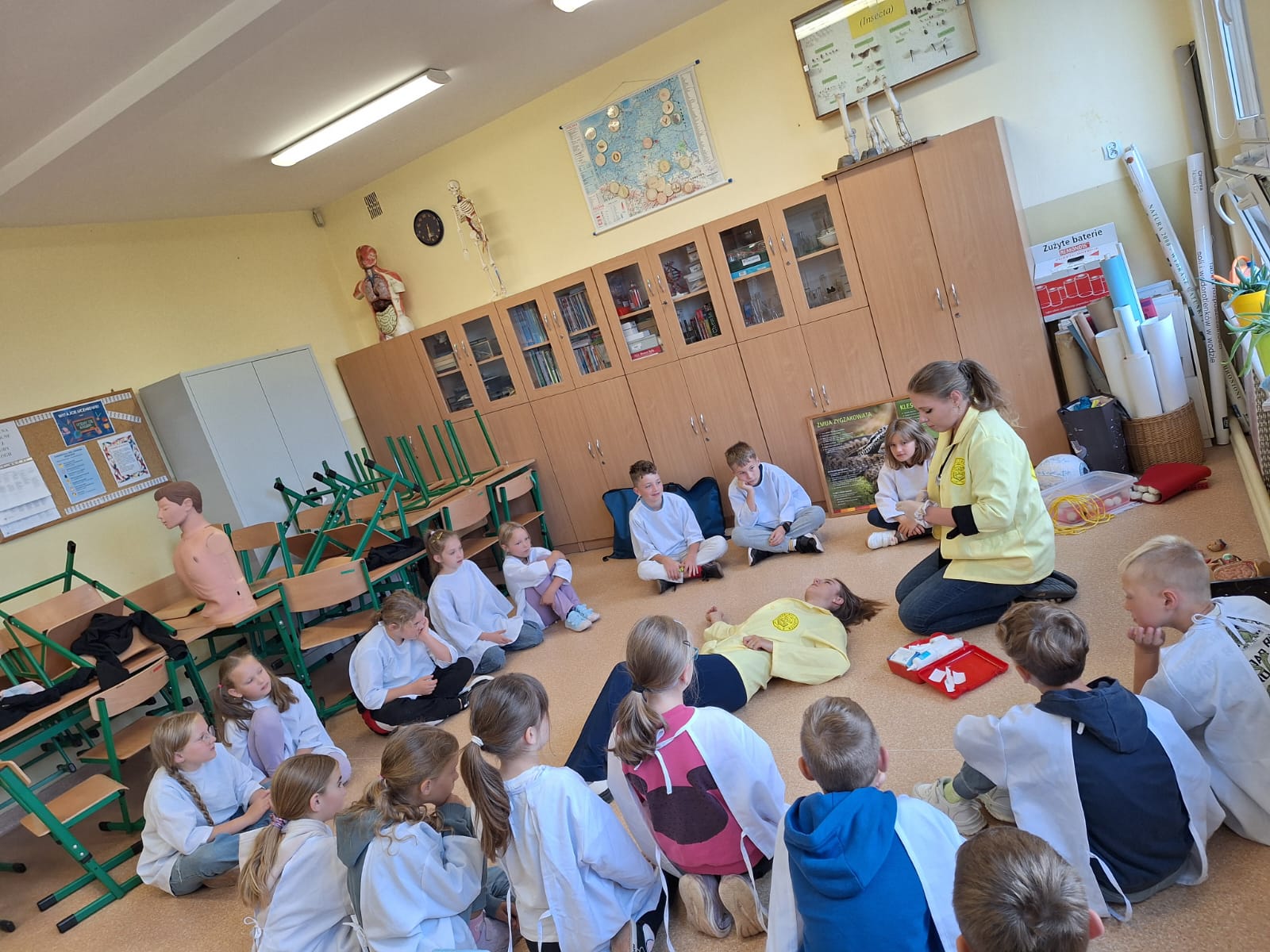 Każde dziecko brało czynny udział w zajęciach – nie było tu miejsca na nudę! Uczniowie uczyli się podstaw udzielania pierwszej pomocy, wykonywali resuscytację krążeniowo-oddechową (RKO) oraz poznali wiele ciekawych informacji dotyczących budowy i funkcjonowania ciała człowieka.
