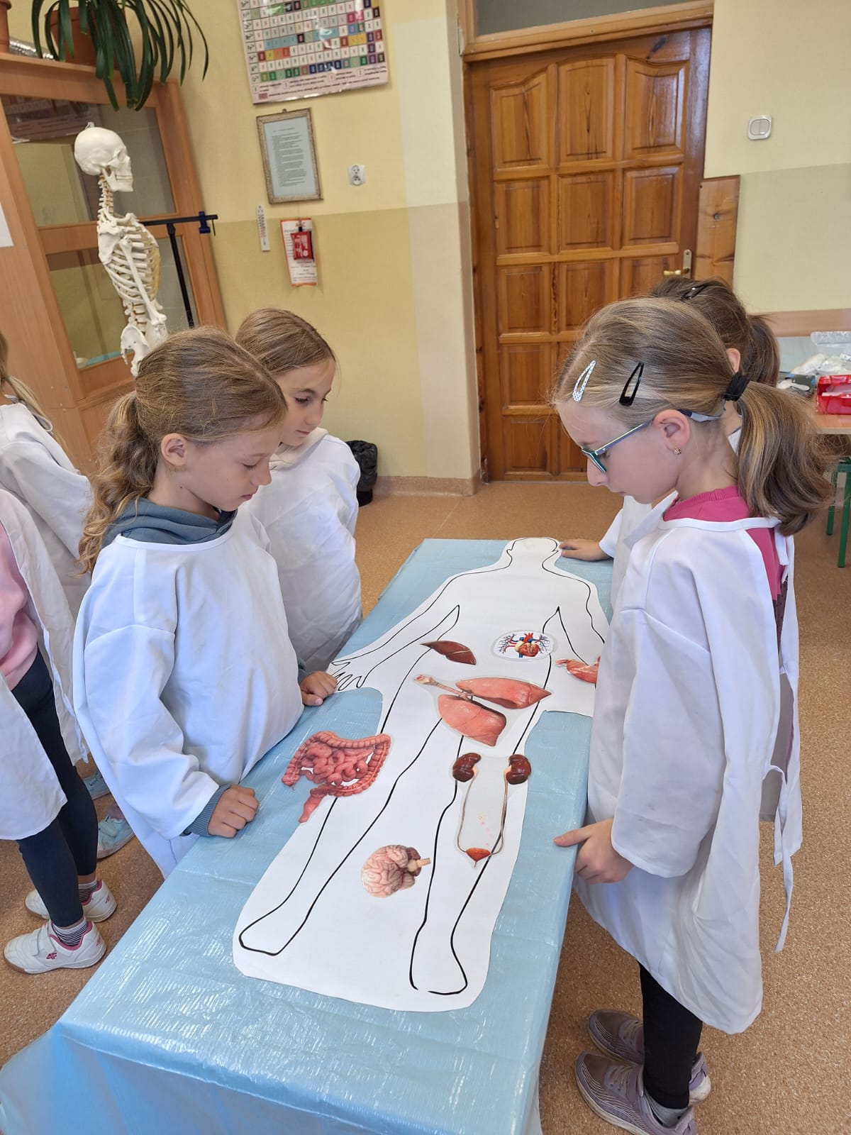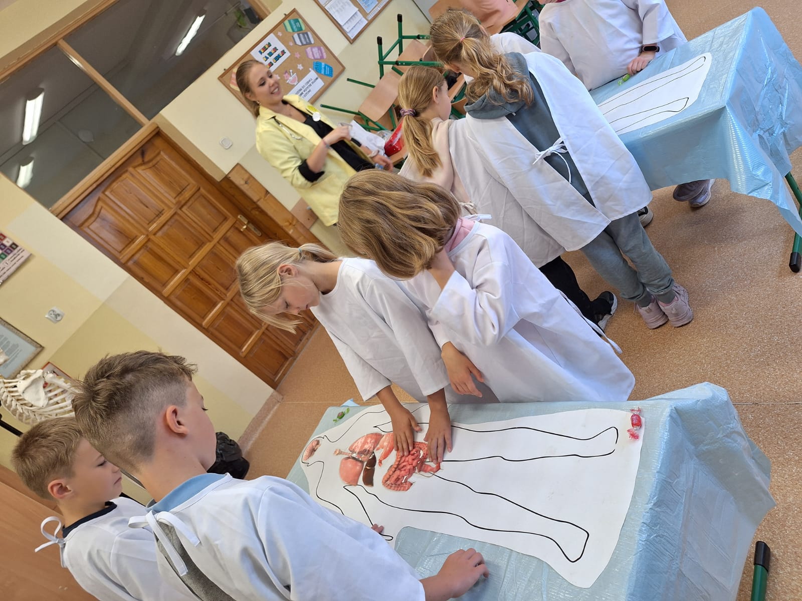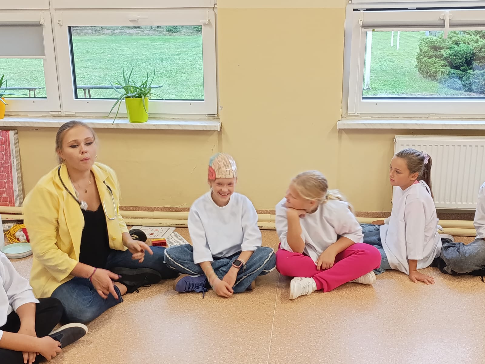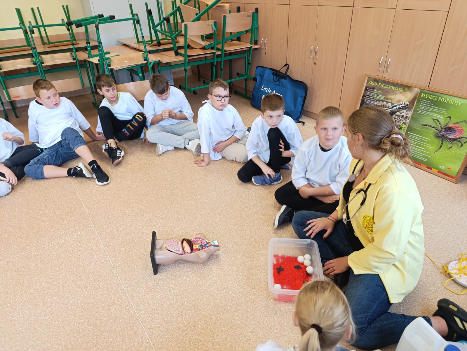 Każde dziecko brało czynny udział w zajęciach – nie było tu miejsca na nudę! Uczniowie uczyli się podstaw udzielania pierwszej pomocy, wykonywali resuscytację krążeniowo-oddechową (RKO) oraz poznali wiele ciekawych informacji dotyczących budowy i funkcjonowania ciała człowieka.