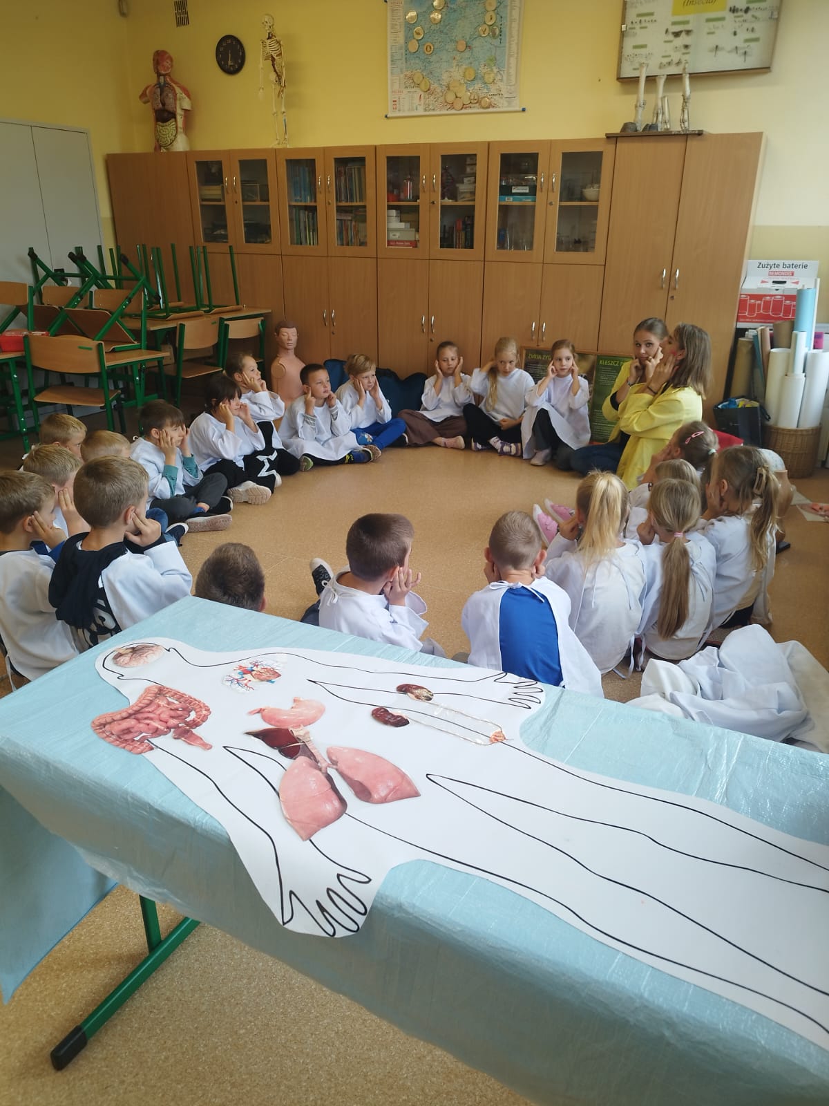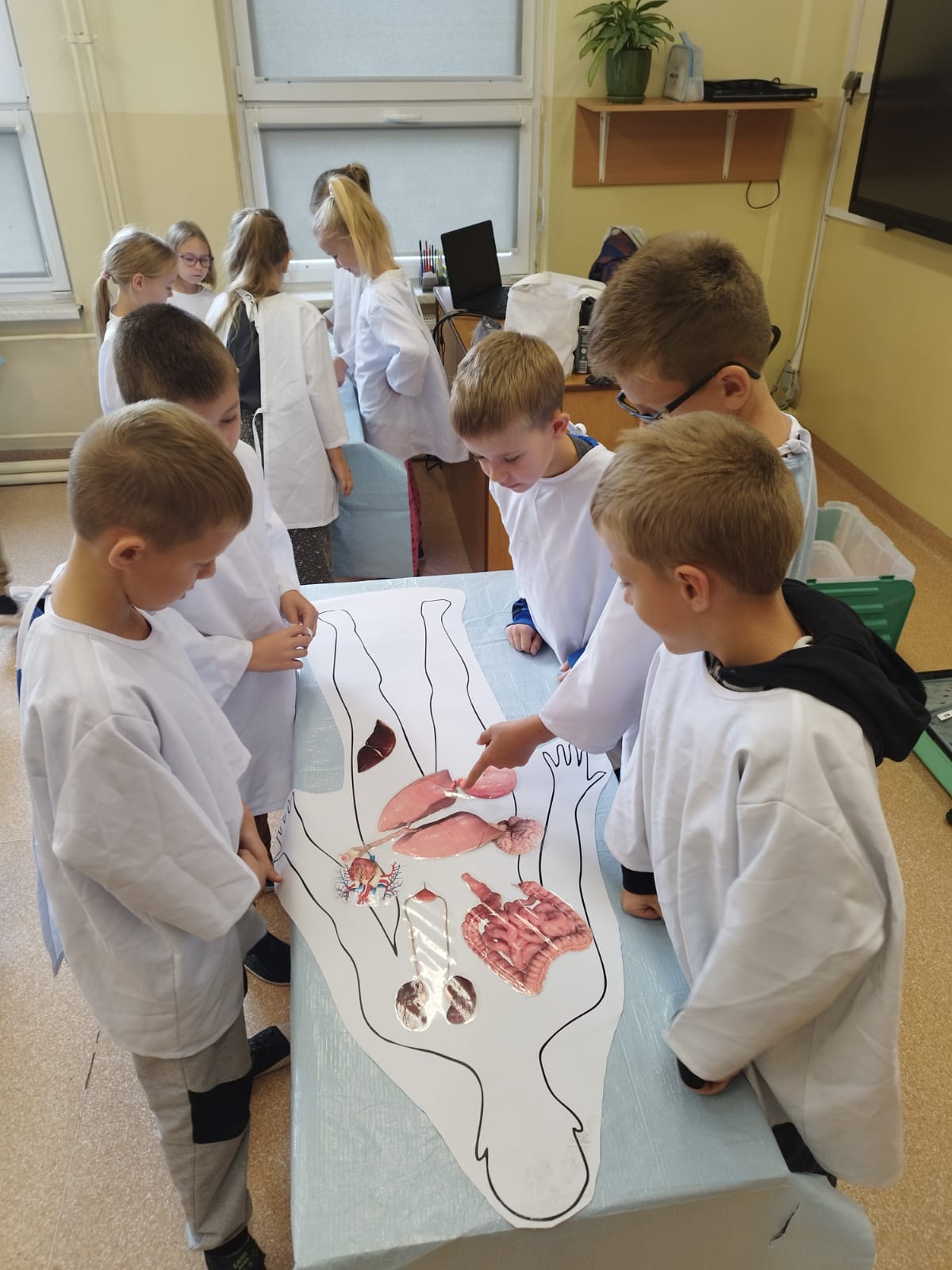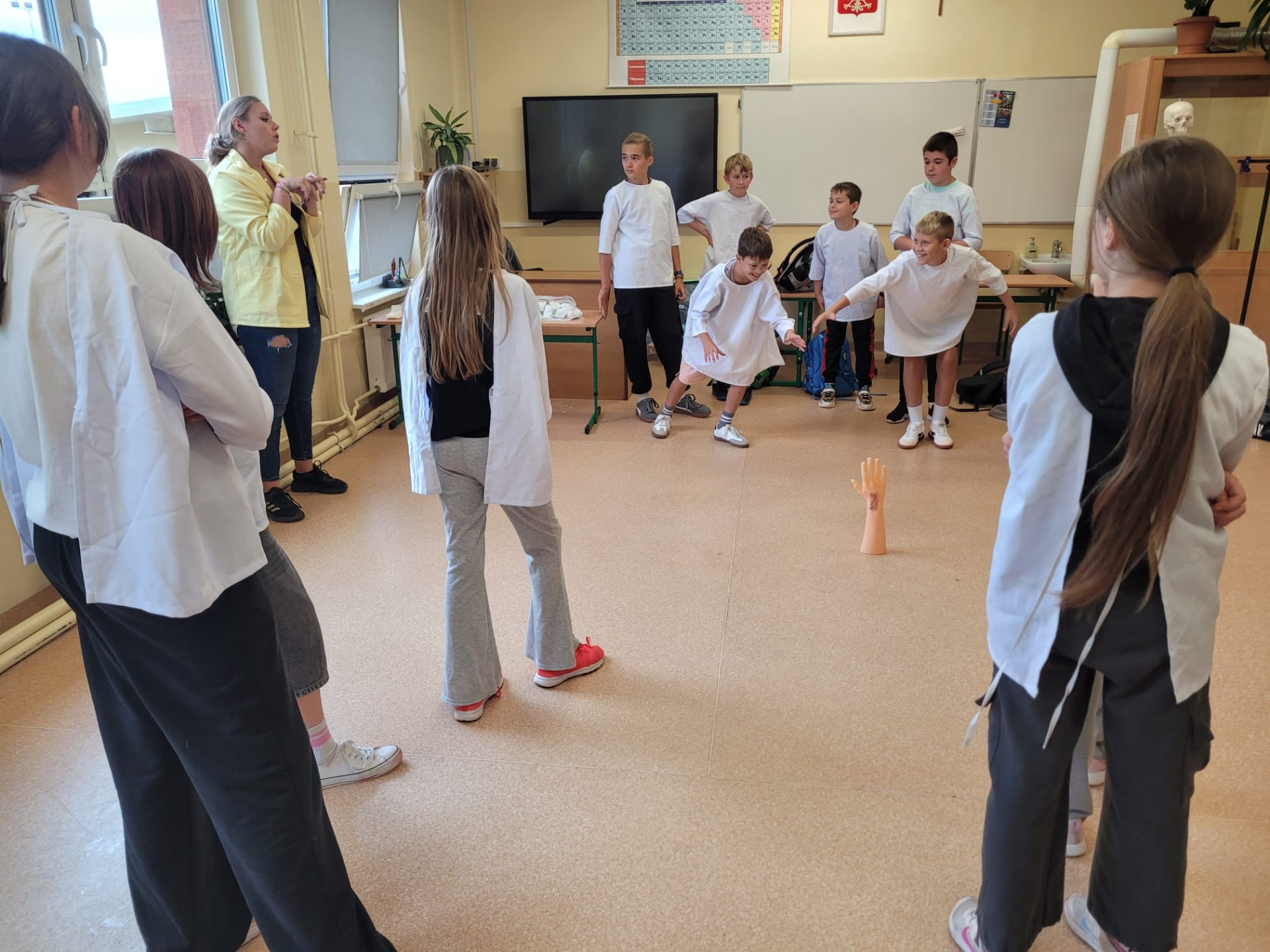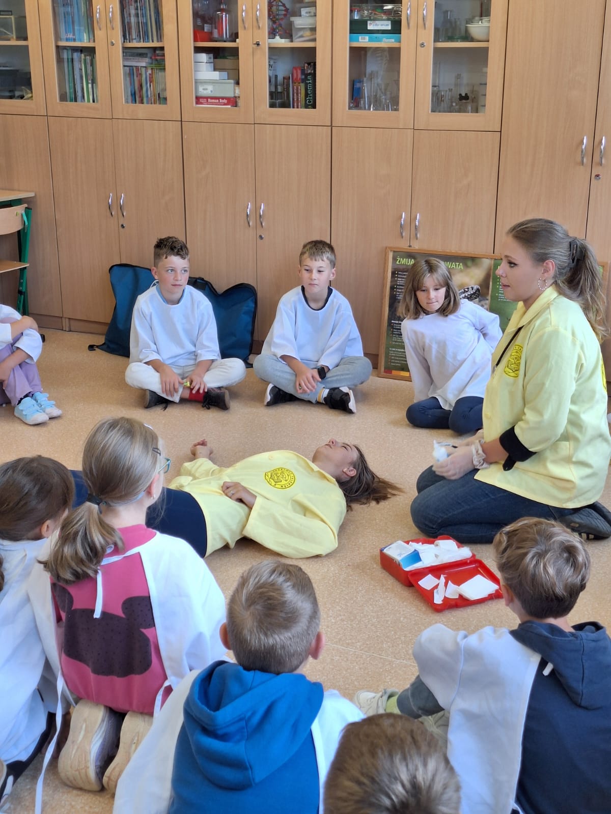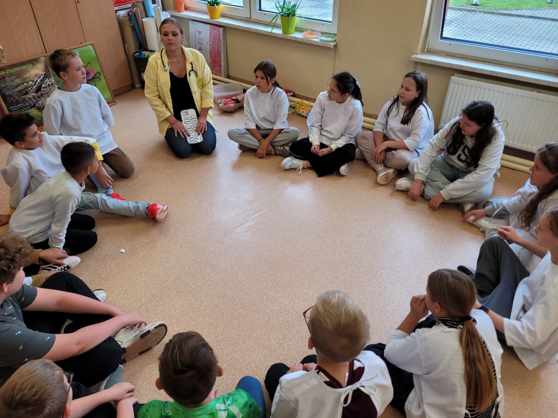 Każde dziecko brało czynny udział w zajęciach – nie było tu miejsca na nudę! Uczniowie uczyli się podstaw udzielania pierwszej pomocy, wykonywali resuscytację krążeniowo-oddechową (RKO) oraz poznali wiele ciekawych informacji dotyczących budowy i funkcjonowania ciała człowieka.