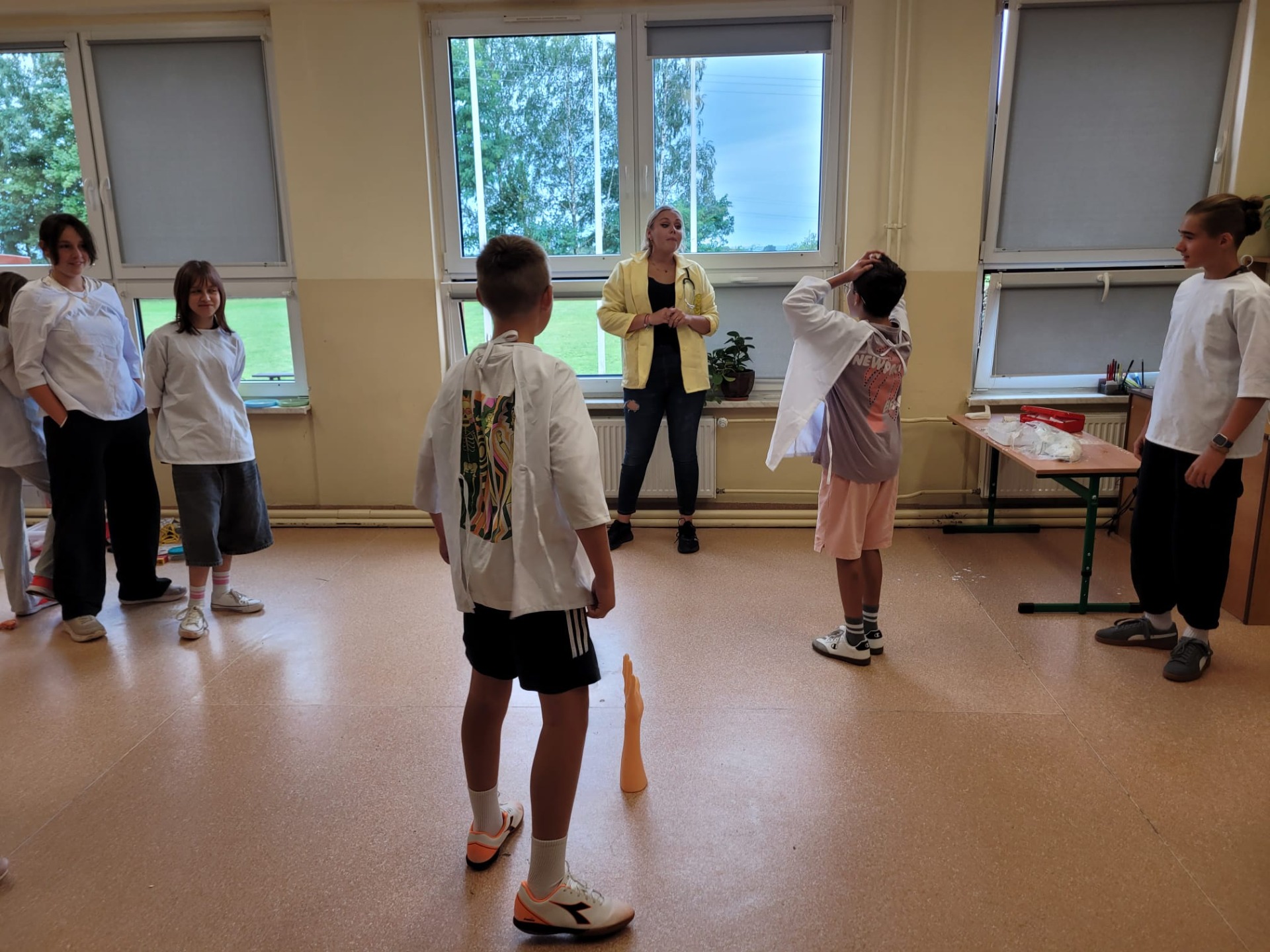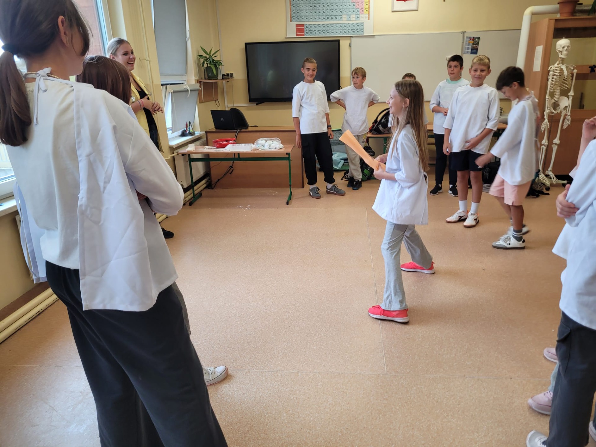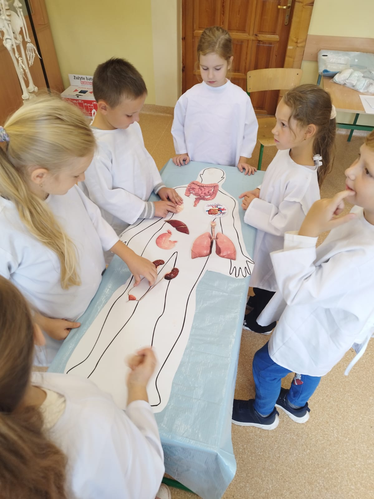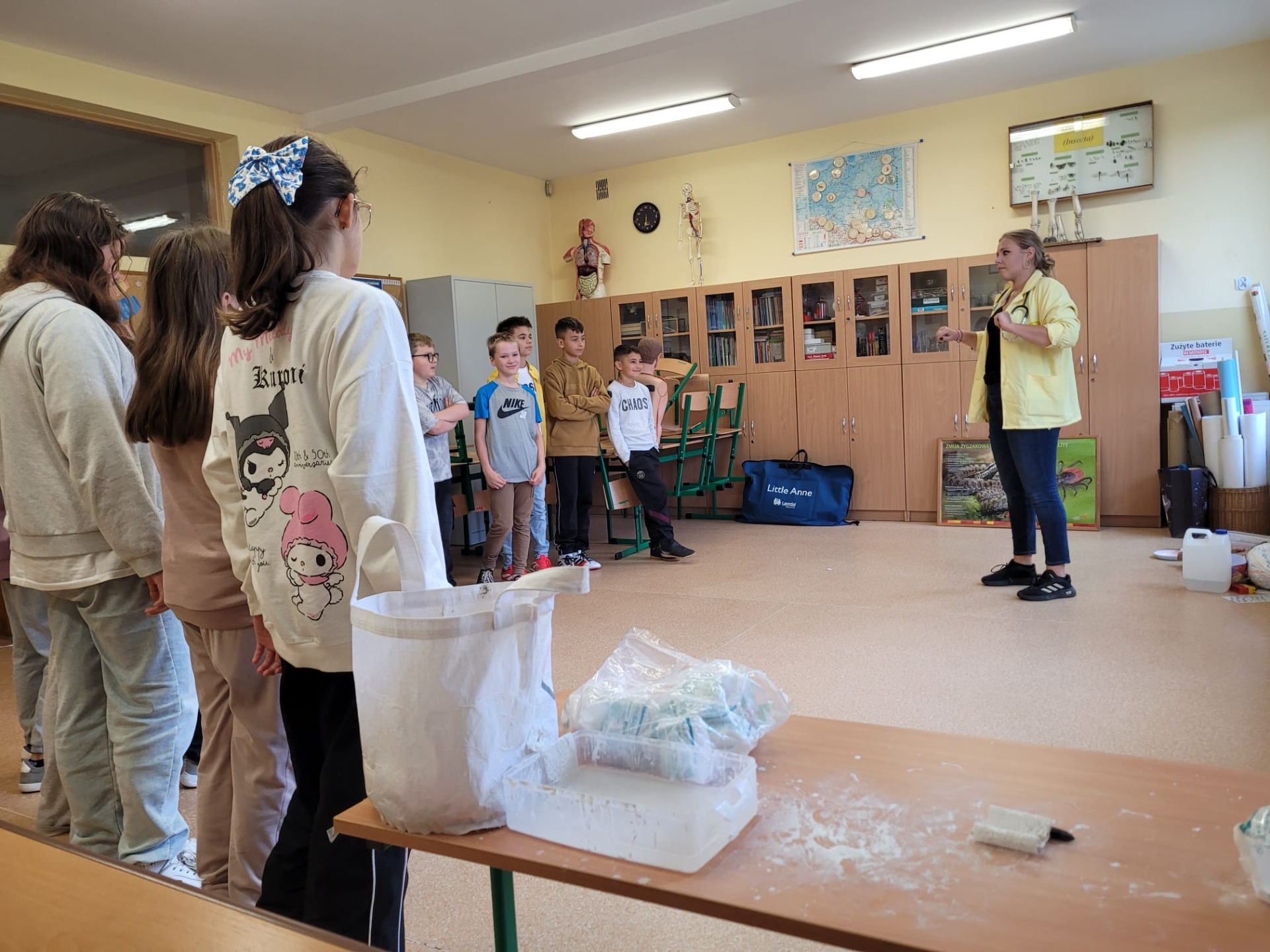 Każde dziecko brało czynny udział w zajęciach – nie było tu miejsca na nudę! Uczniowie uczyli się podstaw udzielania pierwszej pomocy, wykonywali resuscytację krążeniowo-oddechową (RKO) oraz poznali wiele ciekawych informacji dotyczących budowy i funkcjonowania ciała człowieka.