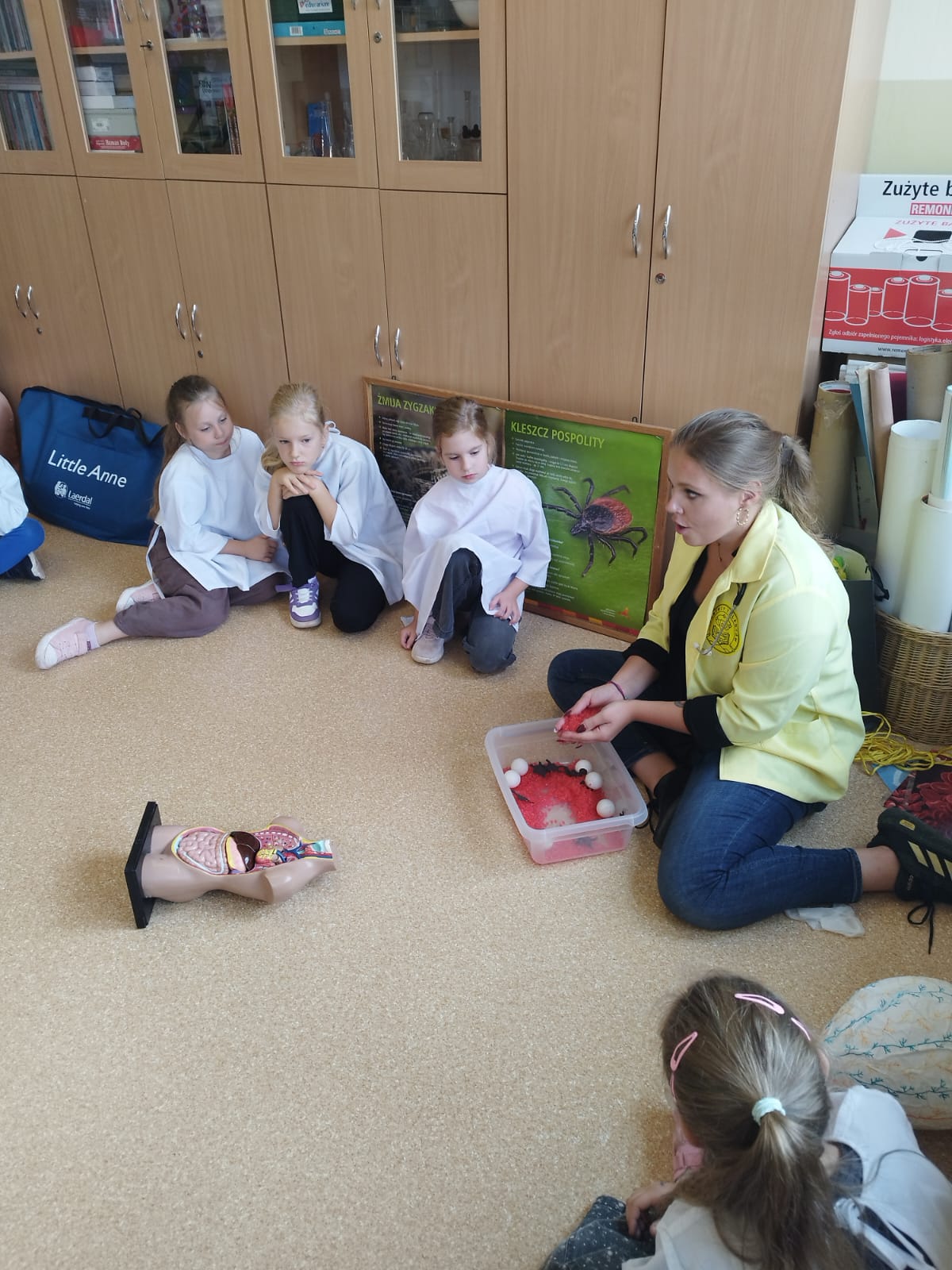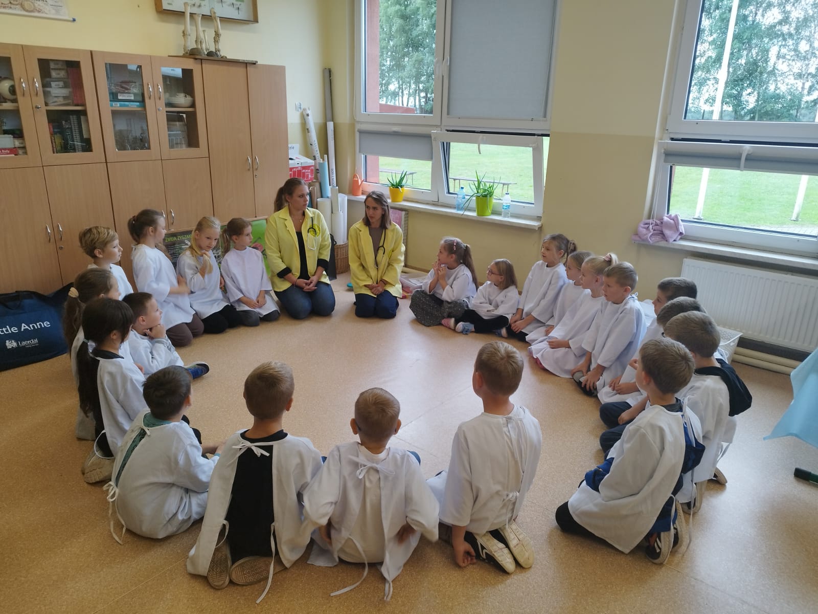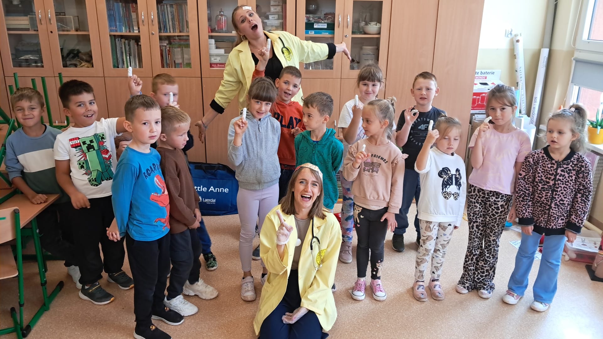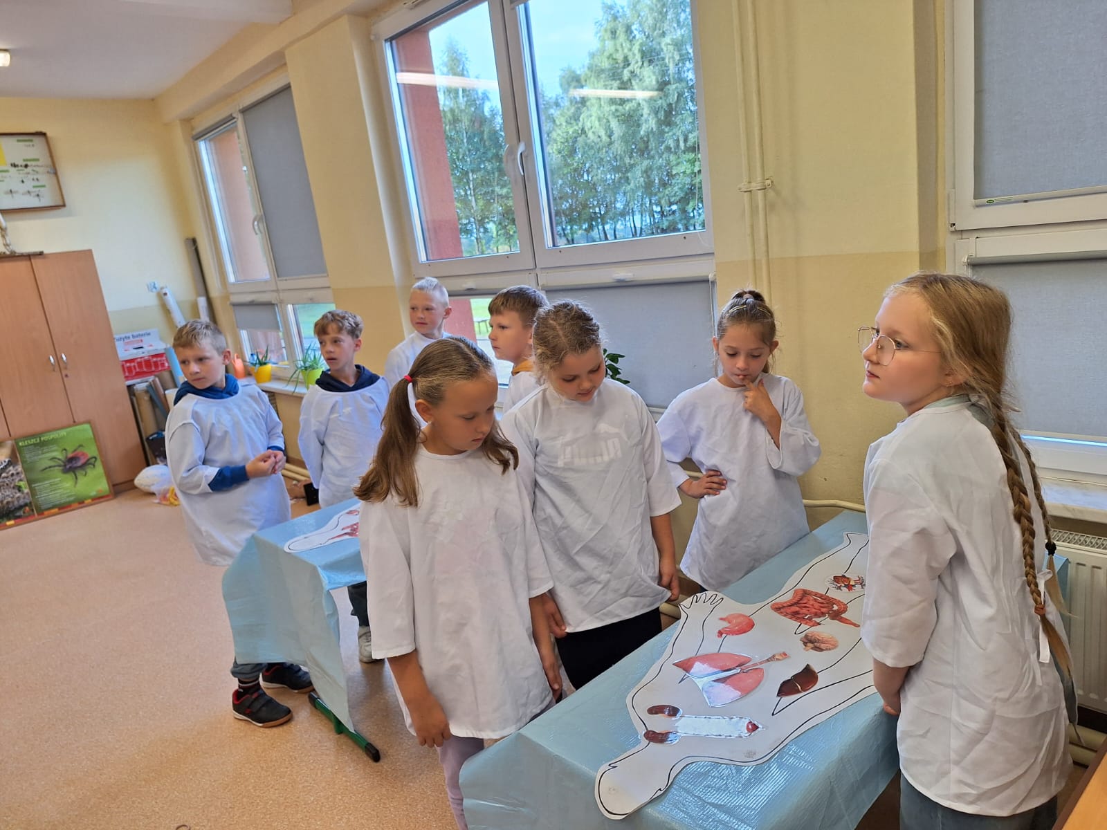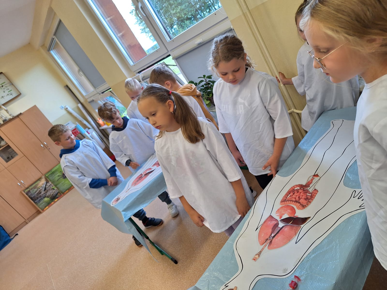 Każde dziecko brało czynny udział w zajęciach – nie było tu miejsca na nudę! Uczniowie uczyli się podstaw udzielania pierwszej pomocy, wykonywali resuscytację krążeniowo-oddechową (RKO) oraz poznali wiele ciekawych informacji dotyczących budowy i funkcjonowania ciała człowieka.