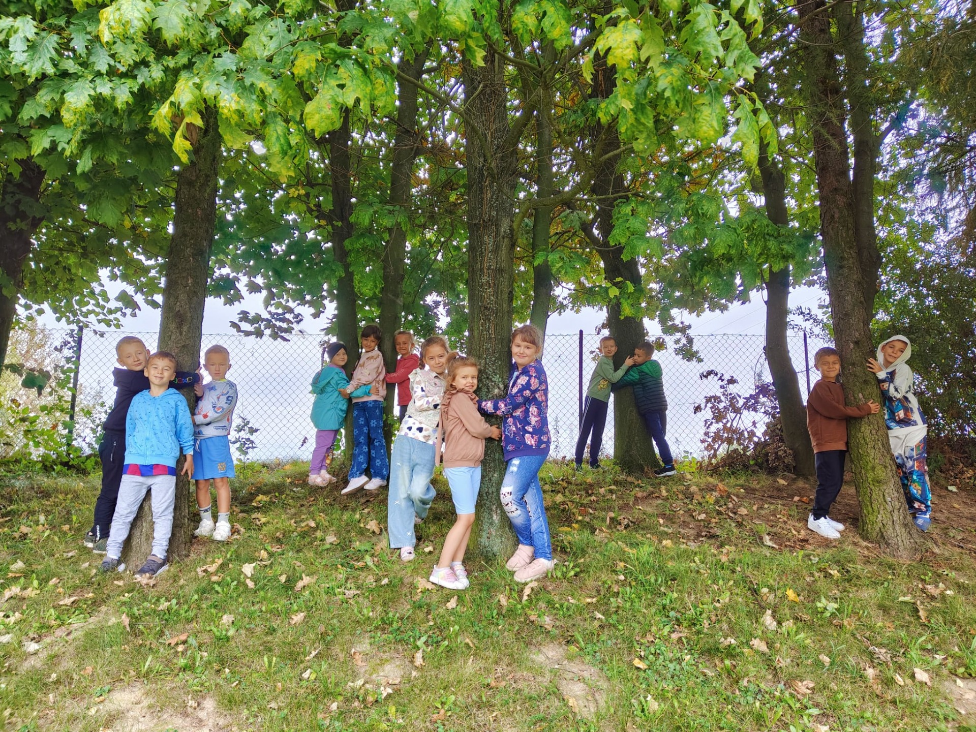 Uczniowie klasy 1 wzięli udział w ogólnopolskiej akcji „Przytul drzewo”, której celem jest zwrócenie uwagi na znaczenie drzew w naszym życiu i budowanie więzi z przyrodą. Dzieci z radością przytulały drzewa, słuchały szumu liści i opowiadały, dlaczego warto o nie dbać. Dzięki tej inicjatywie najmłodsi uczyli się wrażliwości na piękno natury oraz odpowiedzialności za środowisko.
