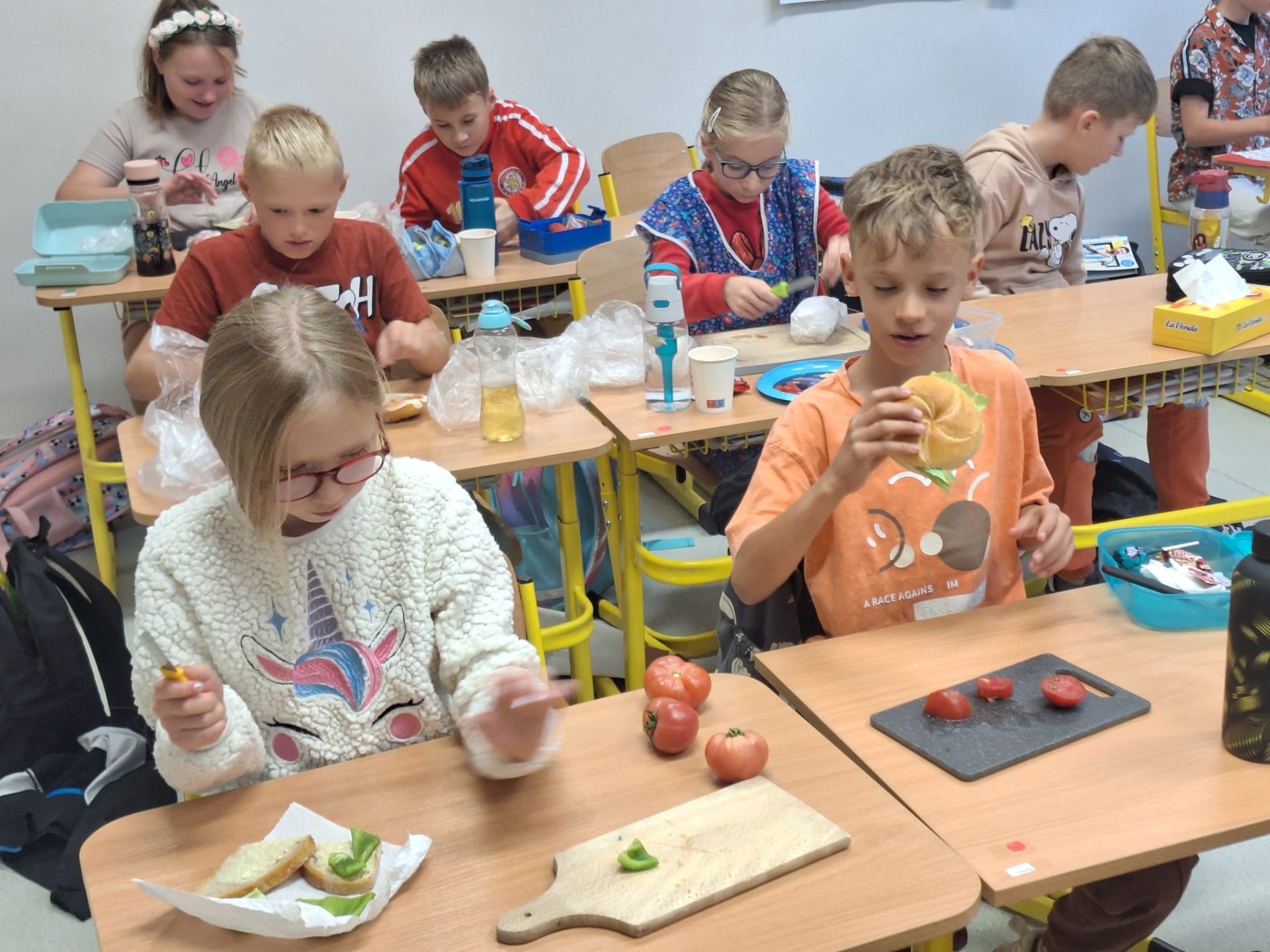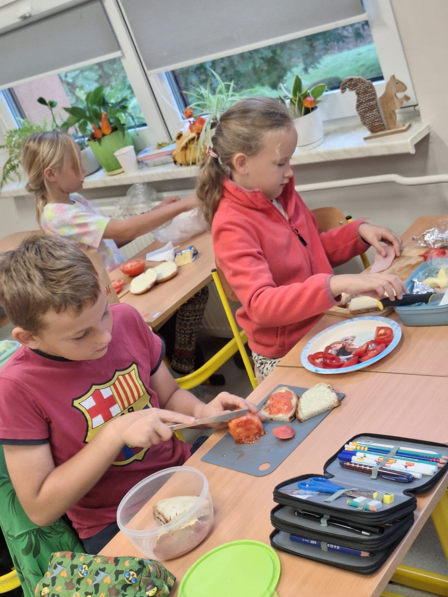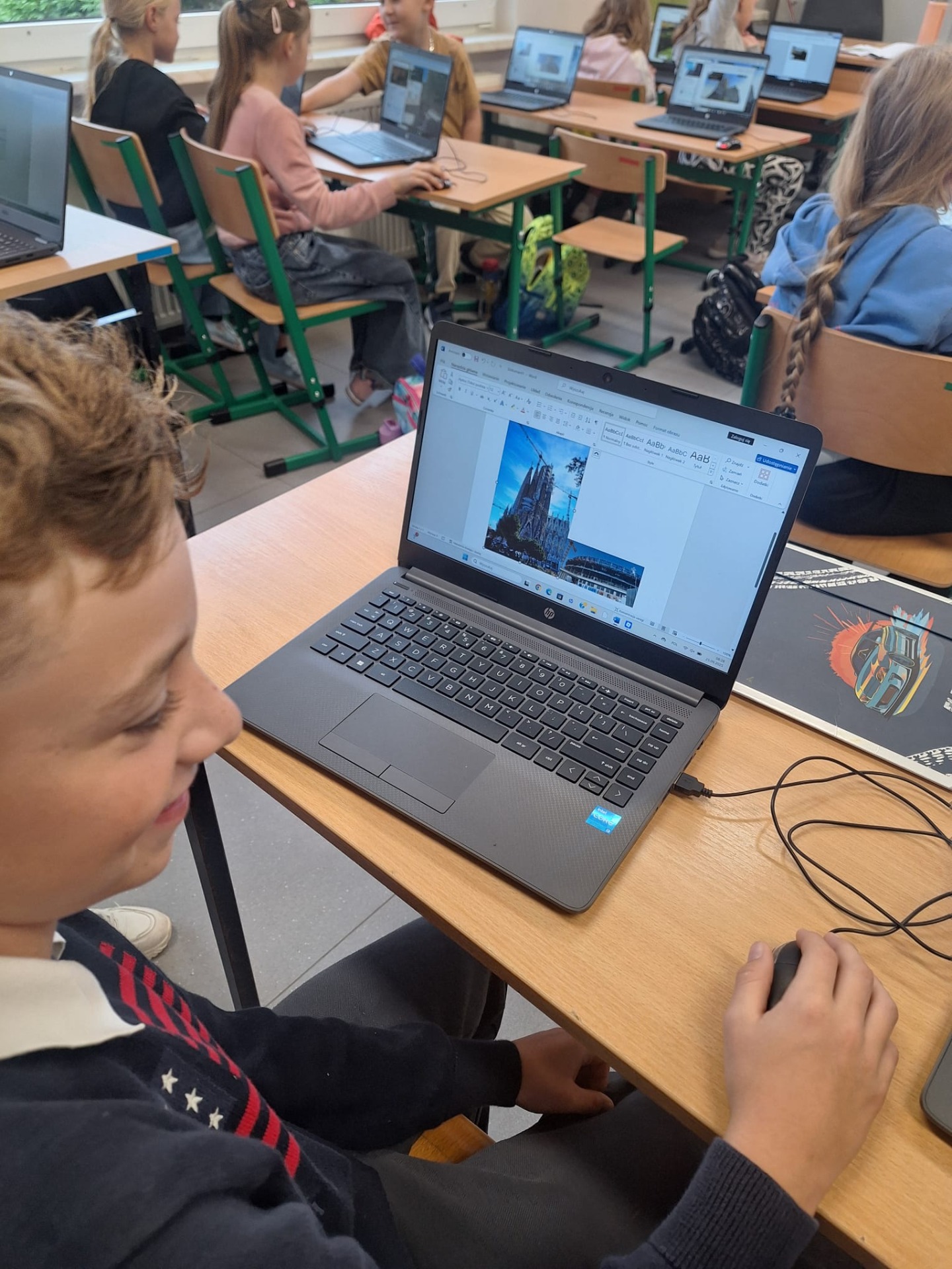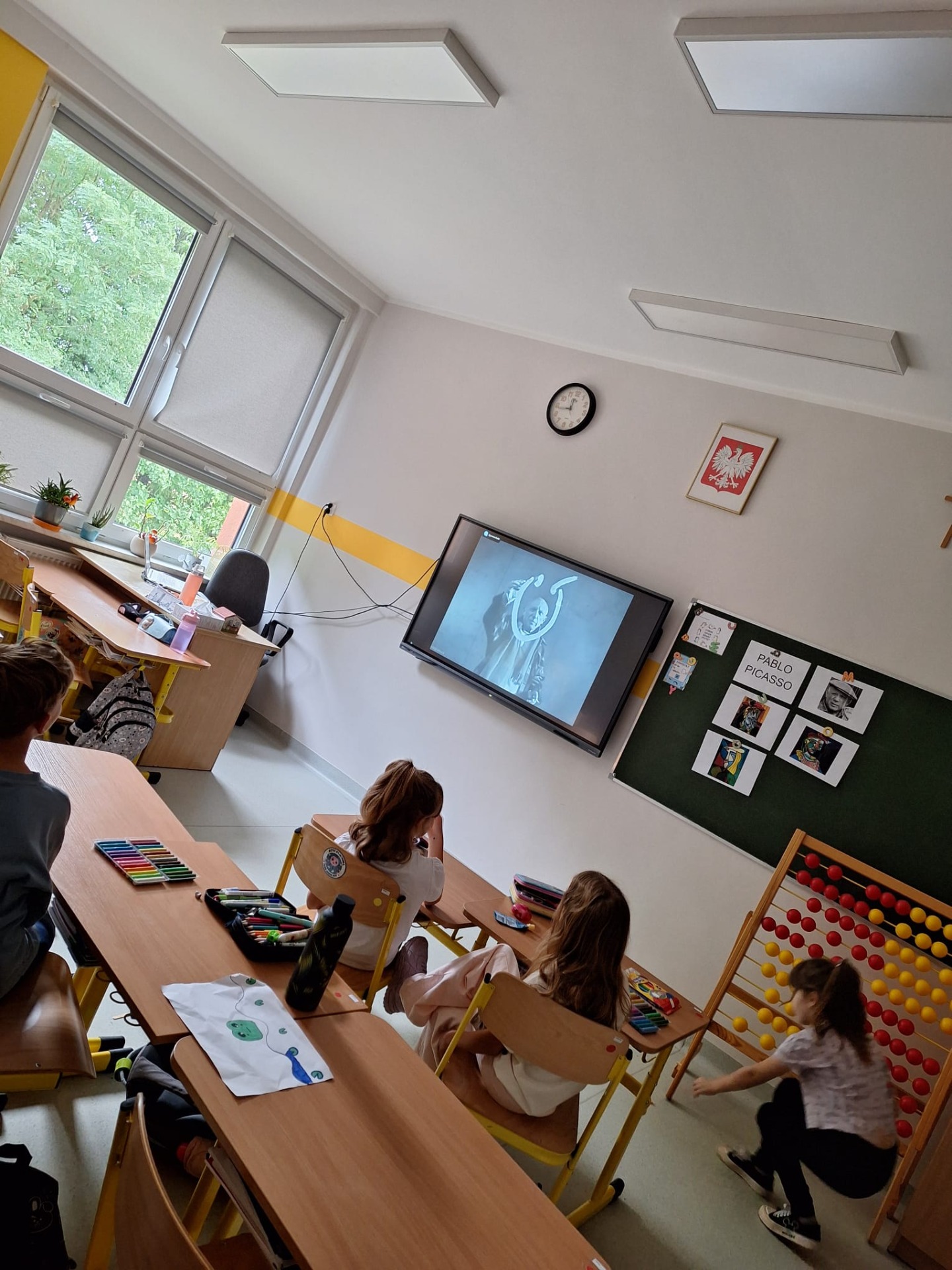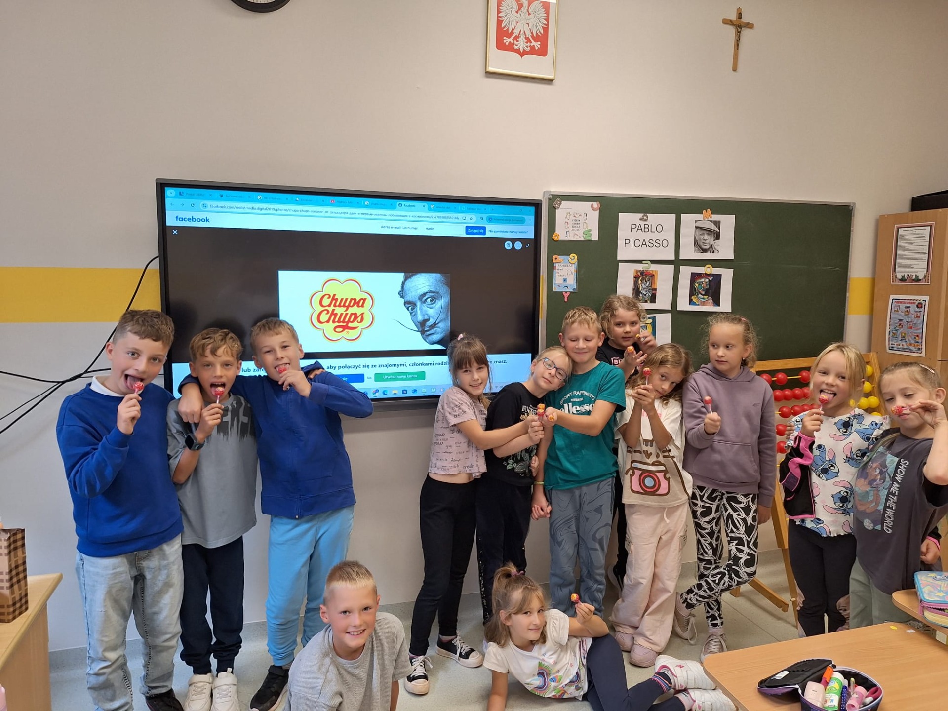 Swoją podróż po Europie rozpoczęliśmy od słonecznej Hiszpanii. Na wrześniowych zajęciach, poza poznaniem podstawowych zwrotów w języku hiszpańskim, wysłuchaniem hymnu oraz wykonaniem flagi państwowej, zapoznaliśmy się także z dziełami dwóch słynnych hiszpańskich malarzy: Salvadora Dali i Pabla Picassa. Uczniowie wcielili się w rolę artystów i stworzyli kubistyczne portrety, osładzając sobie pracę degustacją lizaków hiszpańskiej marki Chupa Chups. Trzecioklasiści już wiedzą, że słynna stokrotka zdobiąca popularnego lizaka to dzieło Salvadora Dali! Jedne z zajęć poświęciliśmy także hiszpańskiemu świętu – La Tomatina. Trzecioklasiści nabyli wiedzę na temat tej sławnej corocznej bitwy na pomidory, a dodatkowo stali się ekspertami w kwestii dobroczynnych skutków spożywania pomidorów. By wyrobić zdrowe nawyki żywieniowe, zajęcia zamieniliśmy na „Klasowe Kuchcikowo”. Uczniowie przyrządzili sobie smaczne kanapki z pomidorem w roli głównej. Mieli też okazję poznać smak soku pomidorowego😊. Podczas zajęć wychowania fizycznego uczniowie rozegrali mecz piłki nożnej w barwach słynnych hiszpańskich klubów, a na edukacji informatycznej poznawaliśmy Google Maps, zwiedzając słoneczny Madryt i Barcelonę.